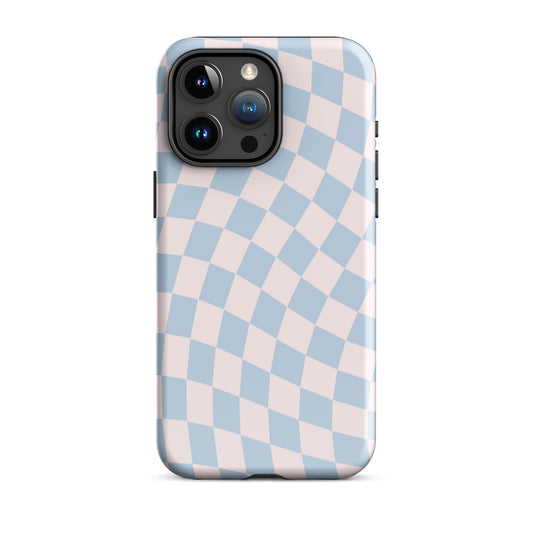 Light Pink & Blue Wavy Checkered iPhone Case