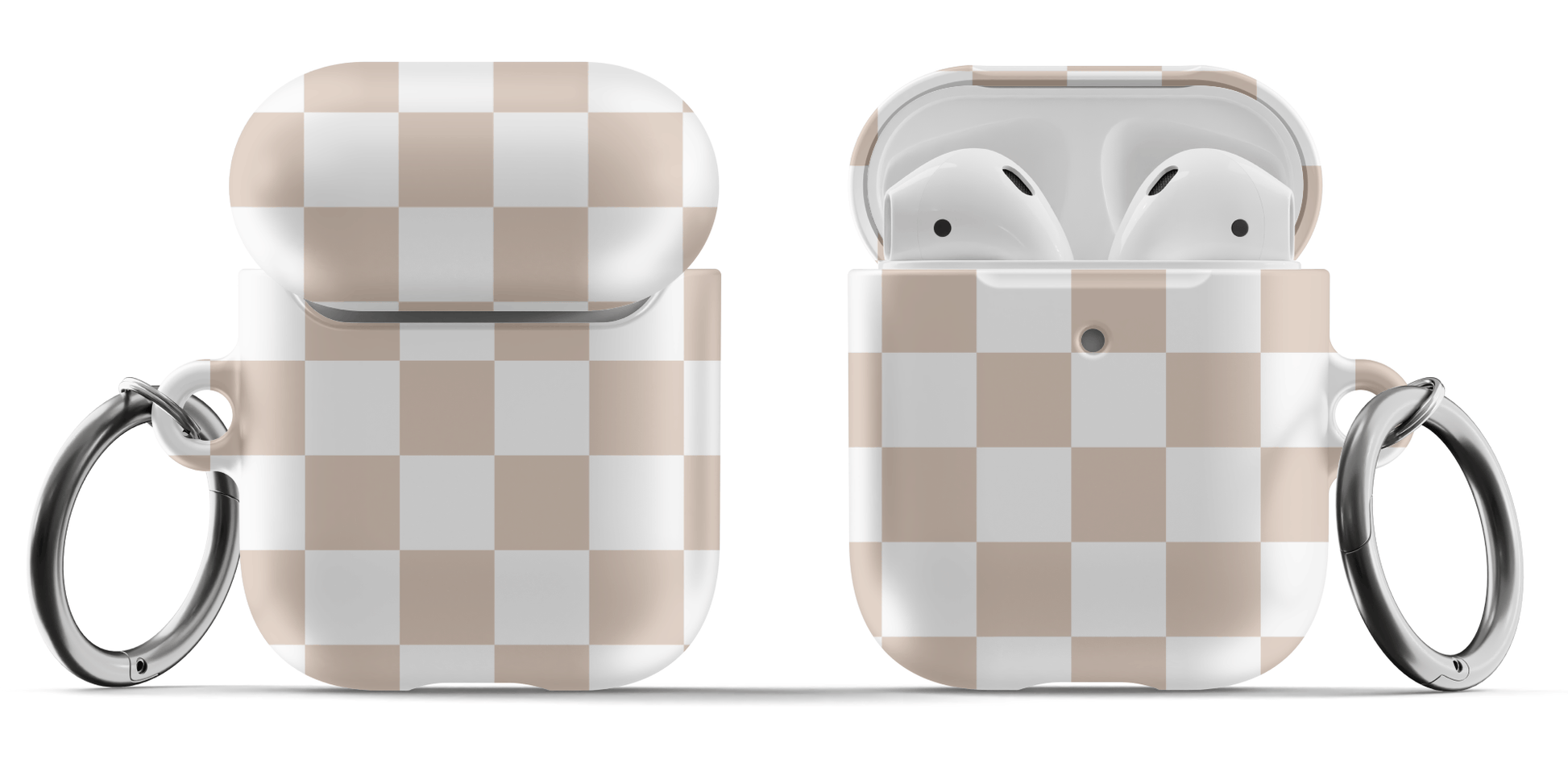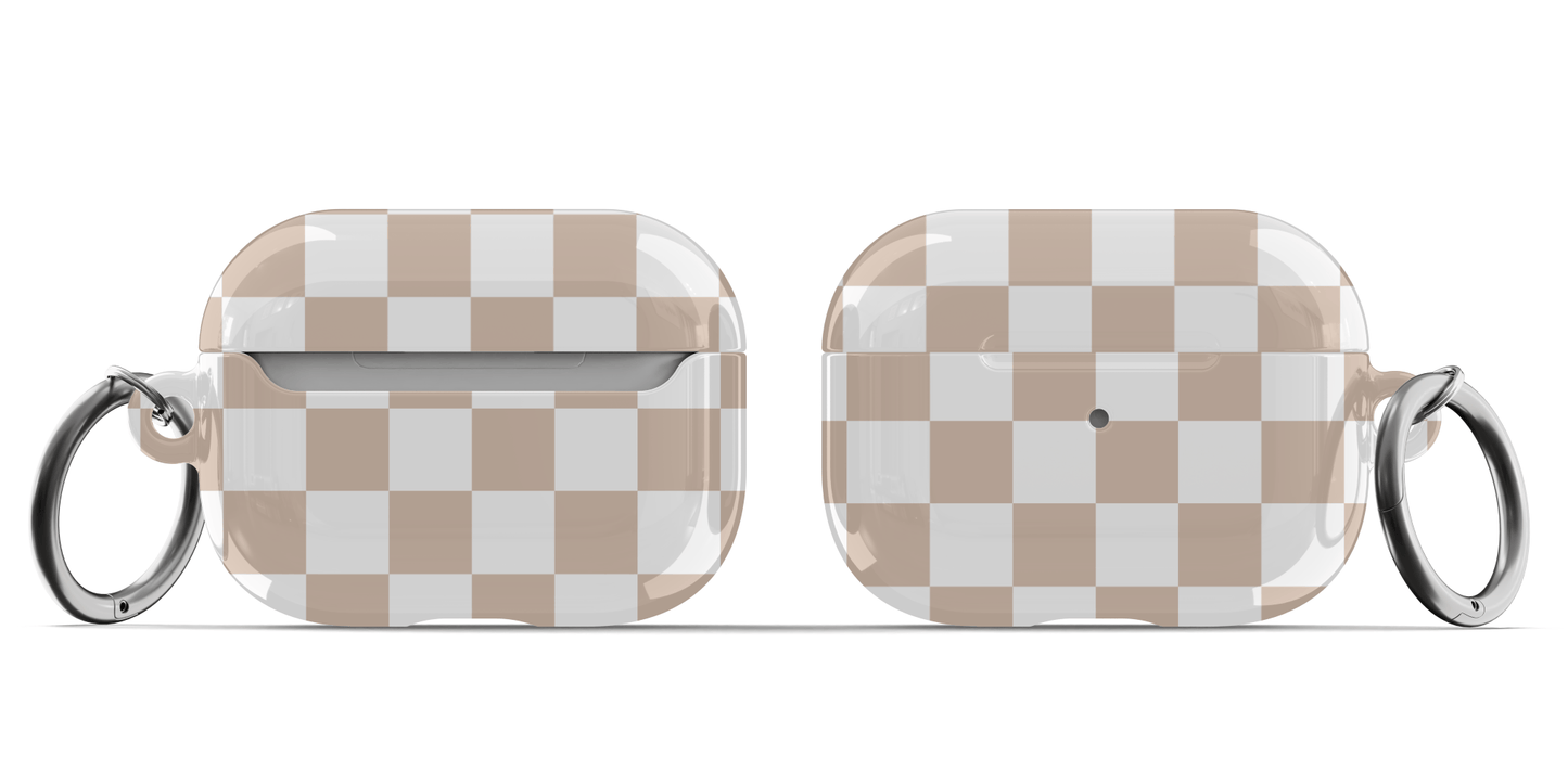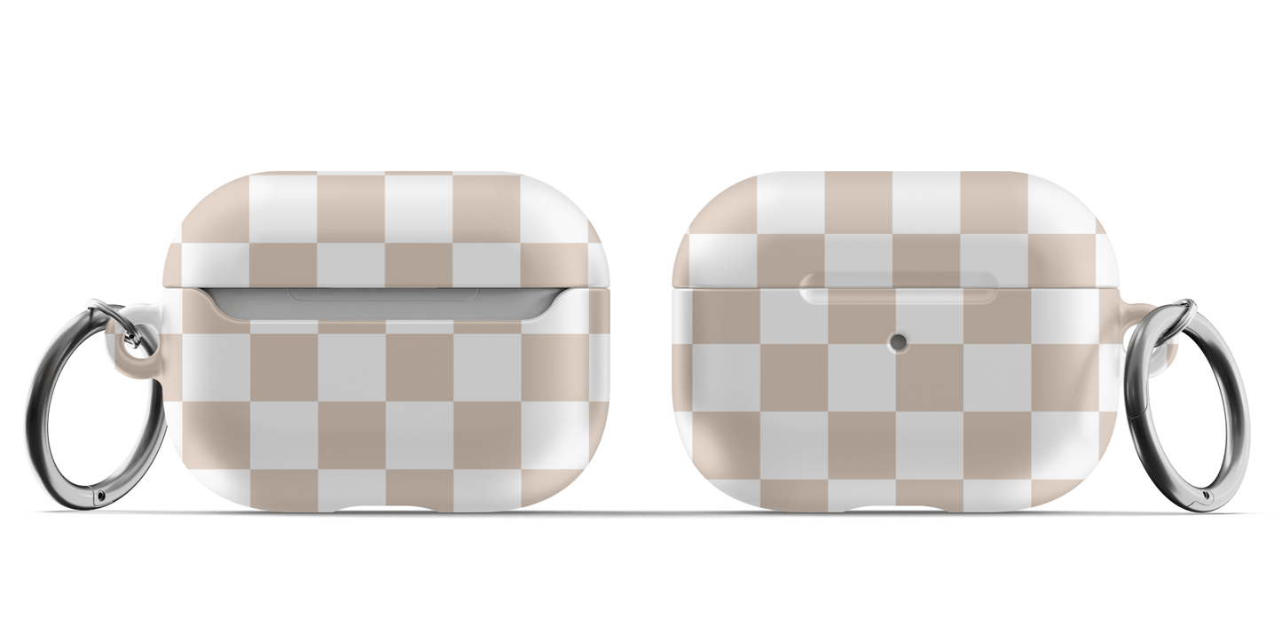 Say hello to our Beige & White Checkered AirPods Case! This cute case features a beige and white checkered pattern.