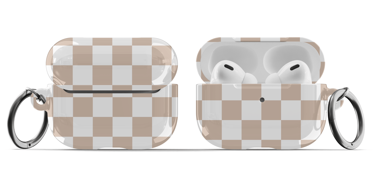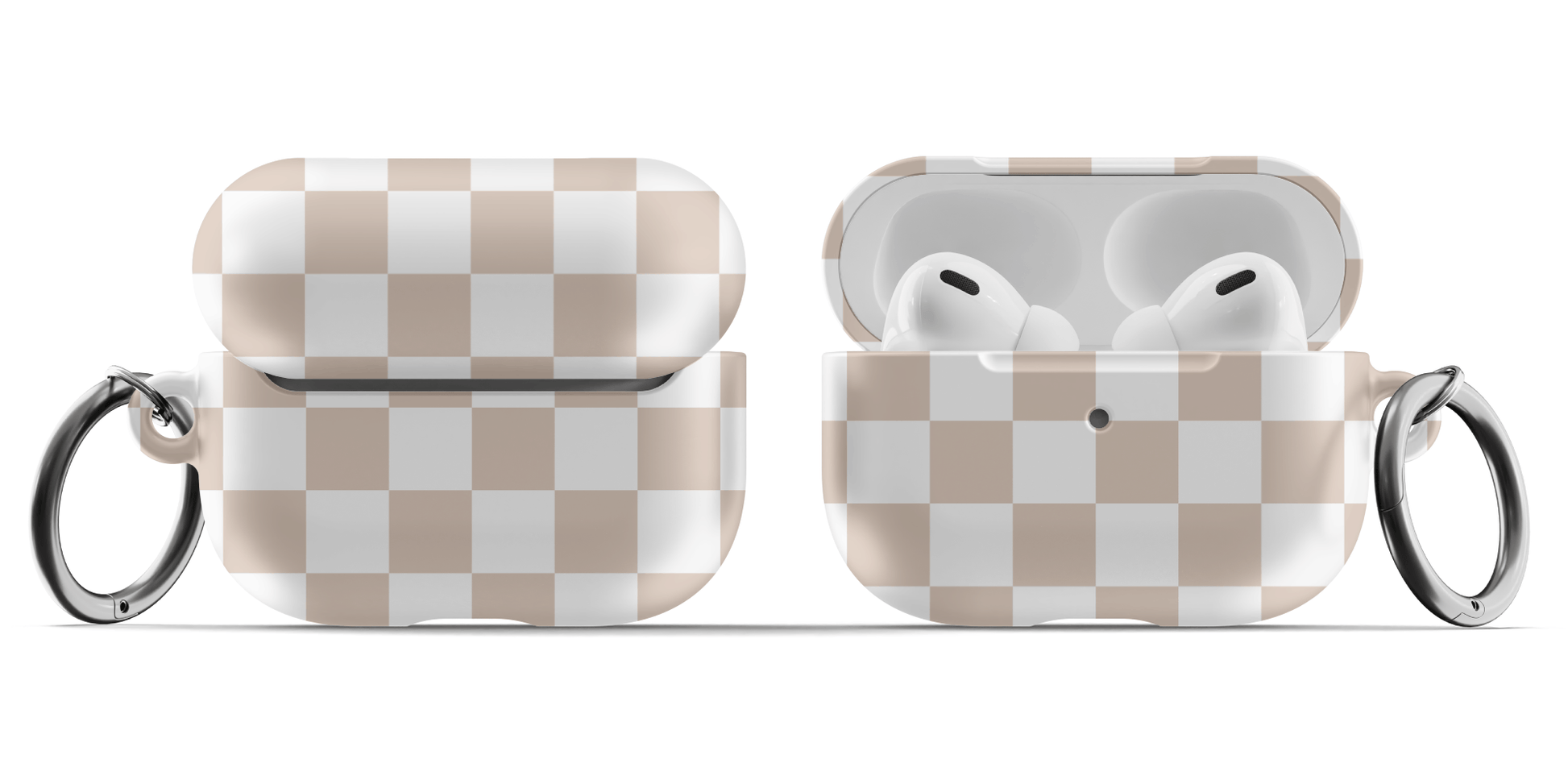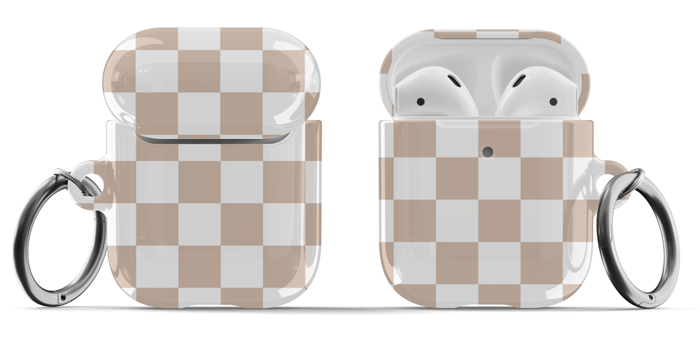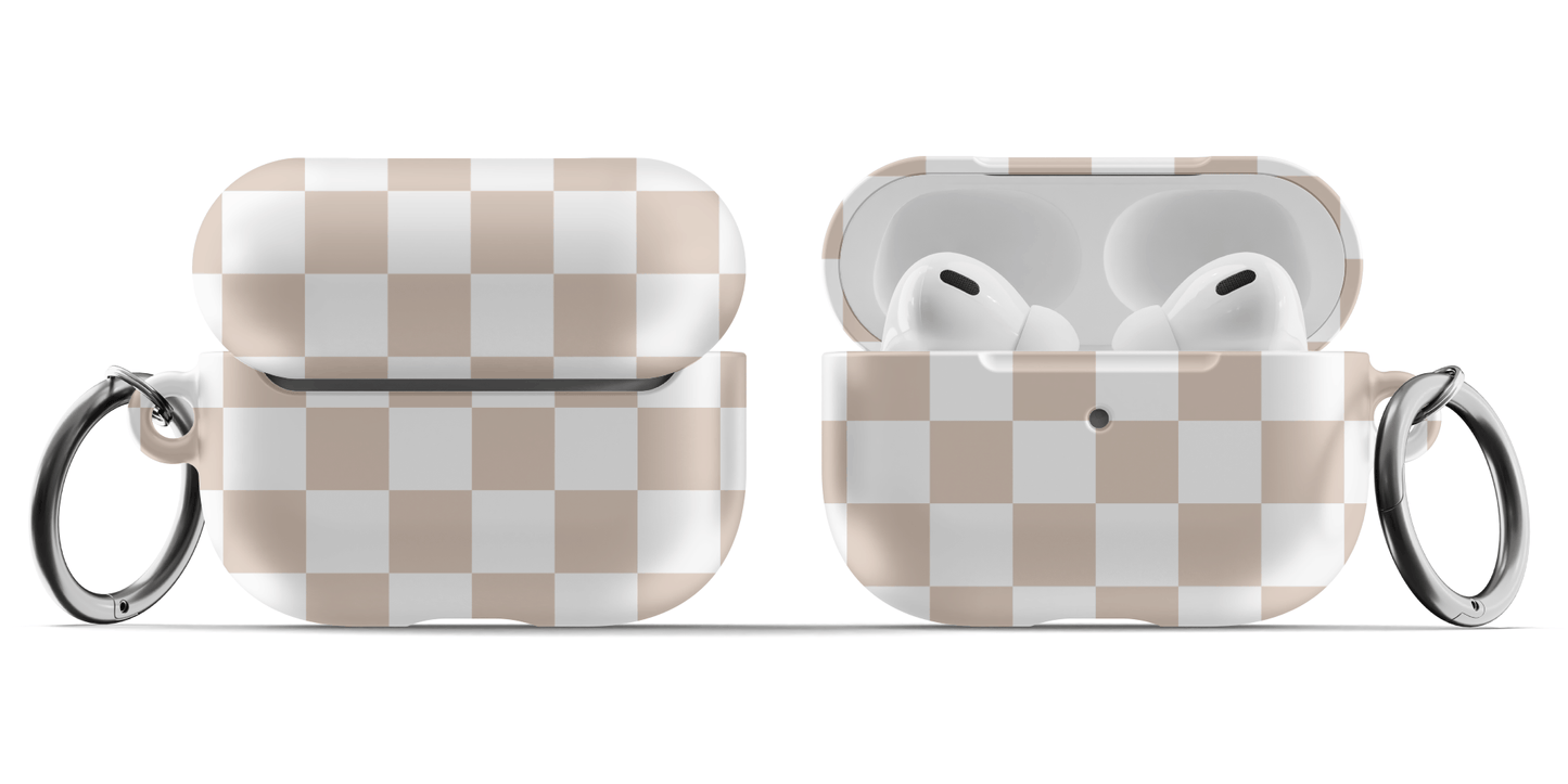 Say hello to our Beige & White Checkered AirPods Case! This cute case features a beige and white checkered pattern.