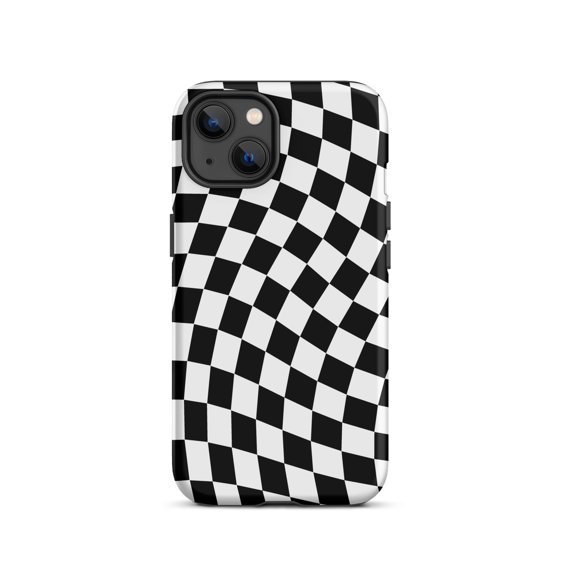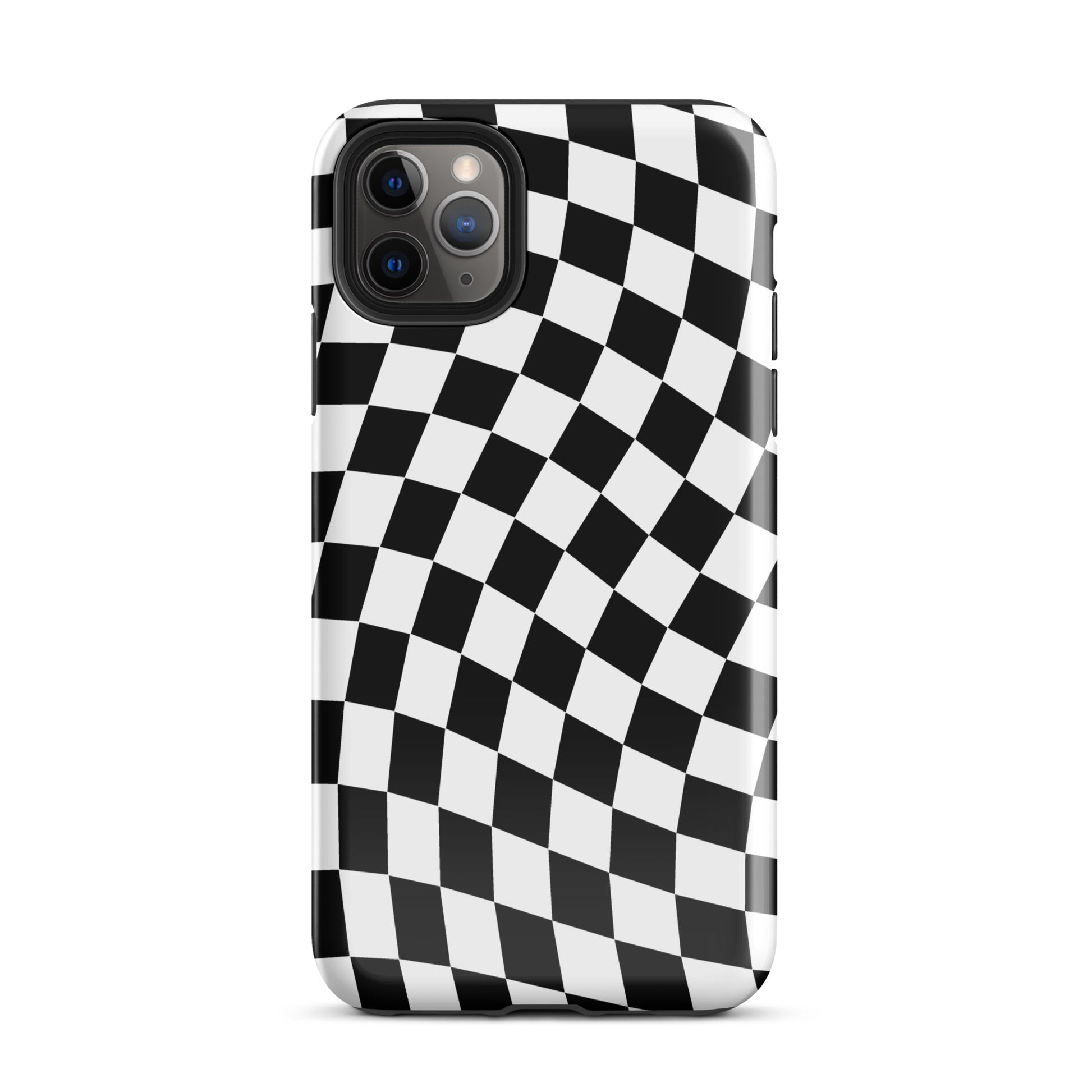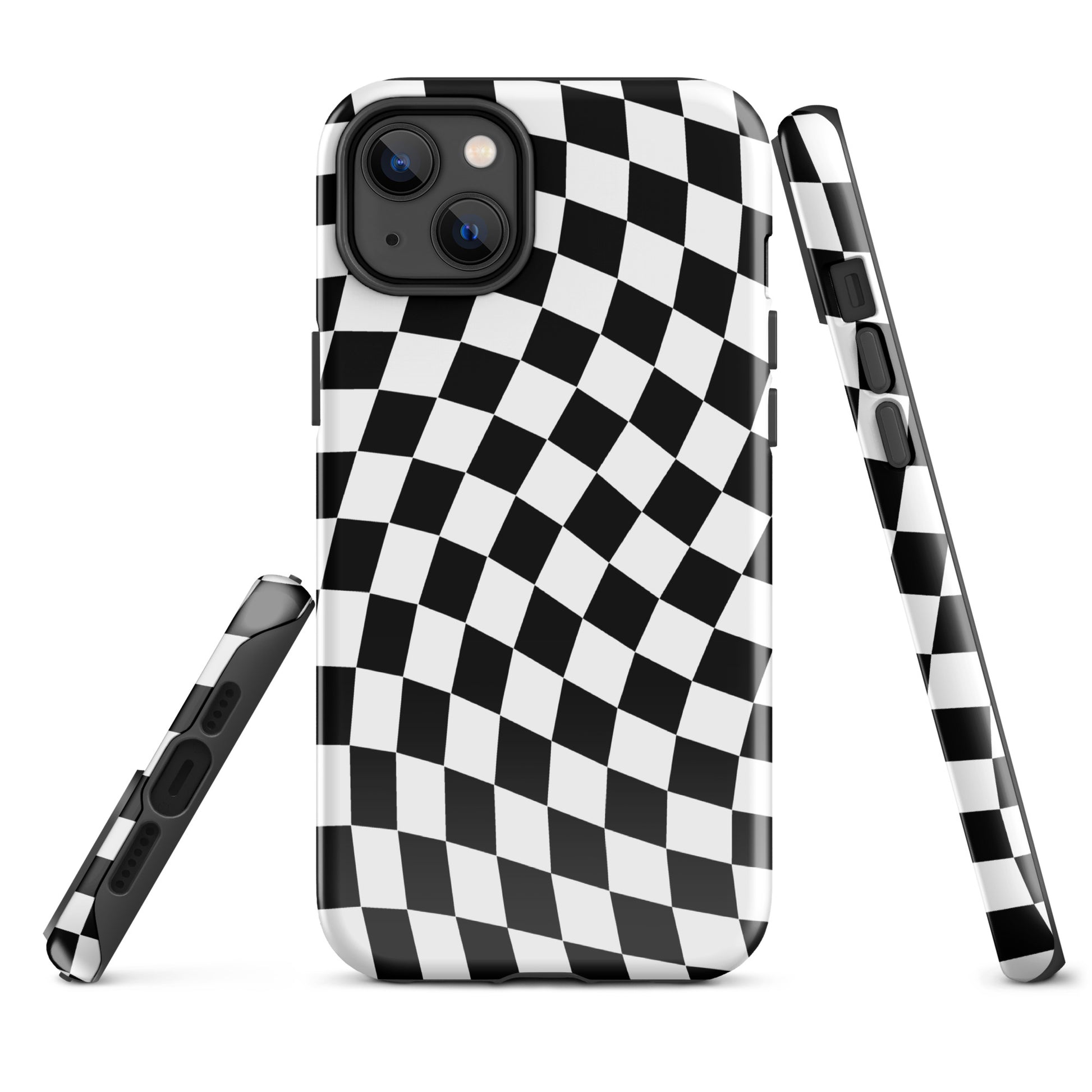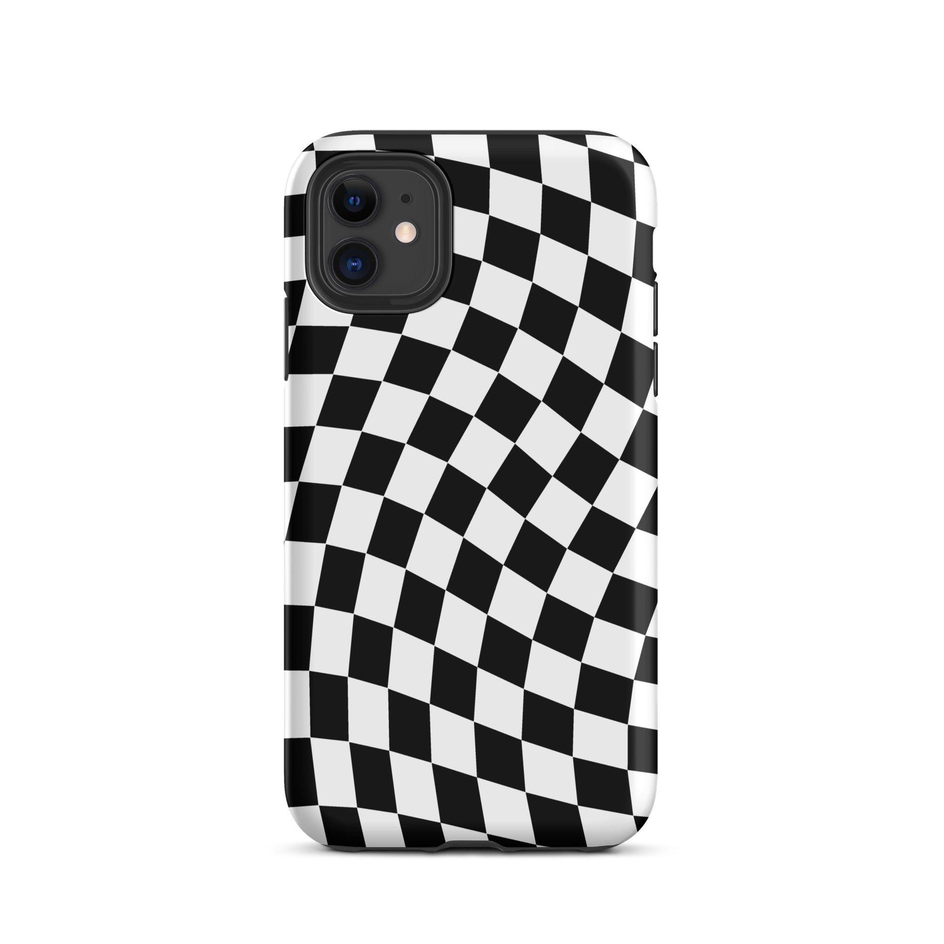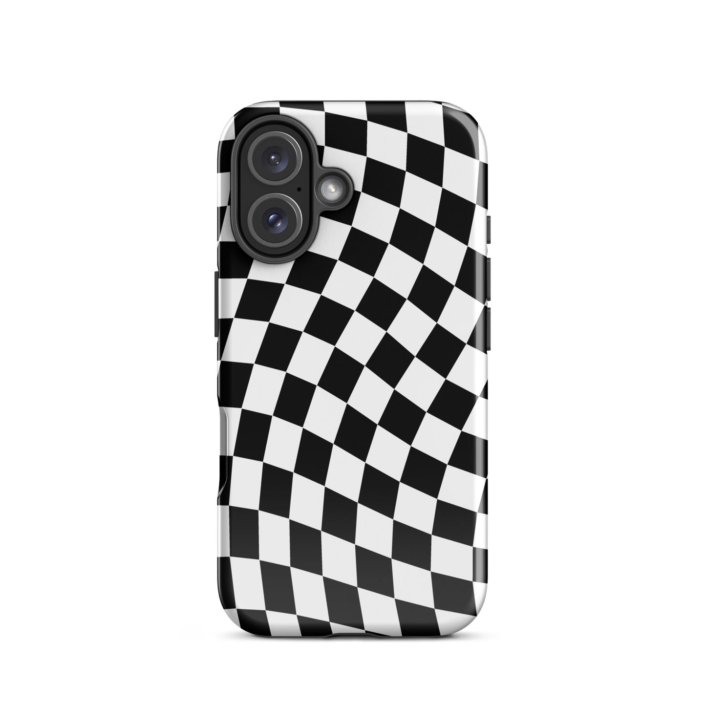 Be hip and protect your phone with this cool black checkered iPhone case! This case features a wavy black and white checkeredĀ pattern.