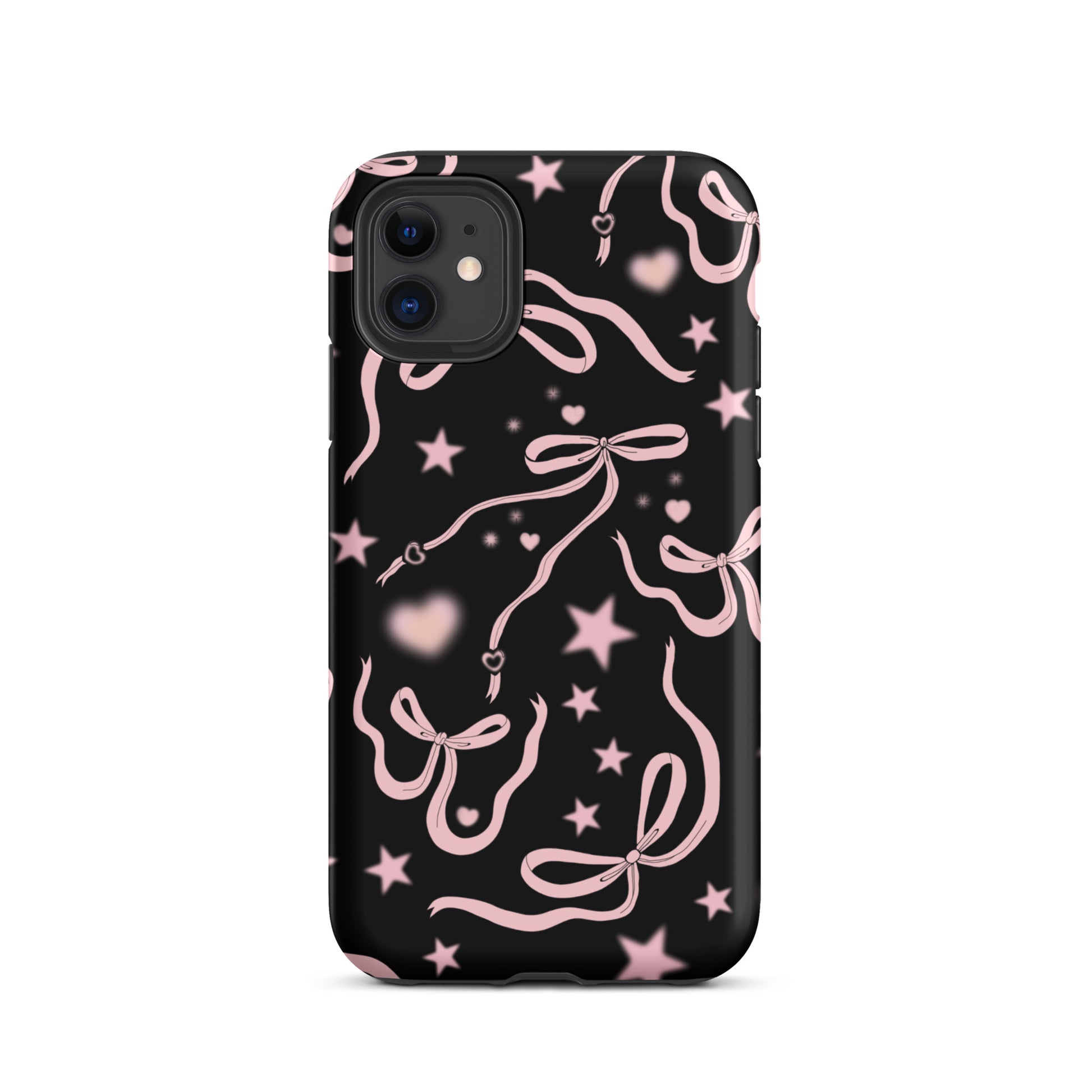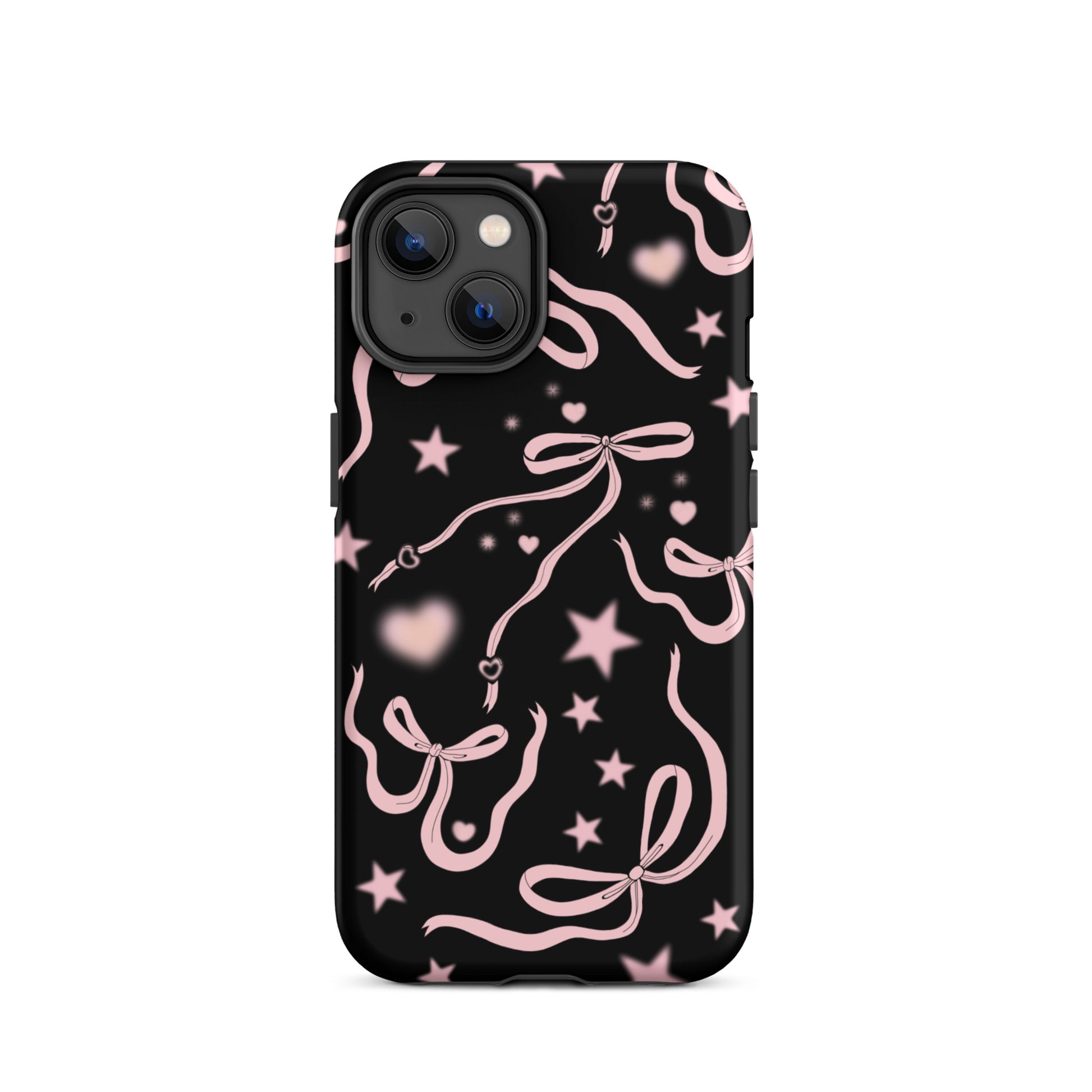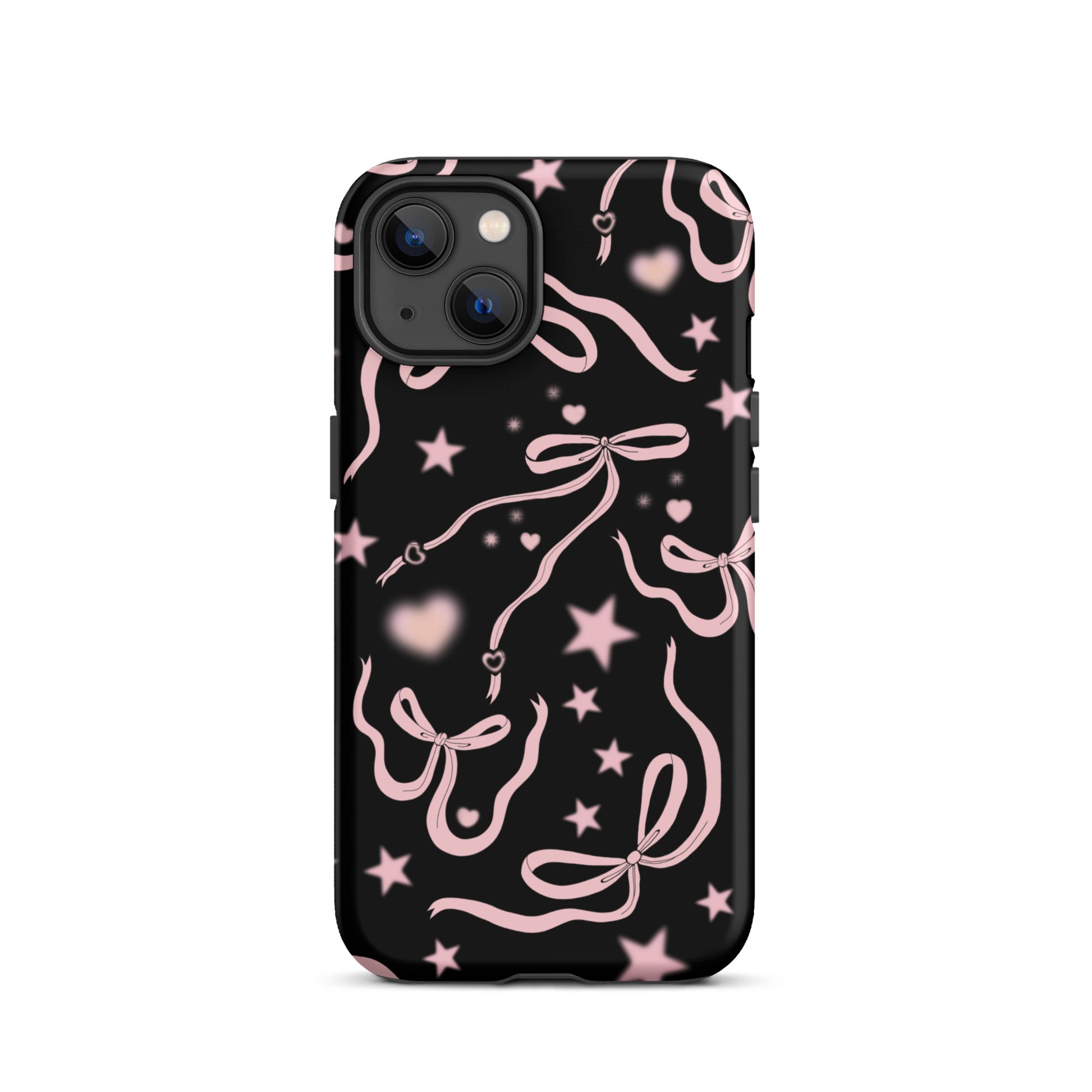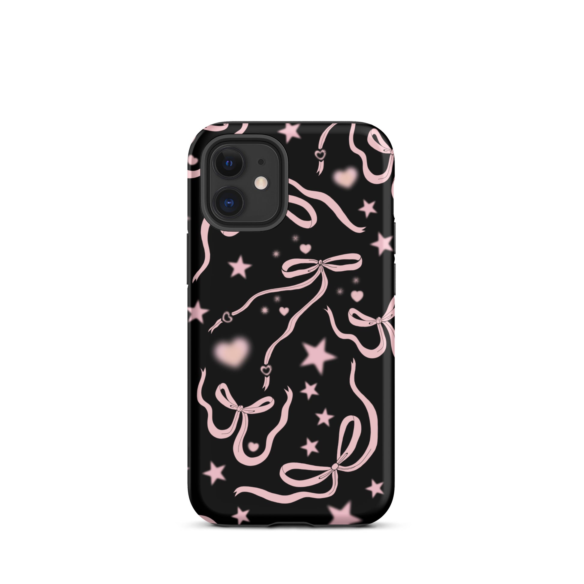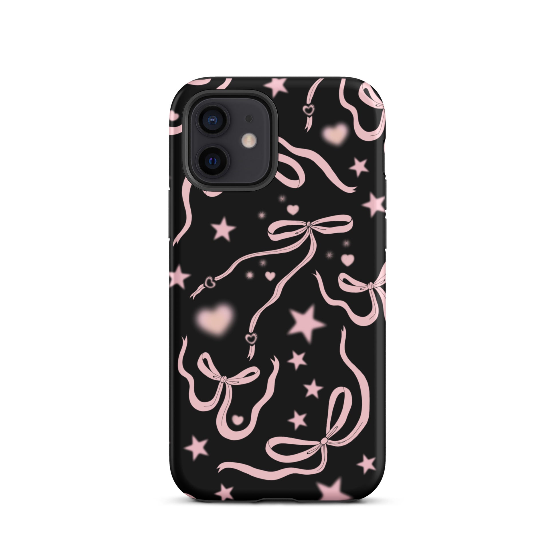 Step into a coquette-inspired Y2K dream with the Black Cosmic Bows iPhone Case! Featuring cute light pink ribbon bows and soft gradient pink stars and hearts on a sleek black background, this case brings a bold yet whimsical touch to your phone. Perfect for adding a dreamy, nostalgic vibe to your style.