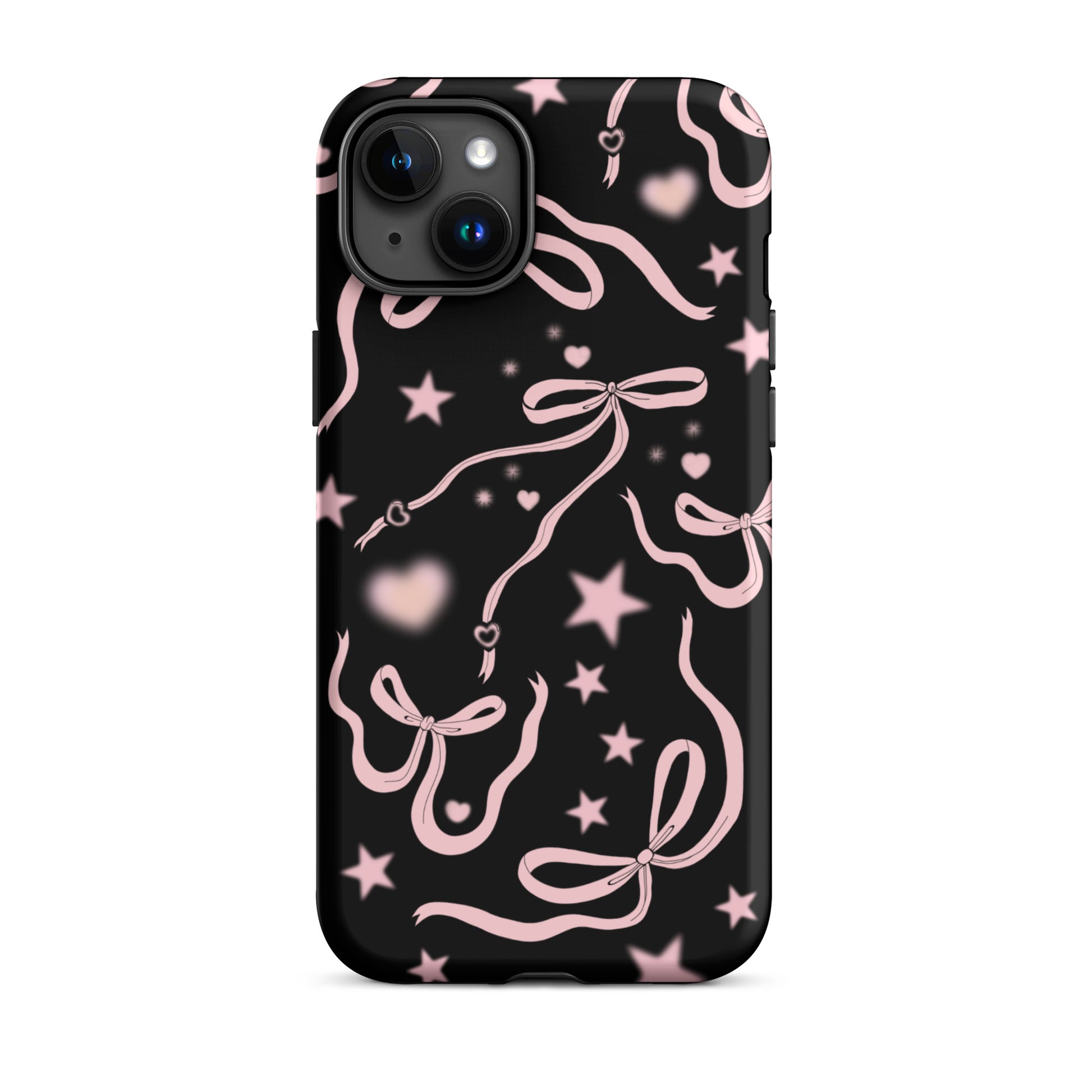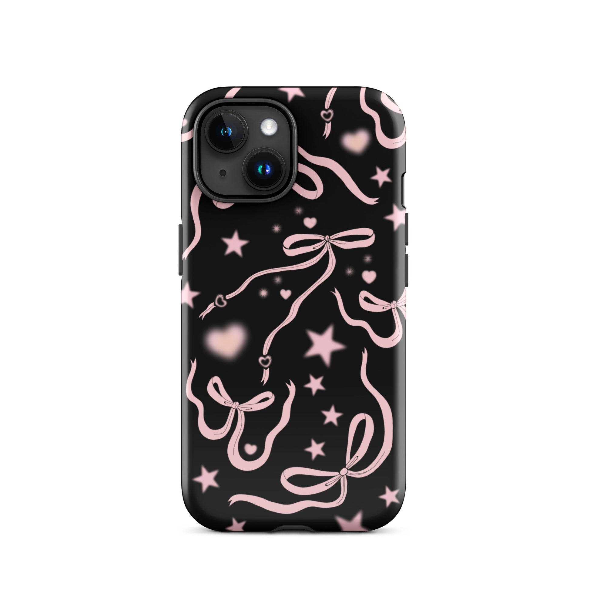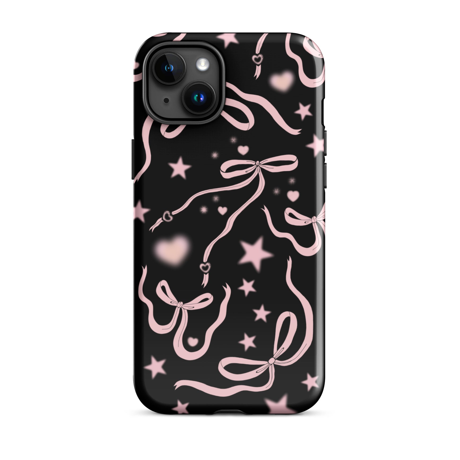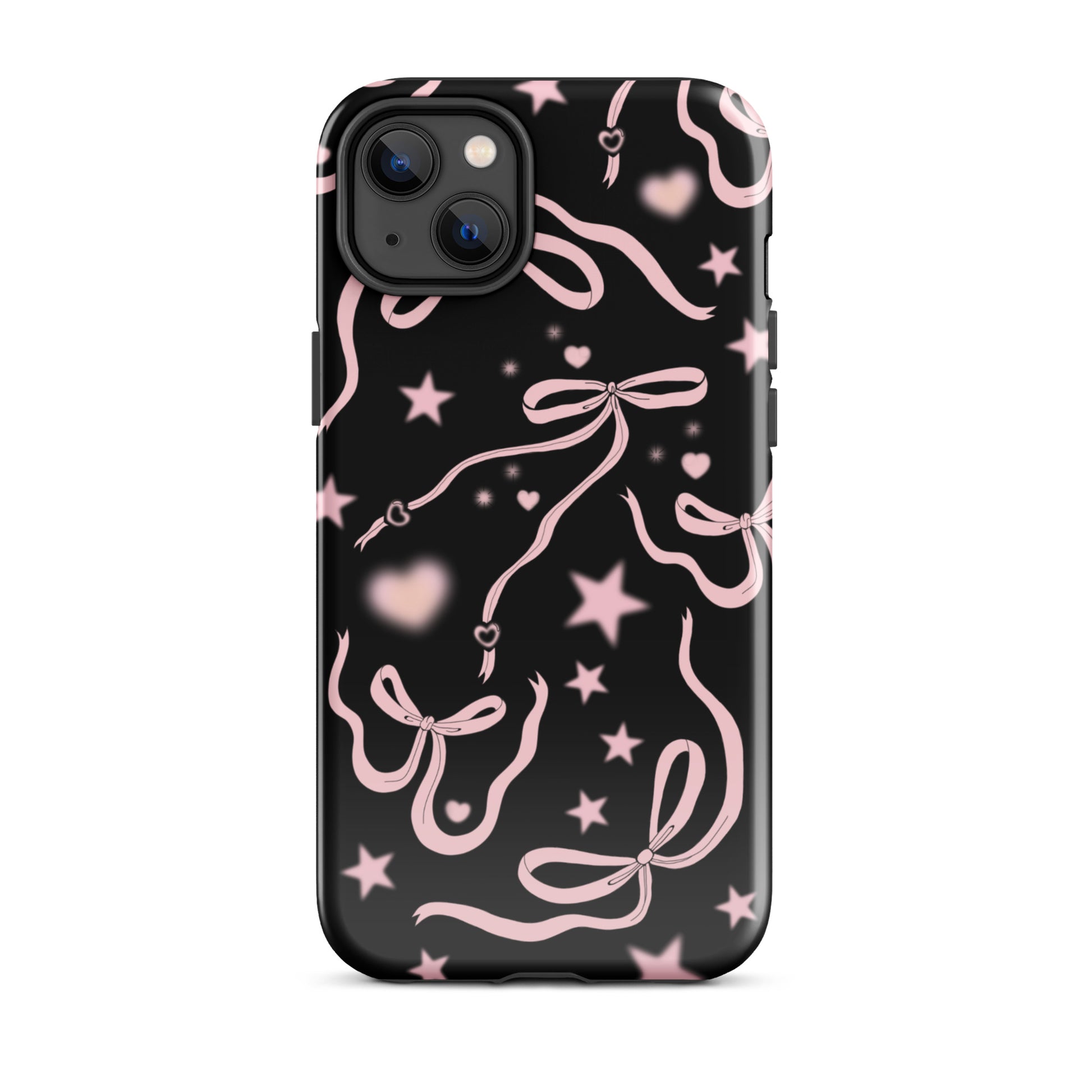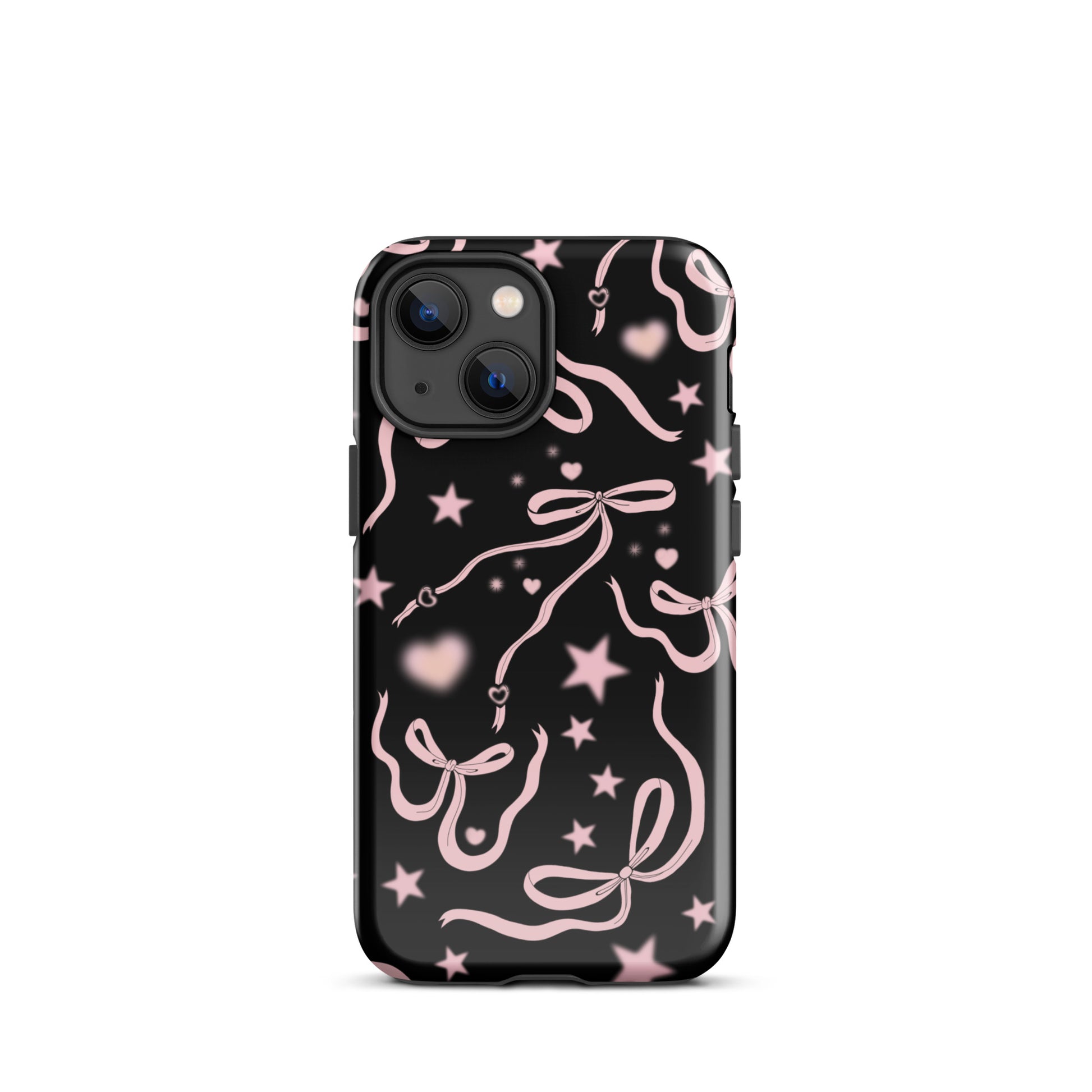 Step into a coquette-inspired Y2K dream with the Black Cosmic Bows iPhone Case! Featuring cute light pink ribbon bows and soft gradient pink stars and hearts on a sleek black background, this case brings a bold yet whimsical touch to your phone. Perfect for adding a dreamy, nostalgic vibe to your style.