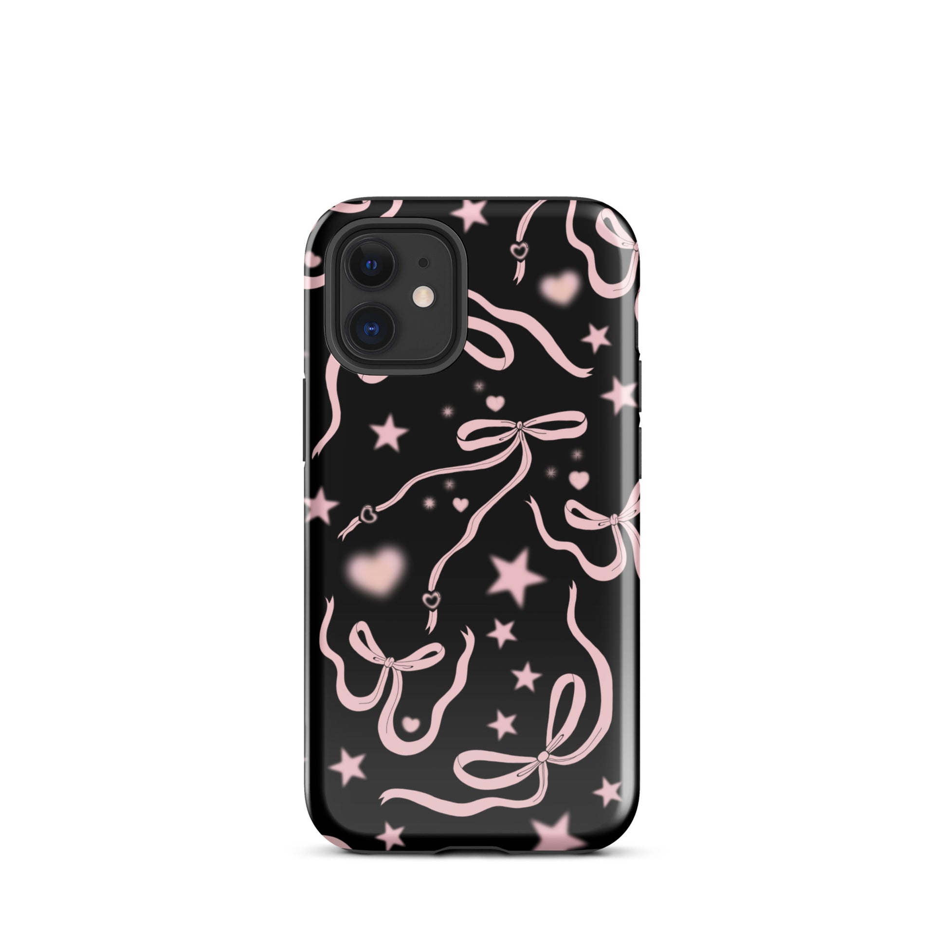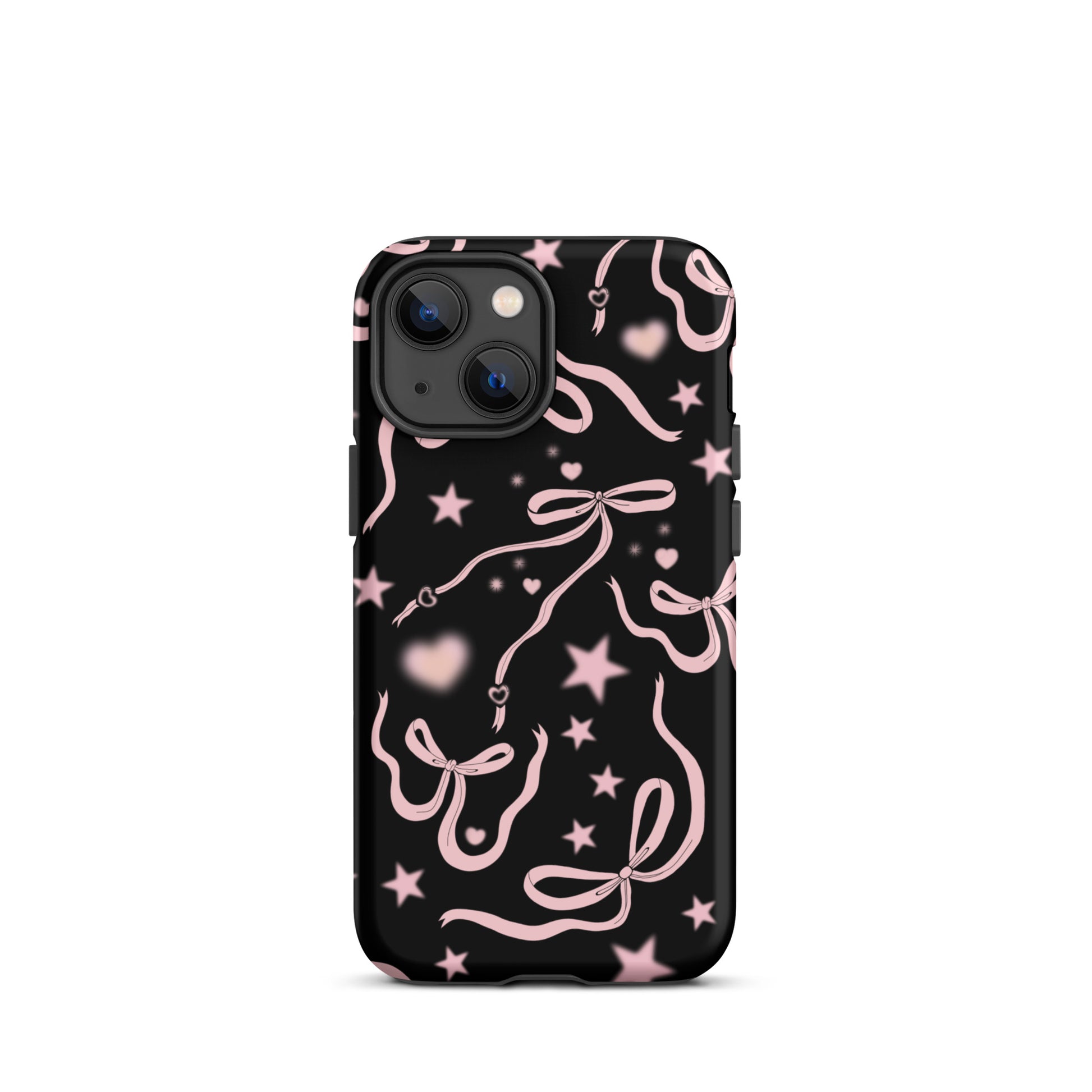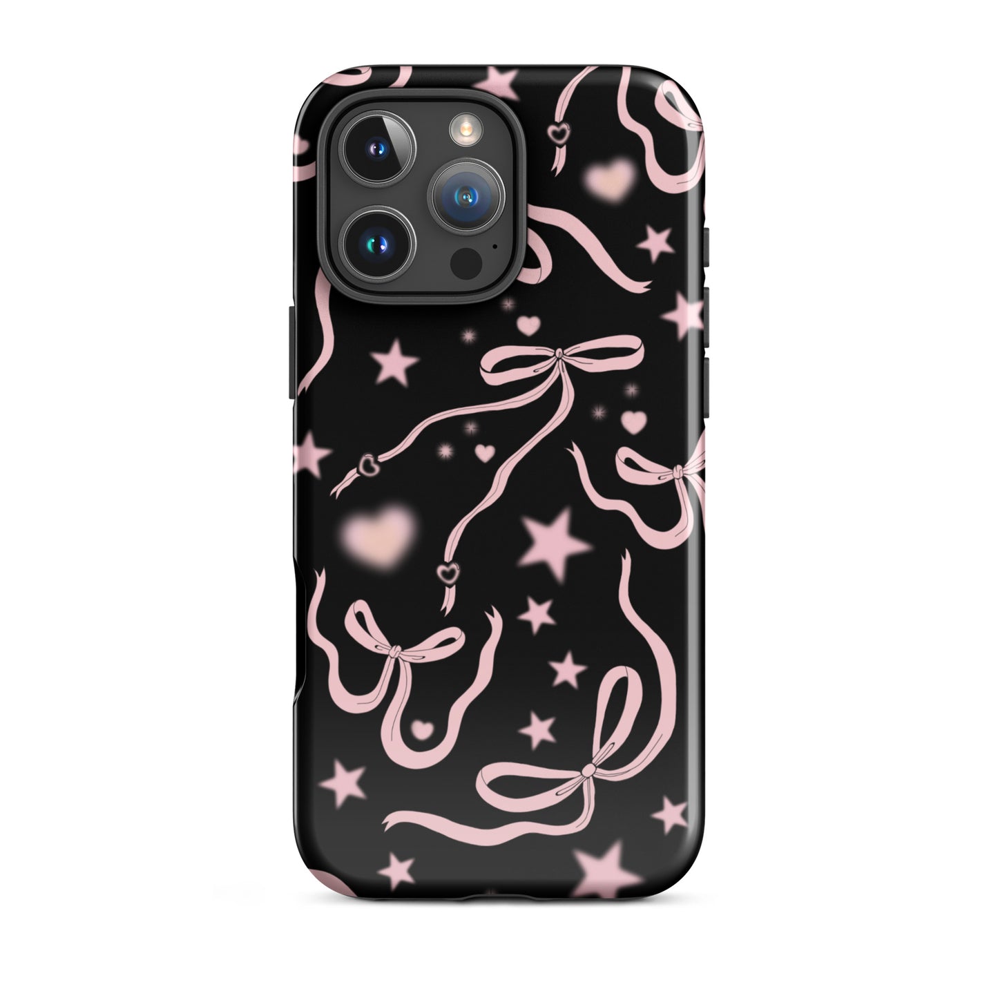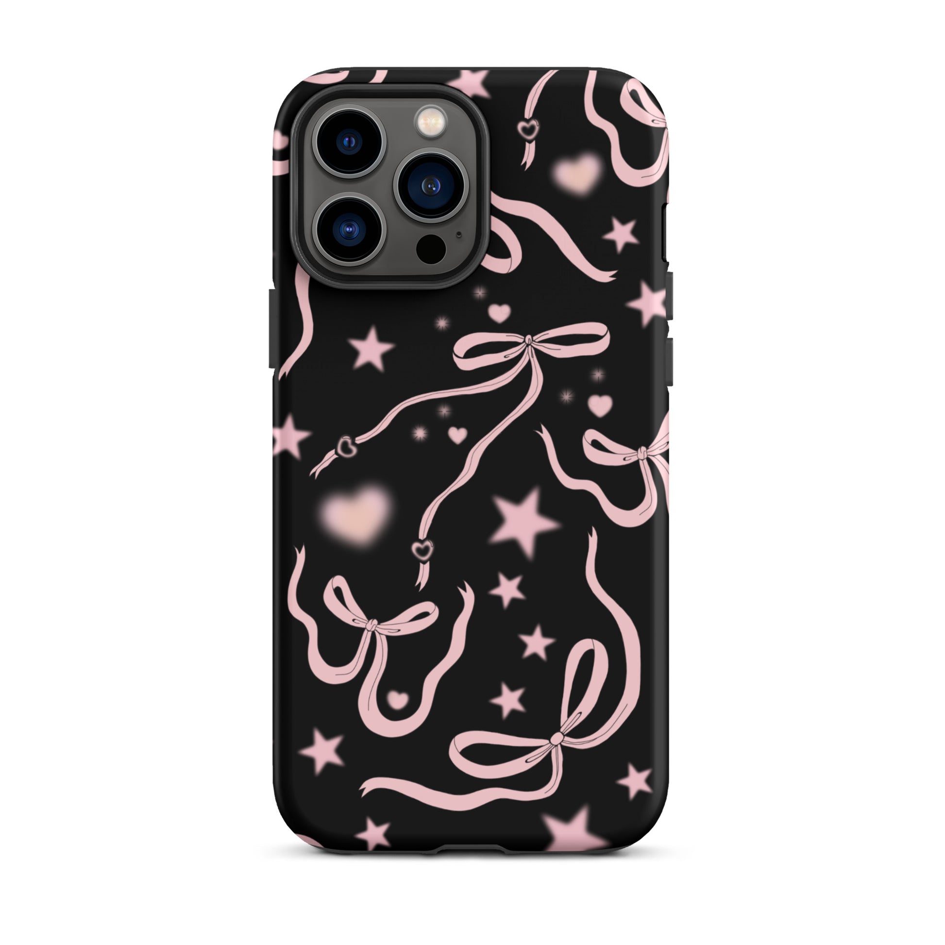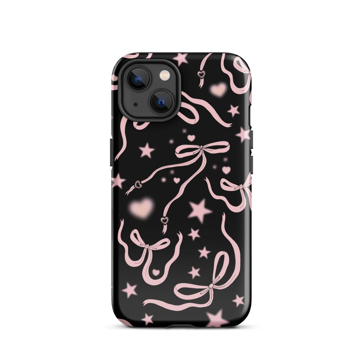 Step into a coquette-inspired Y2K dream with the Black Cosmic Bows iPhone Case! Featuring cute light pink ribbon bows and soft gradient pink stars and hearts on a sleek black background, this case brings a bold yet whimsical touch to your phone. Perfect for adding a dreamy, nostalgic vibe to your style.