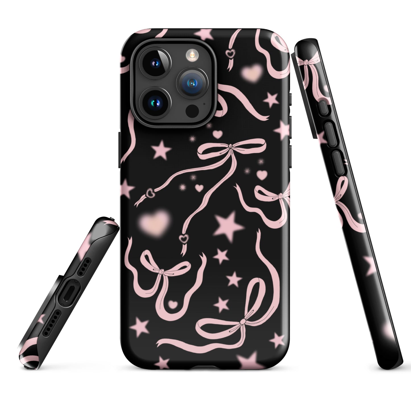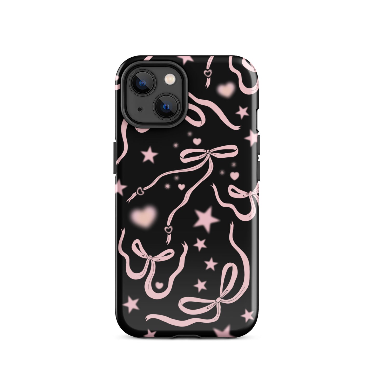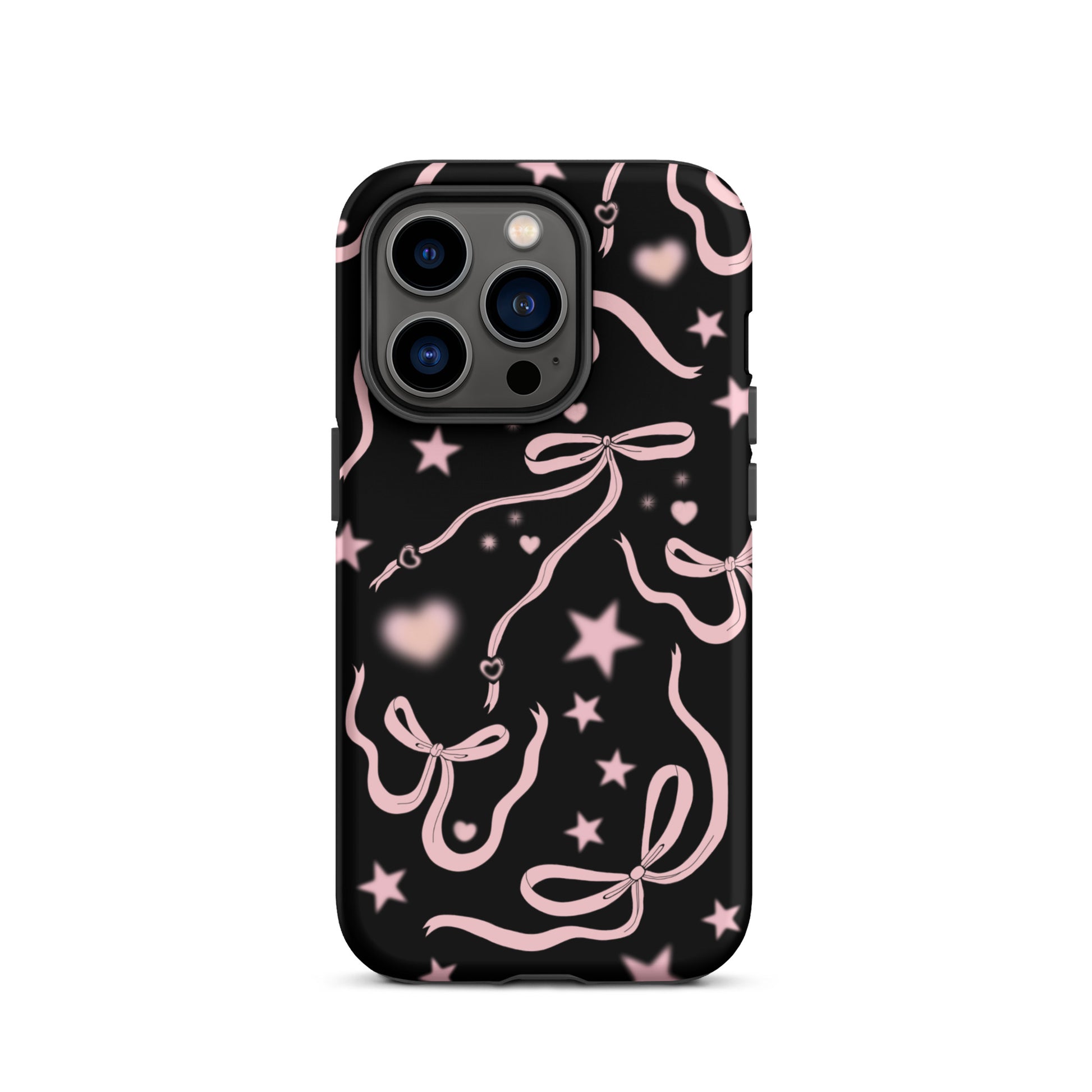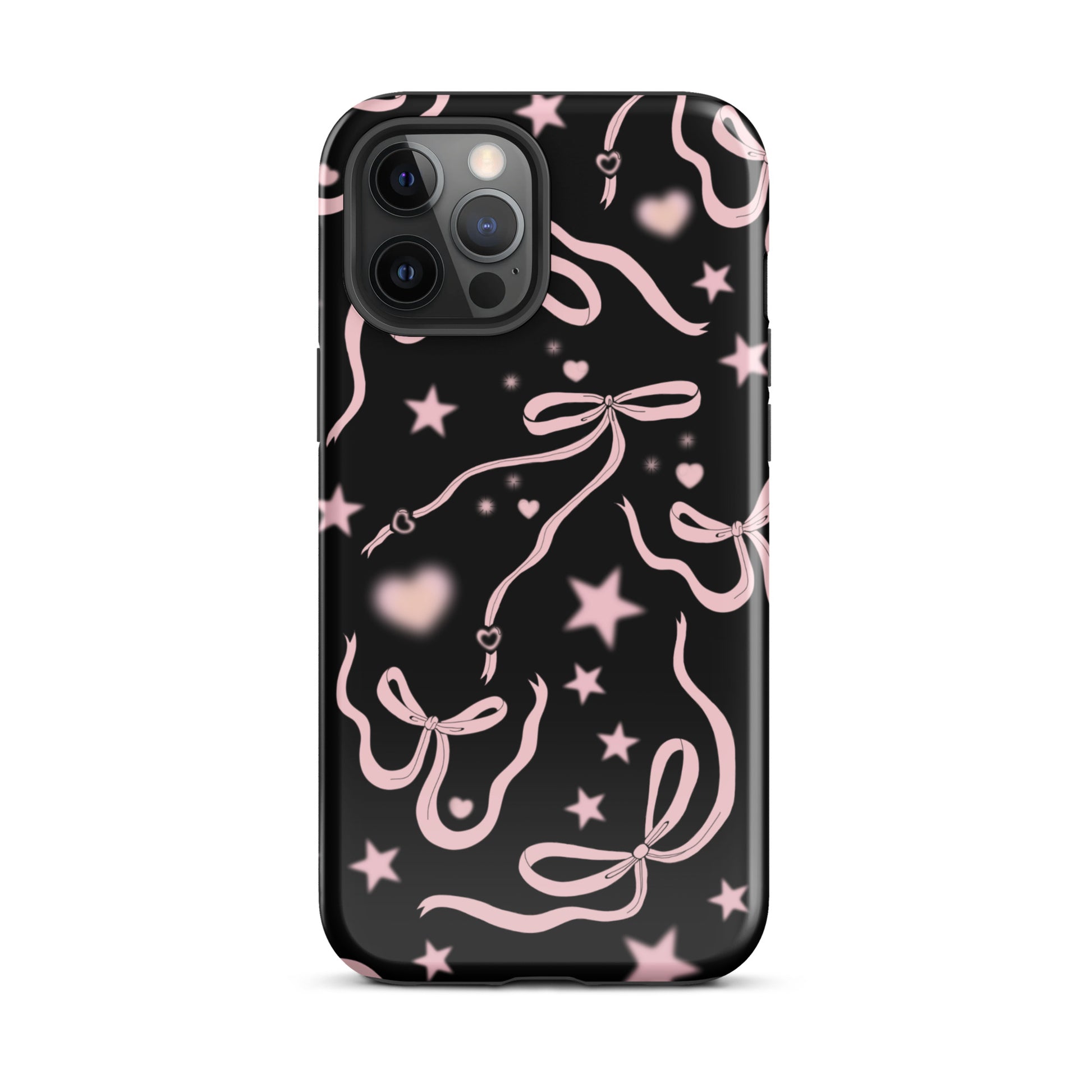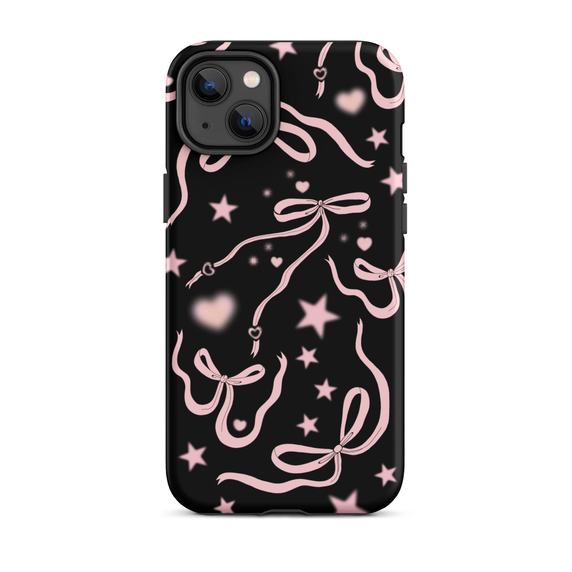 Step into a coquette-inspired Y2K dream with the Black Cosmic Bows iPhone Case! Featuring cute light pink ribbon bows and soft gradient pink stars and hearts on a sleek black background, this case brings a bold yet whimsical touch to your phone. Perfect for adding a dreamy, nostalgic vibe to your style.