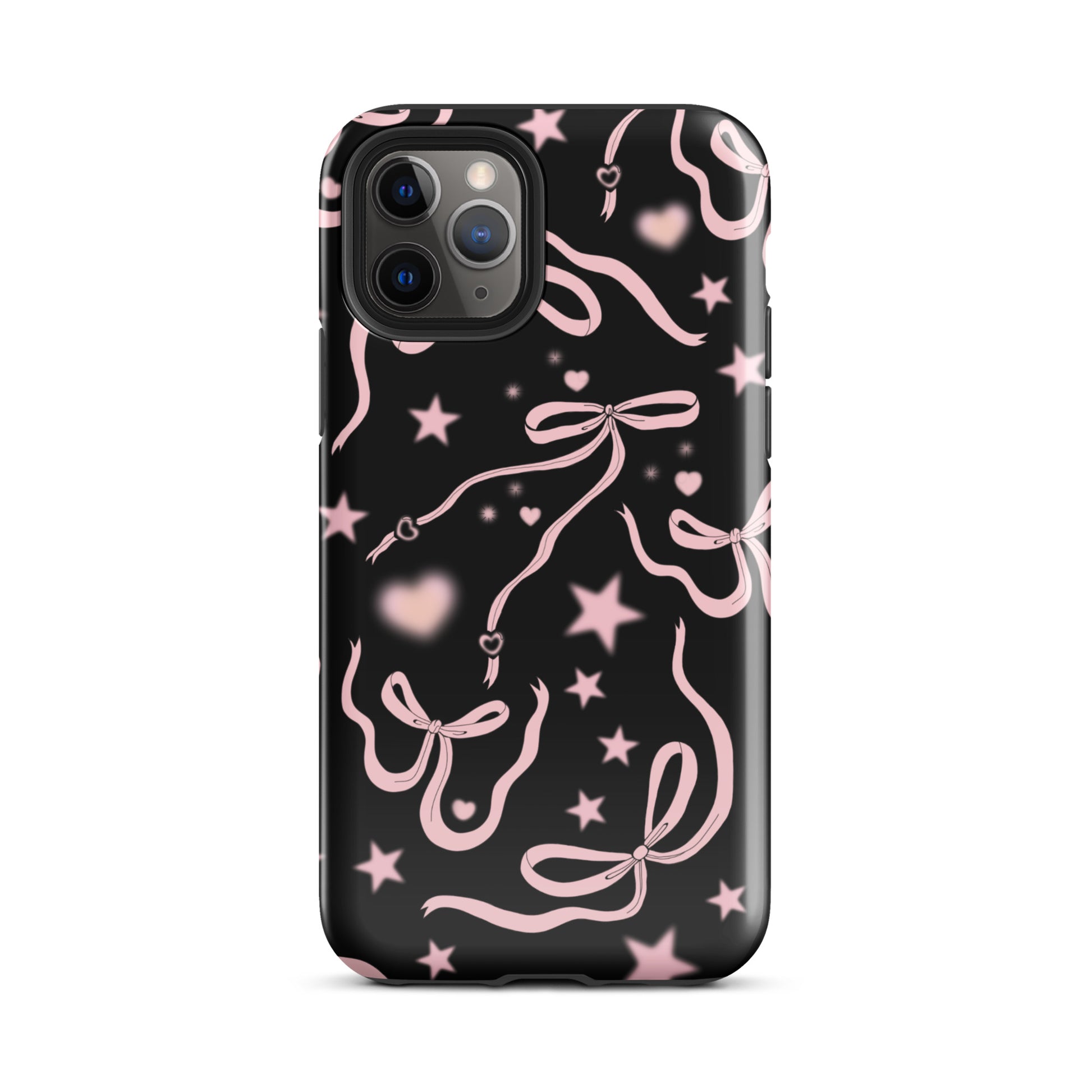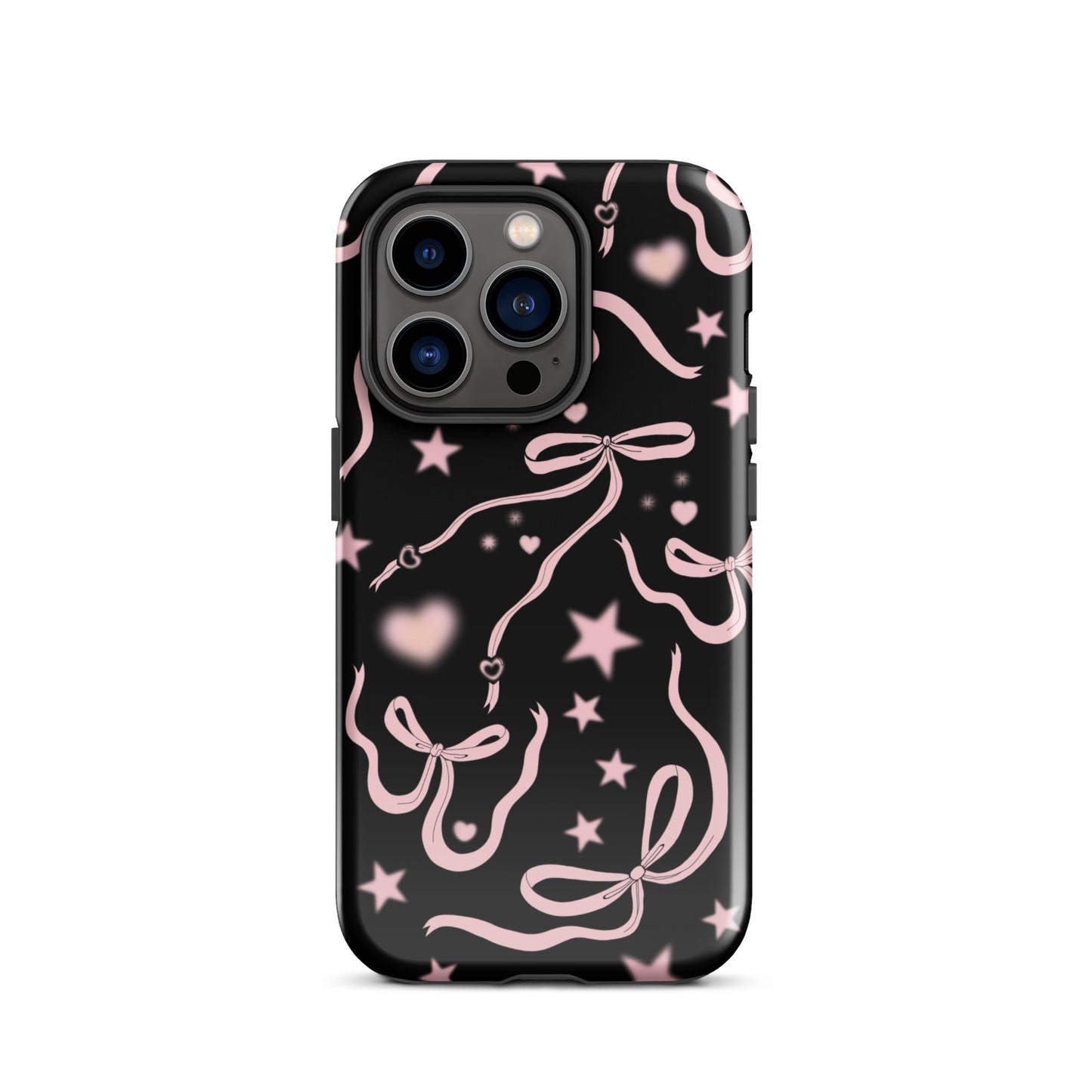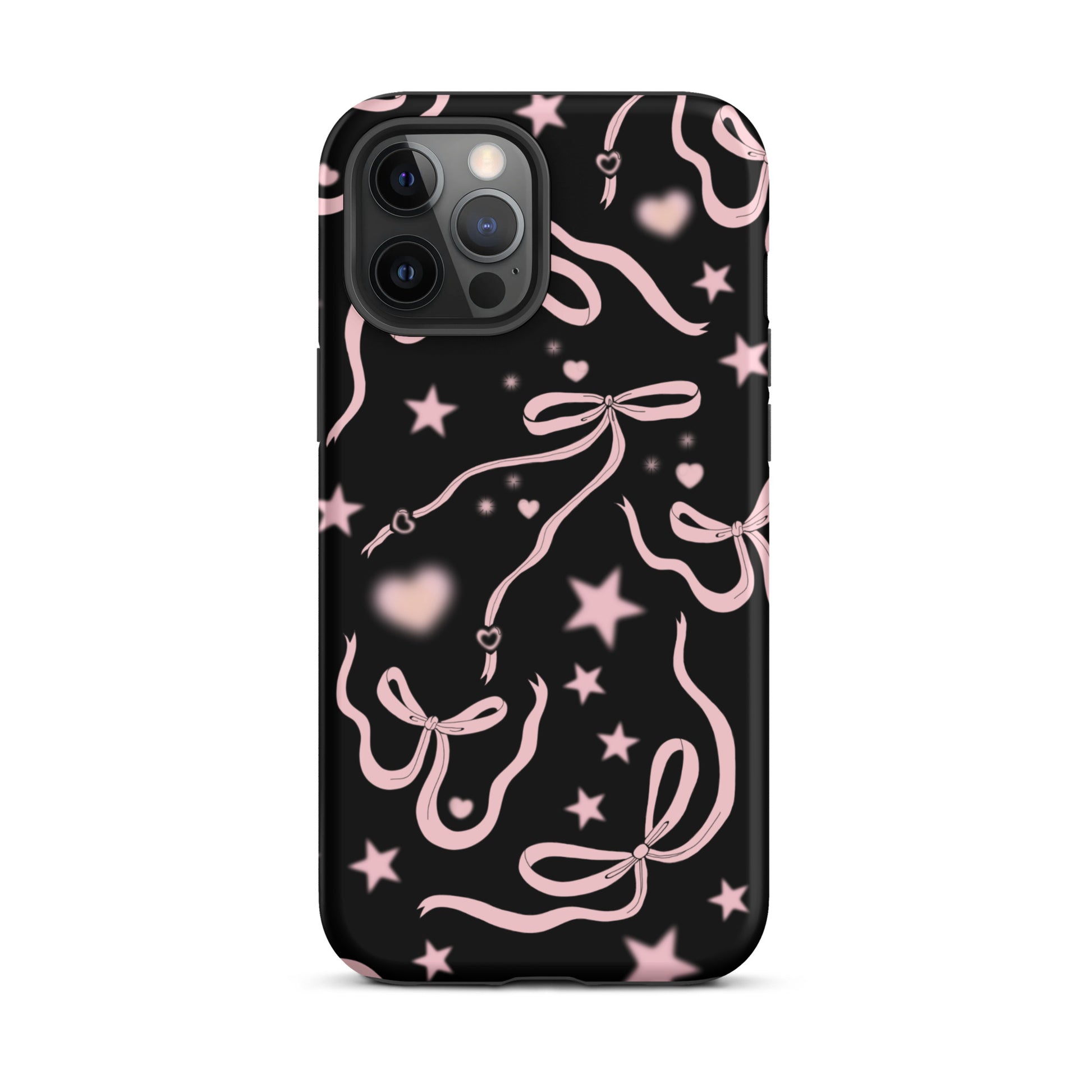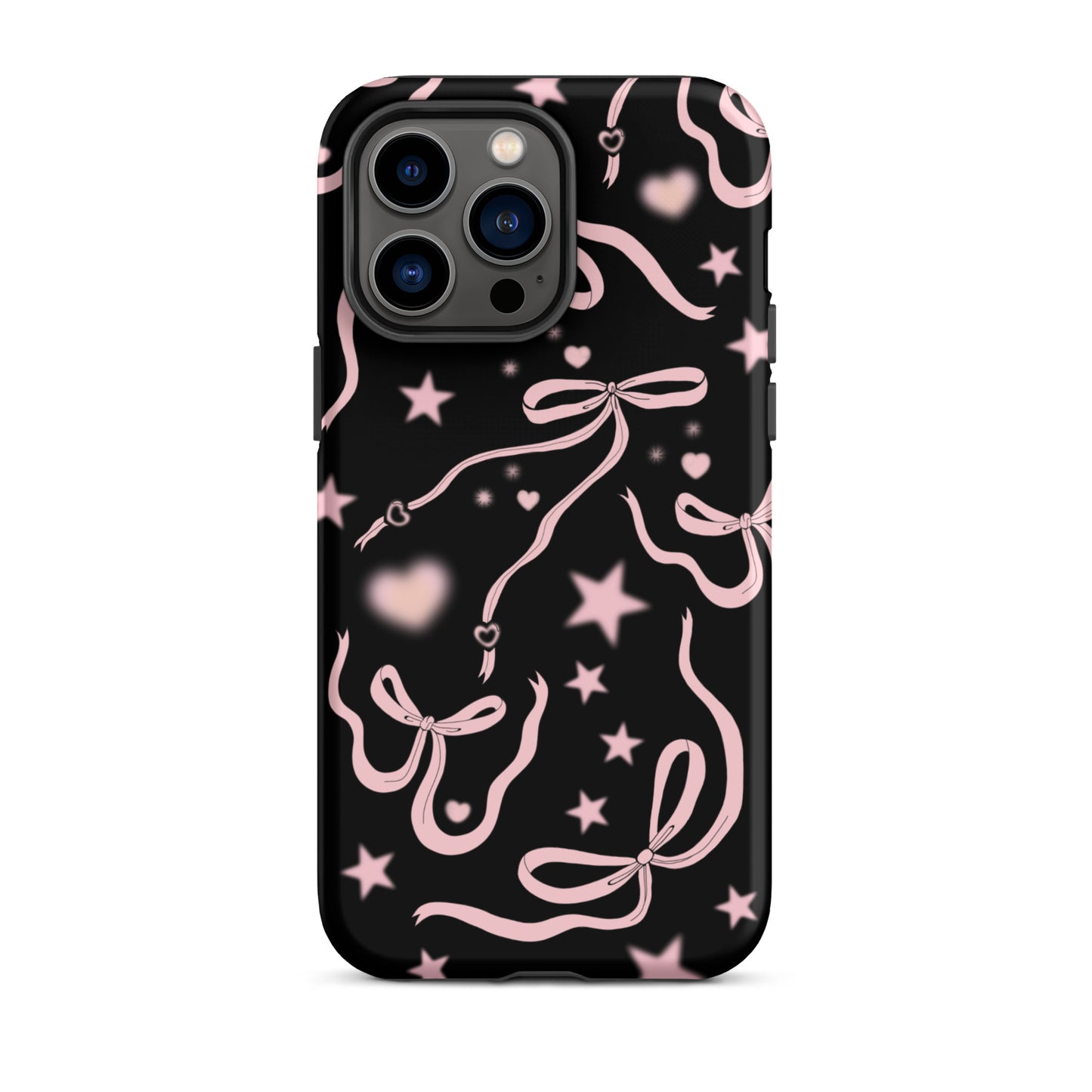 Step into a coquette-inspired Y2K dream with the Black Cosmic Bows iPhone Case! Featuring cute light pink ribbon bows and soft gradient pink stars and hearts on a sleek black background, this case brings a bold yet whimsical touch to your phone. Perfect for adding a dreamy, nostalgic vibe to your style.