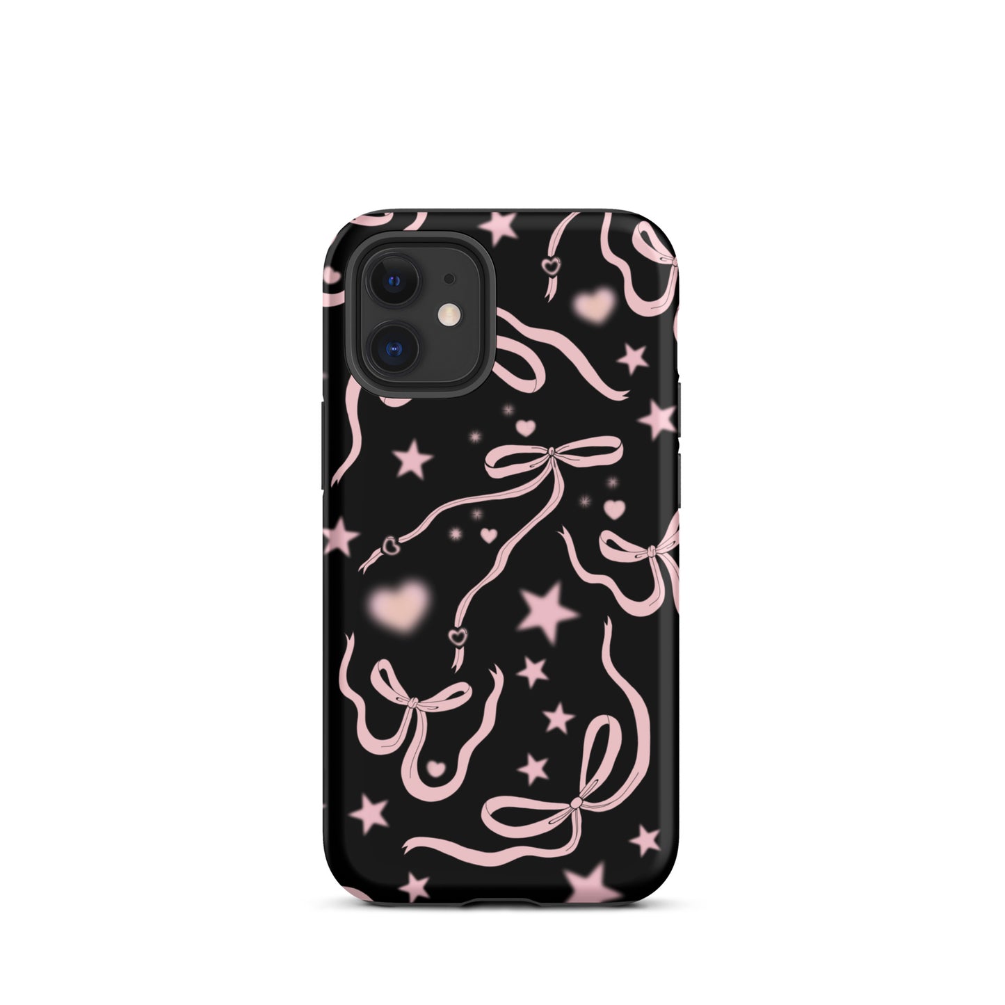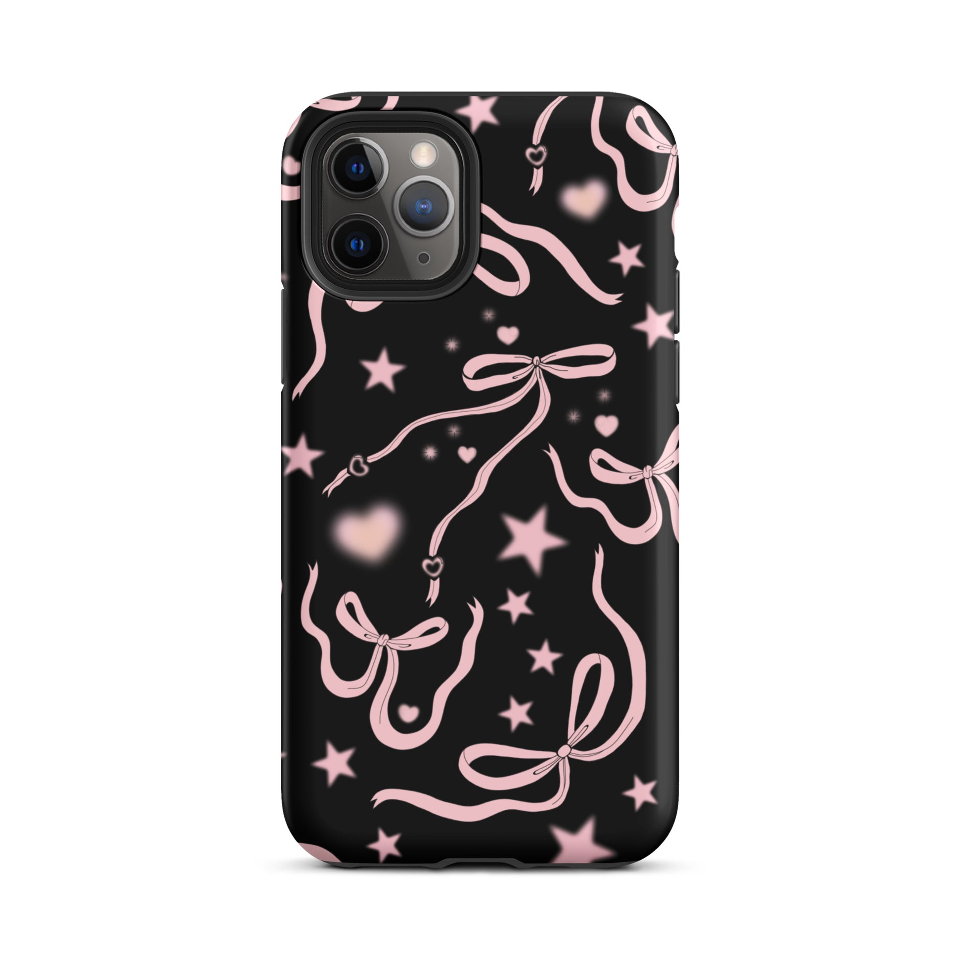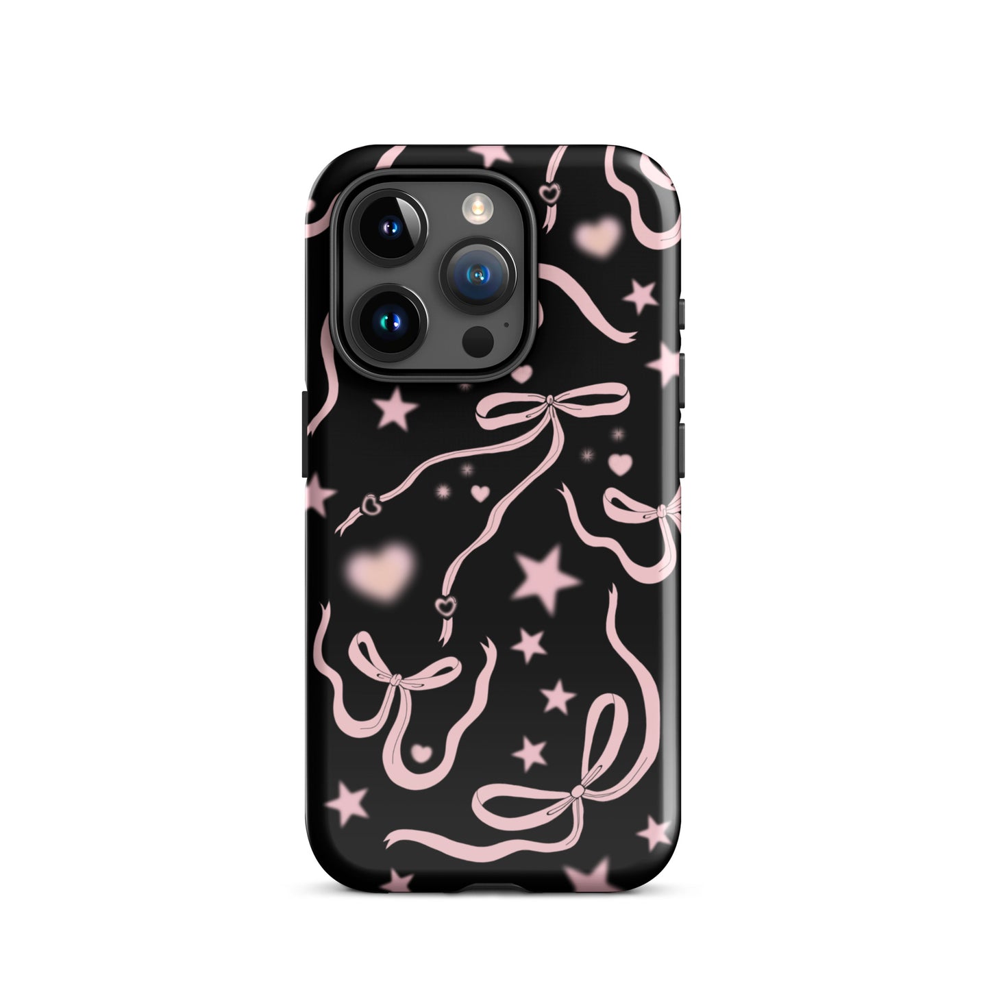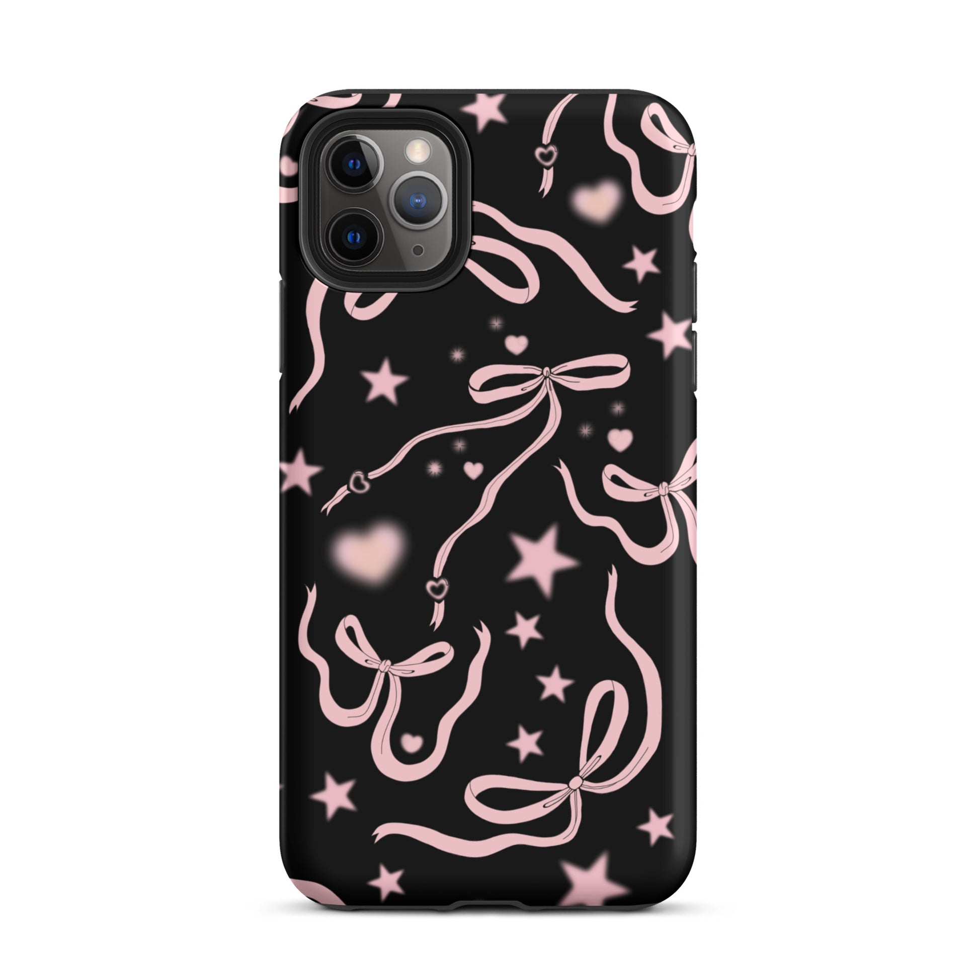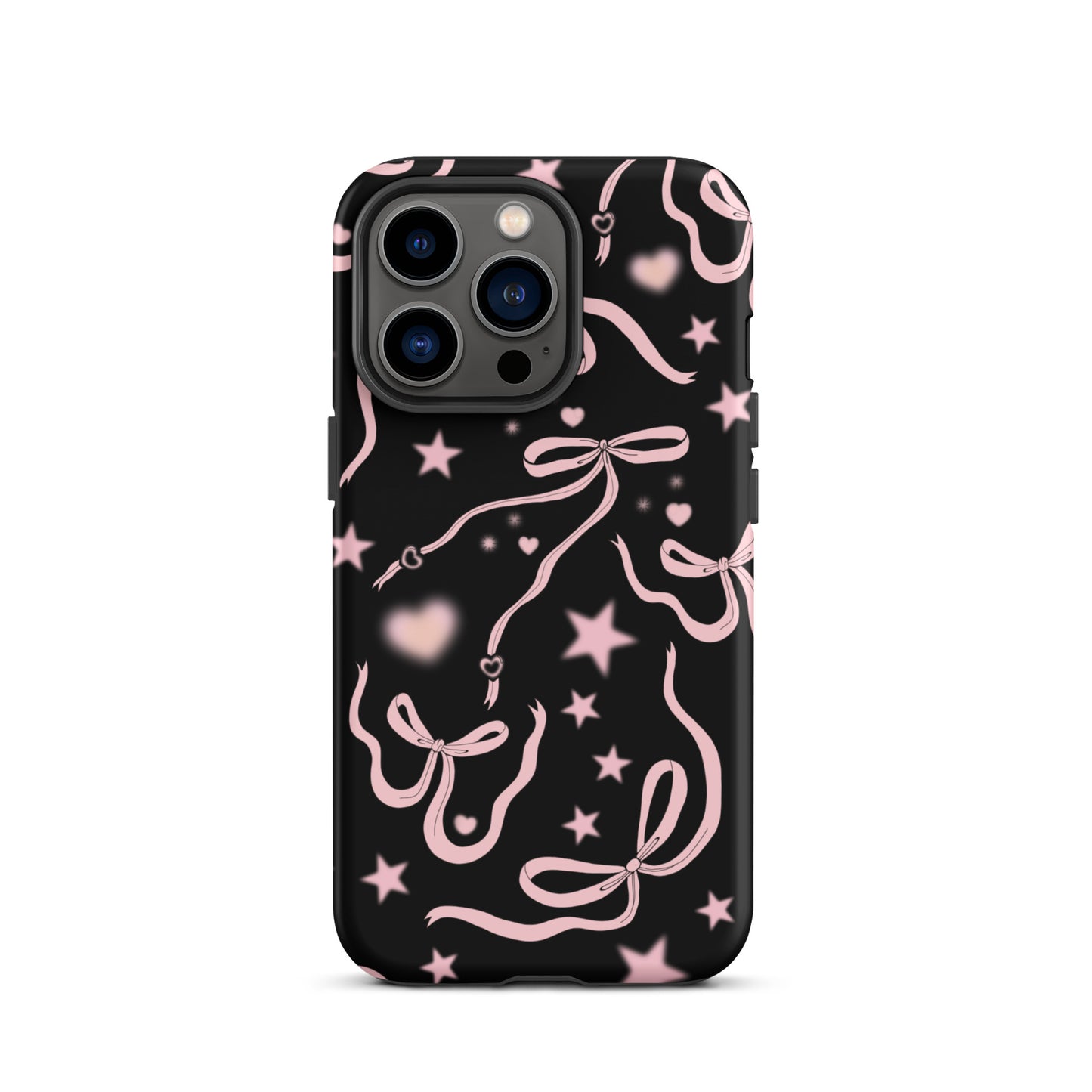 Step into a coquette-inspired Y2K dream with the Black Cosmic Bows iPhone Case! Featuring cute light pink ribbon bows and soft gradient pink stars and hearts on a sleek black background, this case brings a bold yet whimsical touch to your phone. Perfect for adding a dreamy, nostalgic vibe to your style.