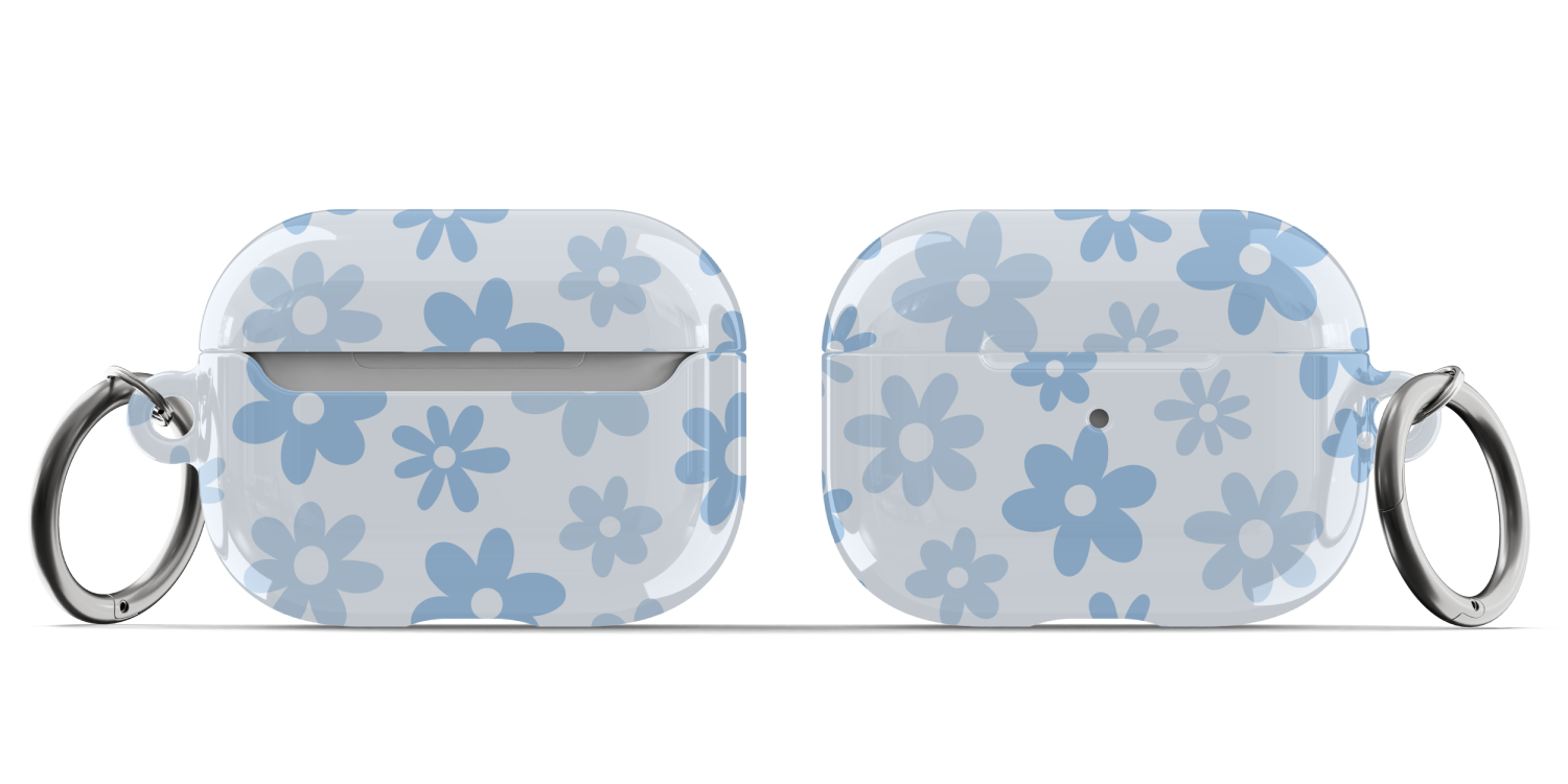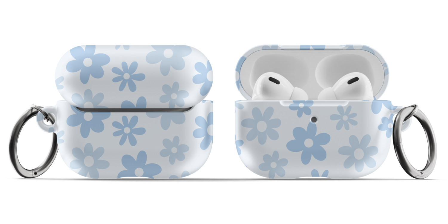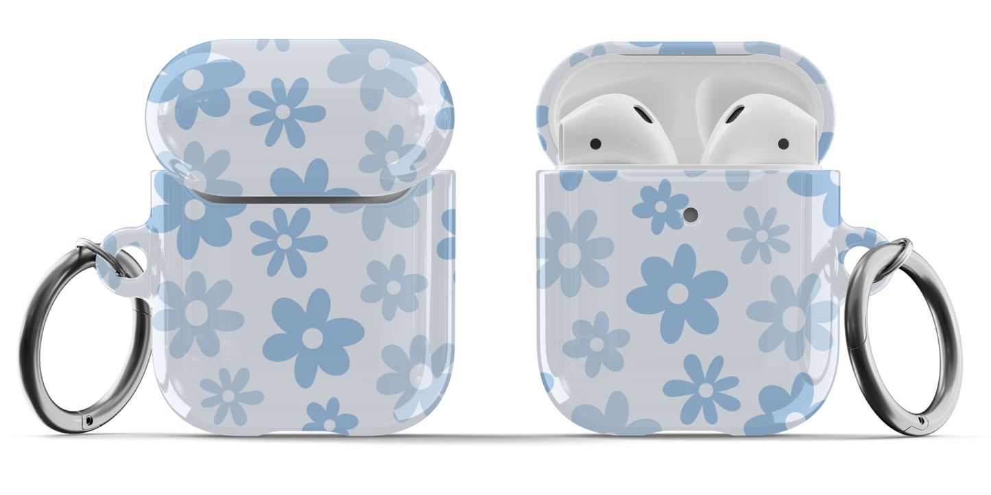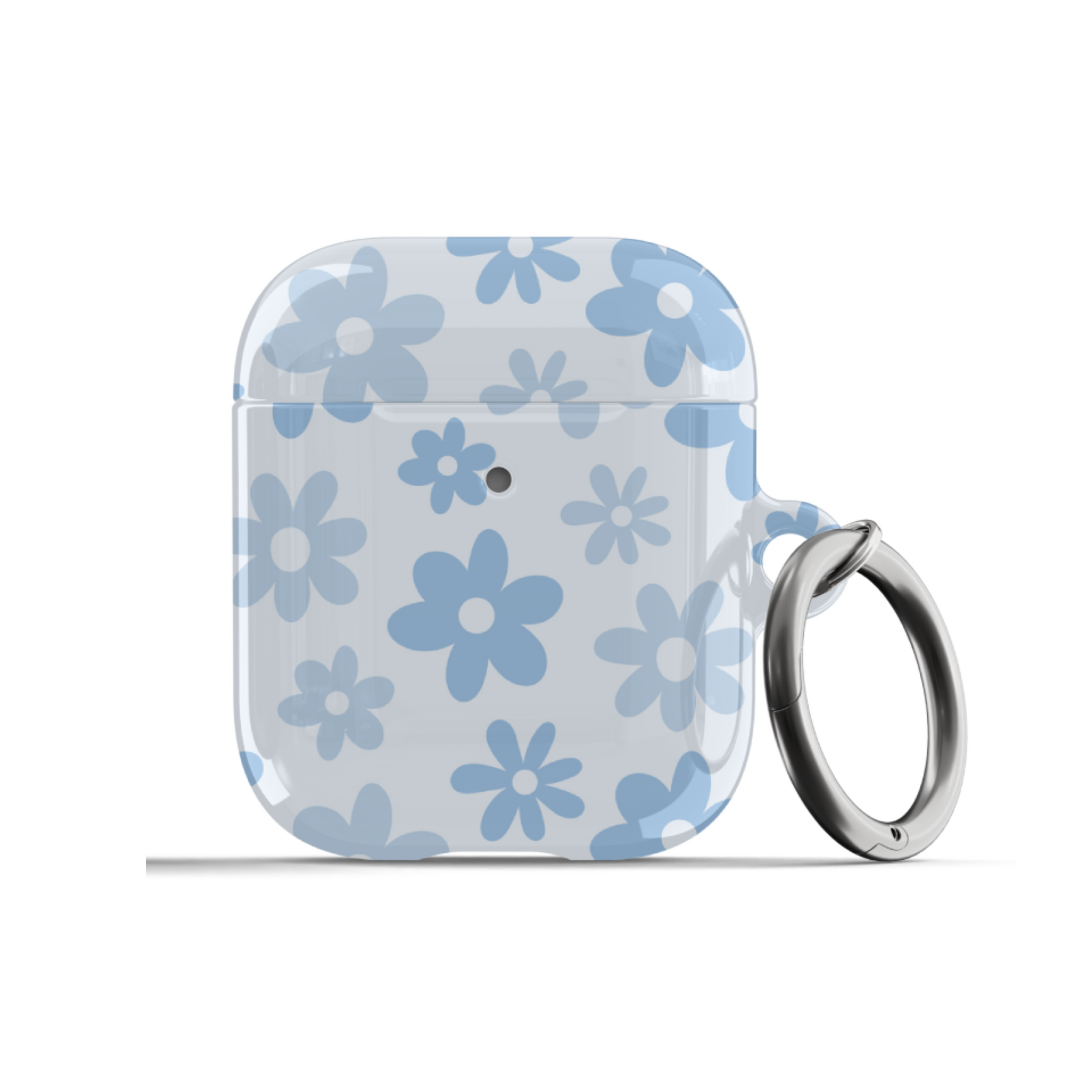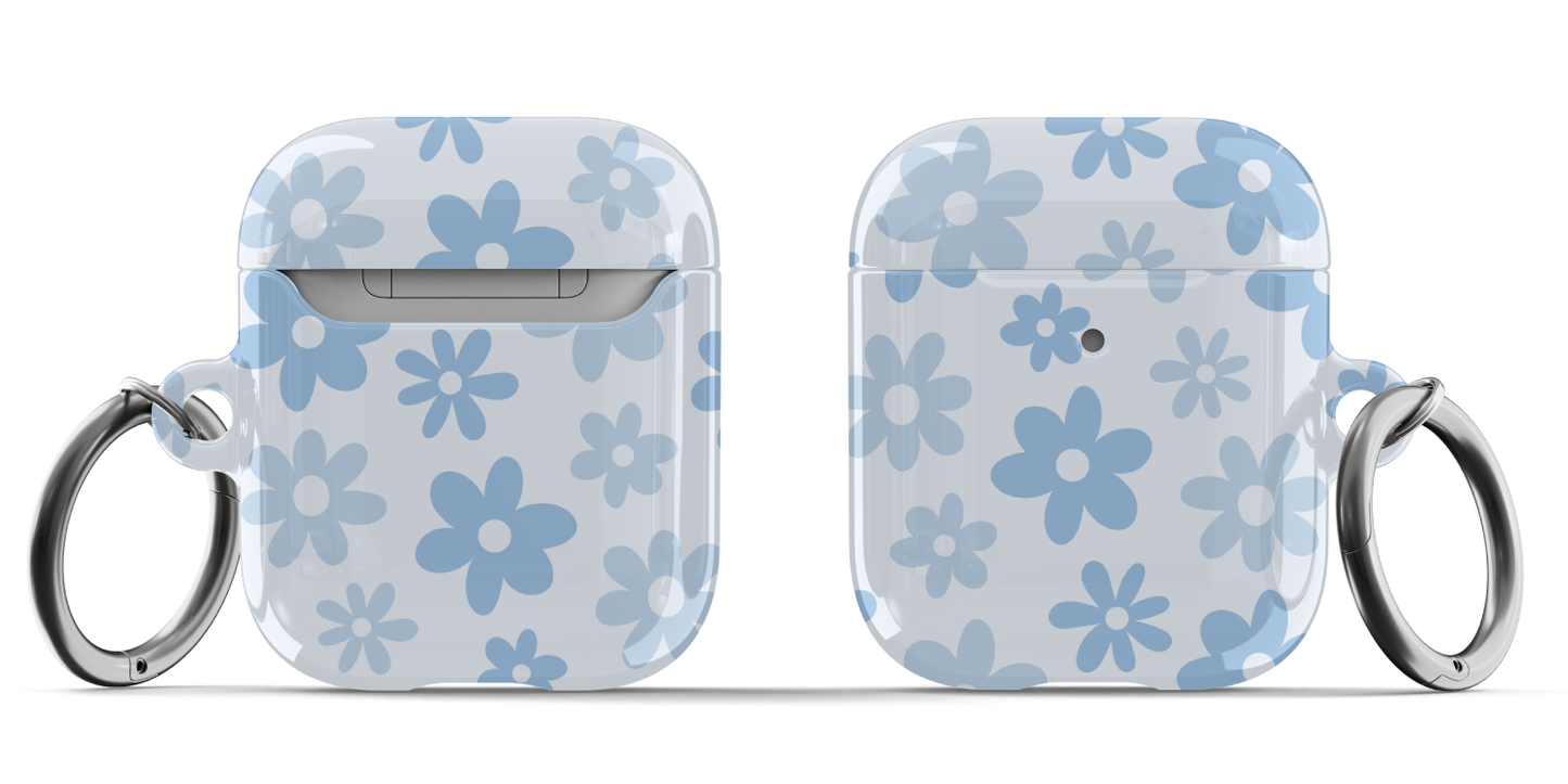 Protect your AirPods with our cute Blue Flower Power AirPods Case! This cute AirPods case features blue flowers on a light blue background.