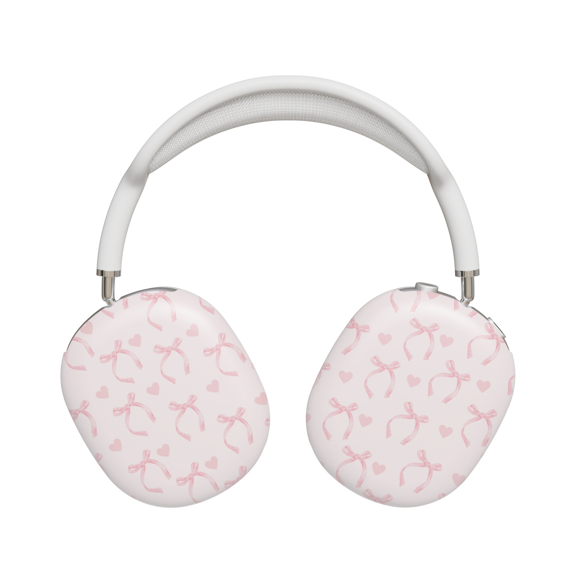 Protect your AirPods Max with our Coquette Pink Bows AirPods Max Case! This cute AirPods Max case features pink bows and hearts on a light pink background.