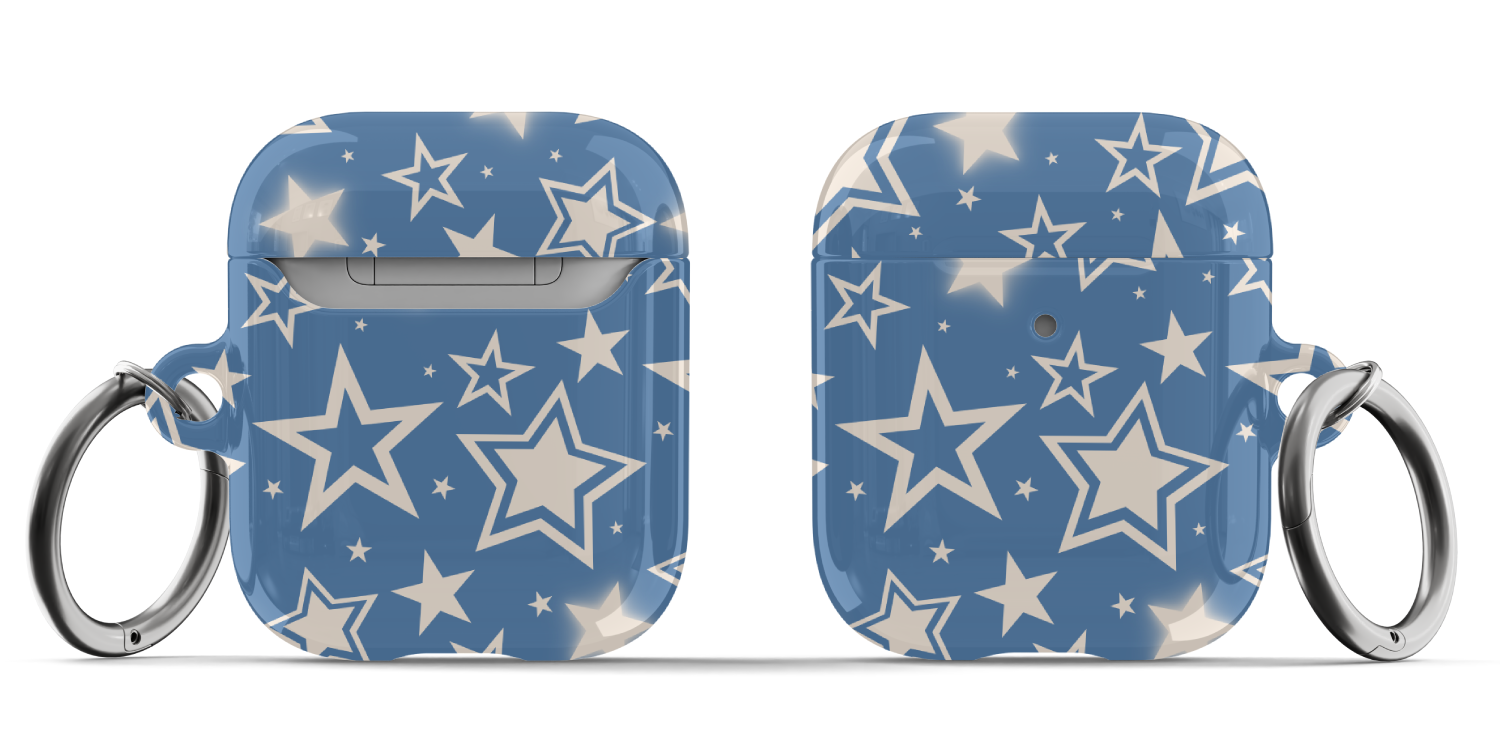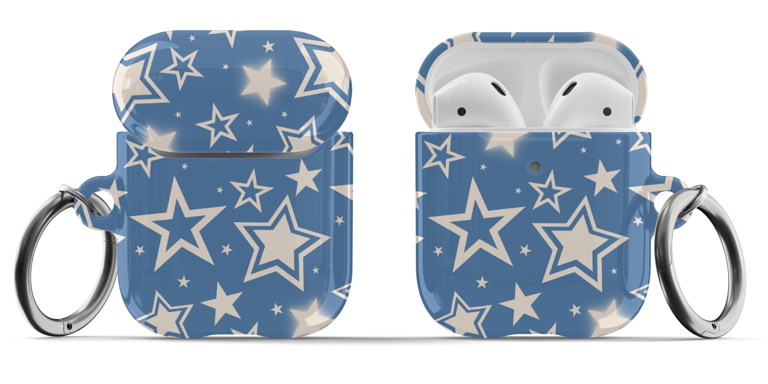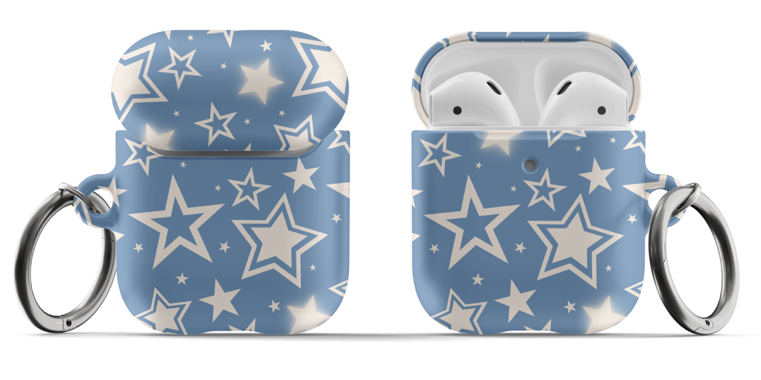 Protect your AirPods with our Dark Blue Stardust AirPods Case! This cute AirPods case features beige stars on a blue background.