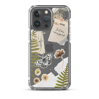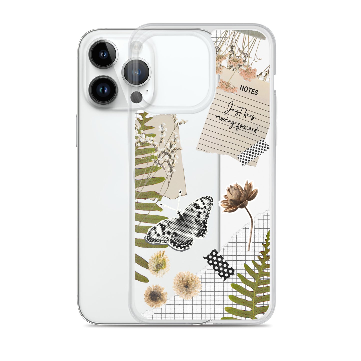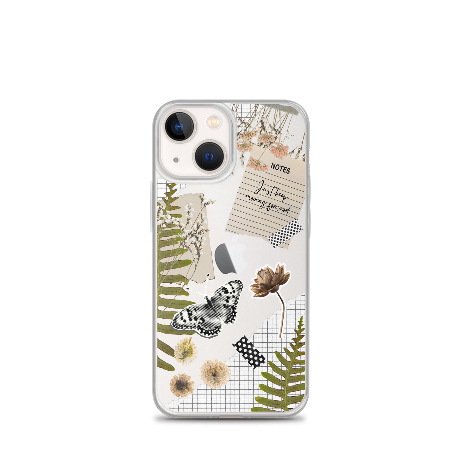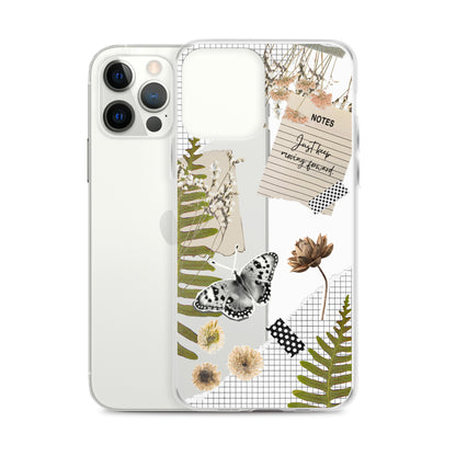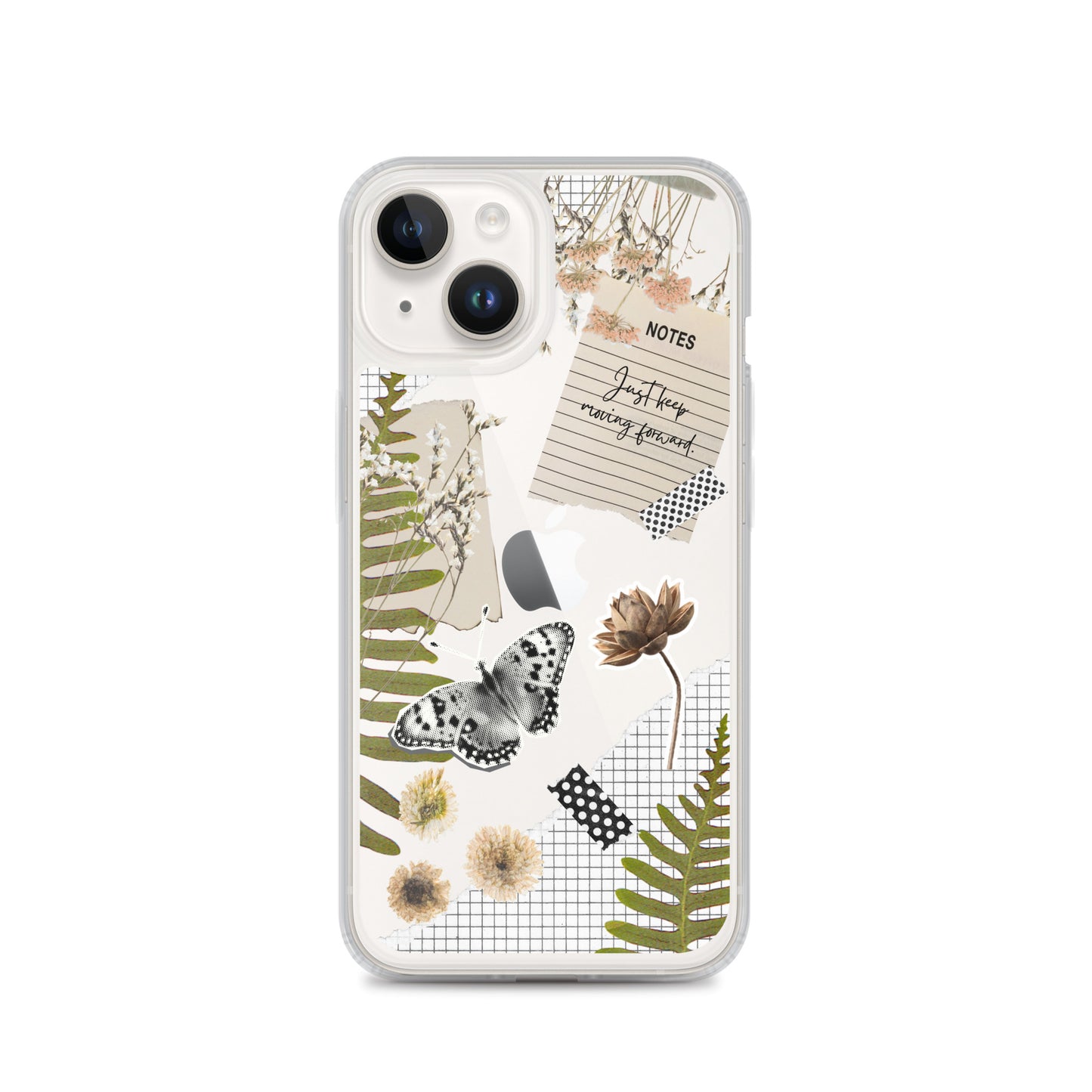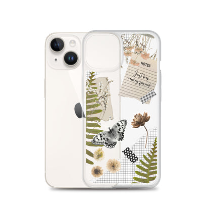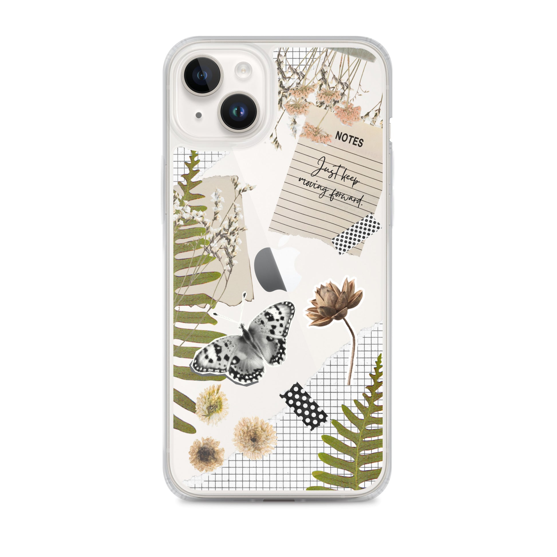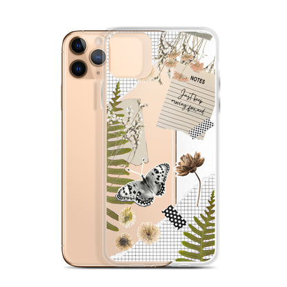 Elevate your phone with this unique case! This clear case features a nature-inspired collage design.