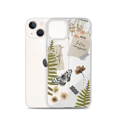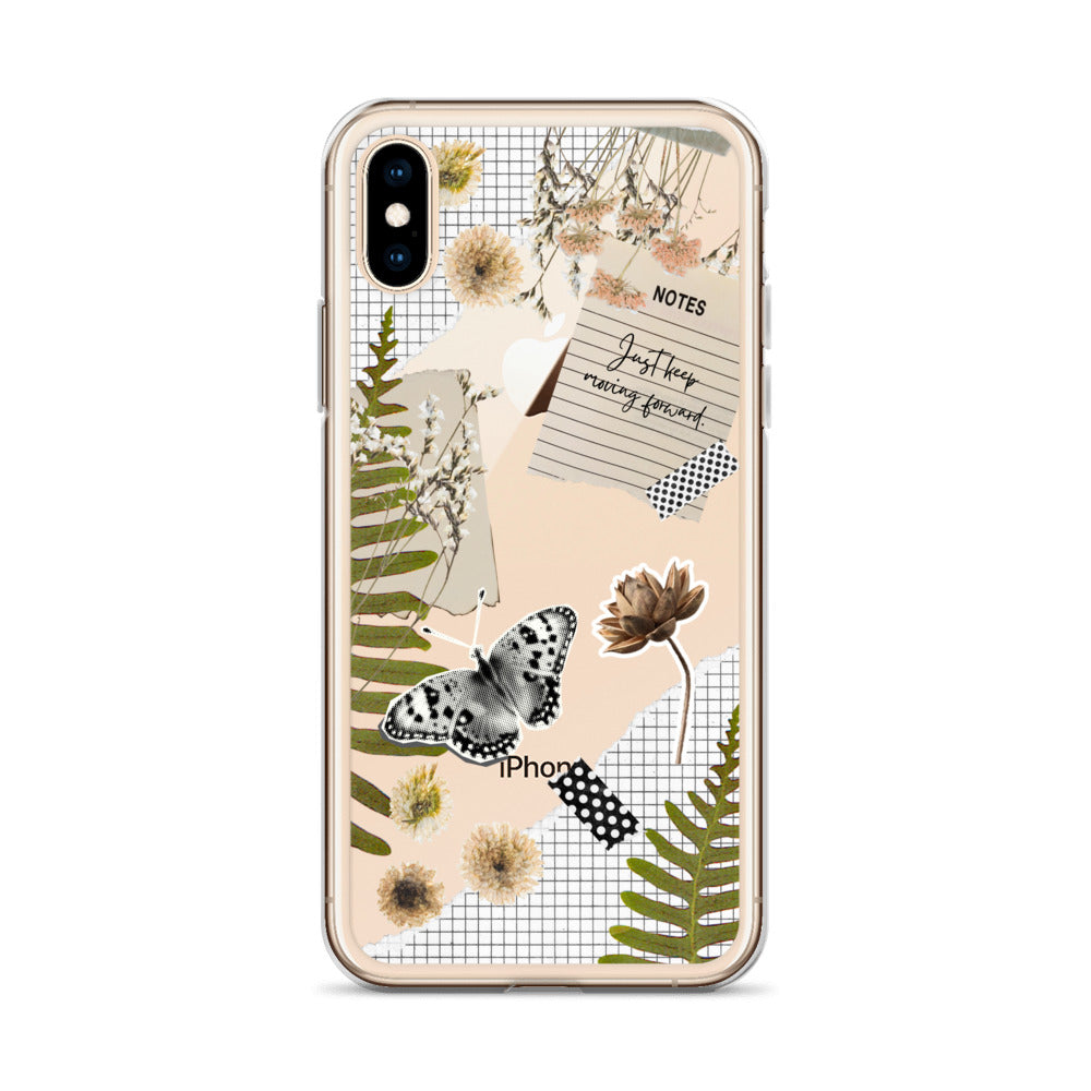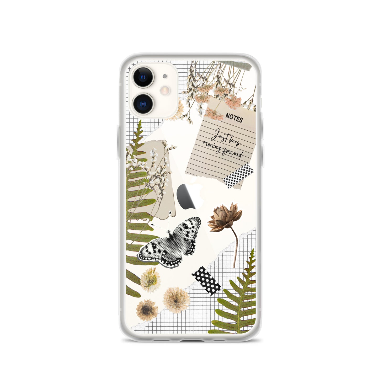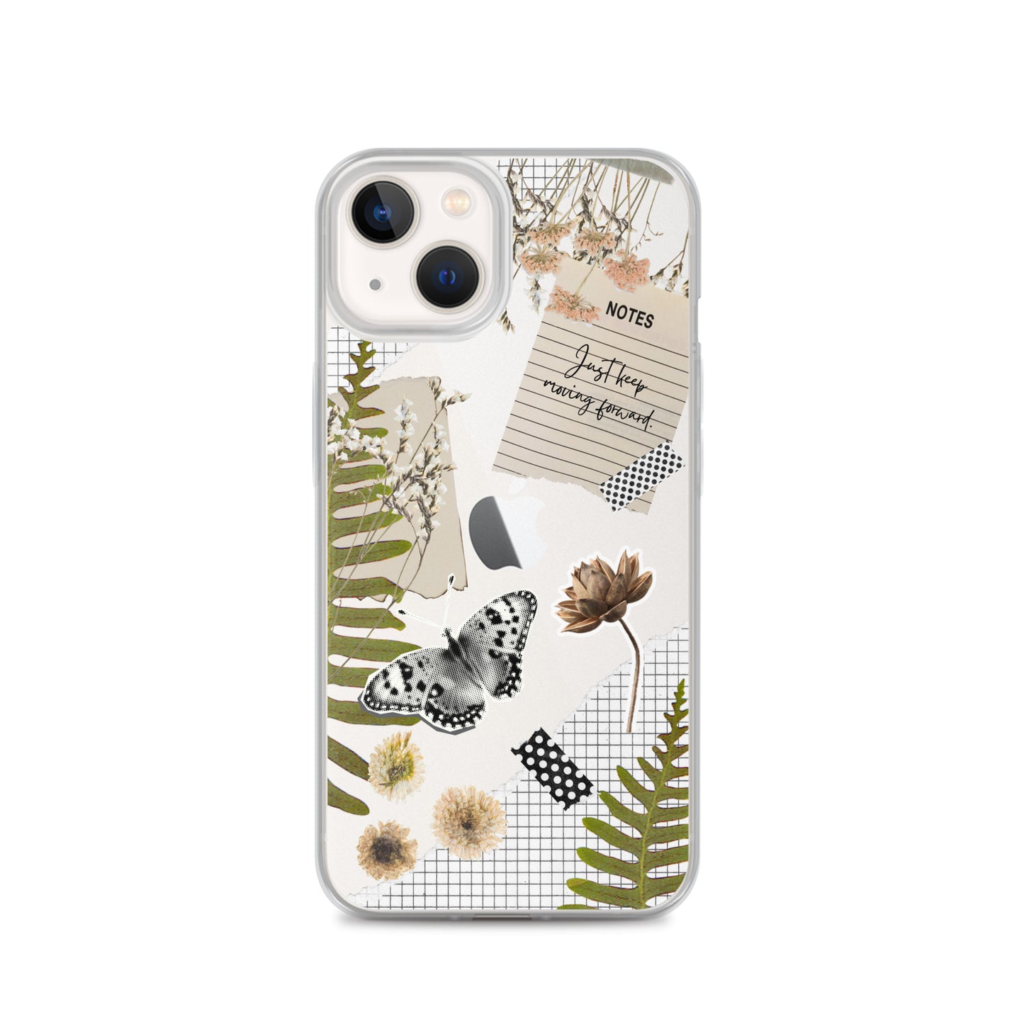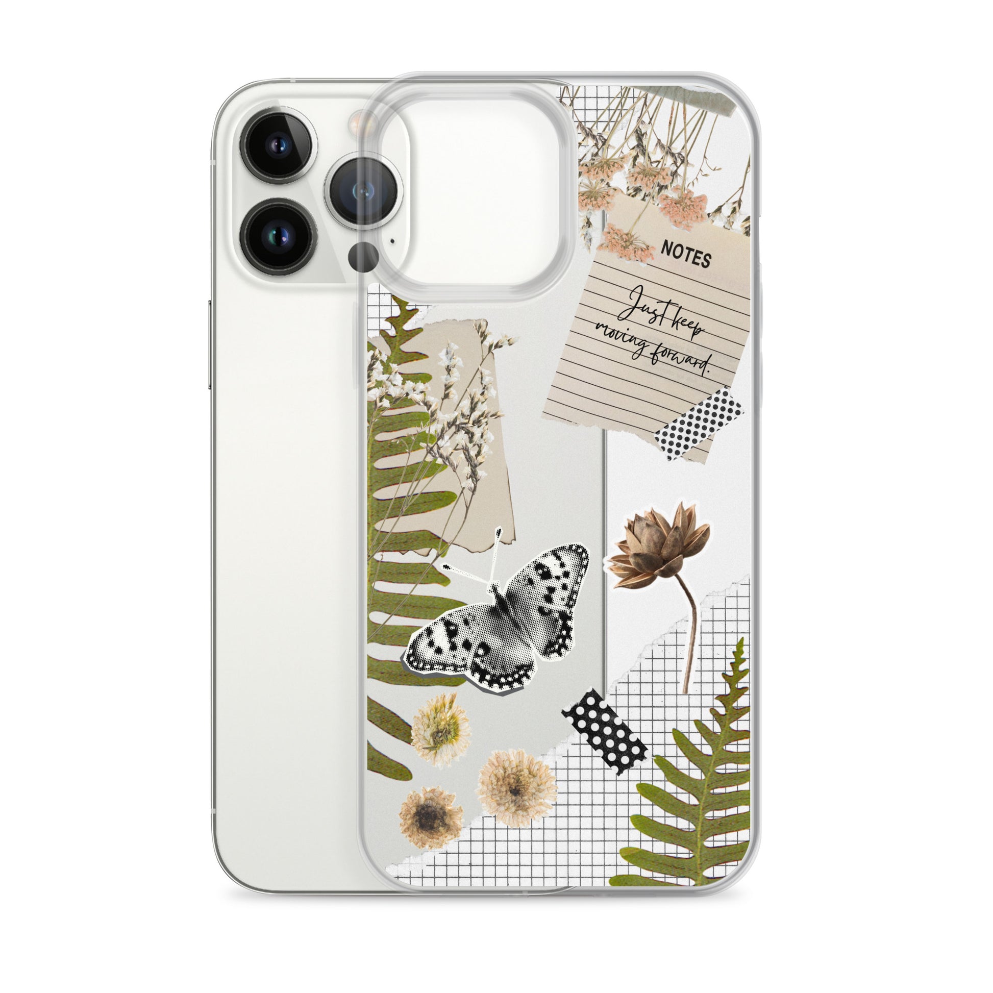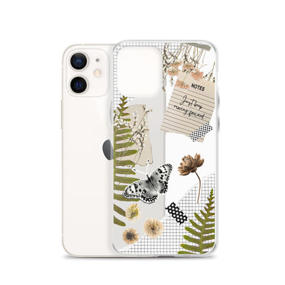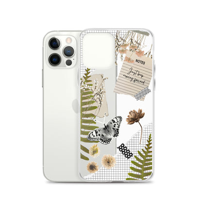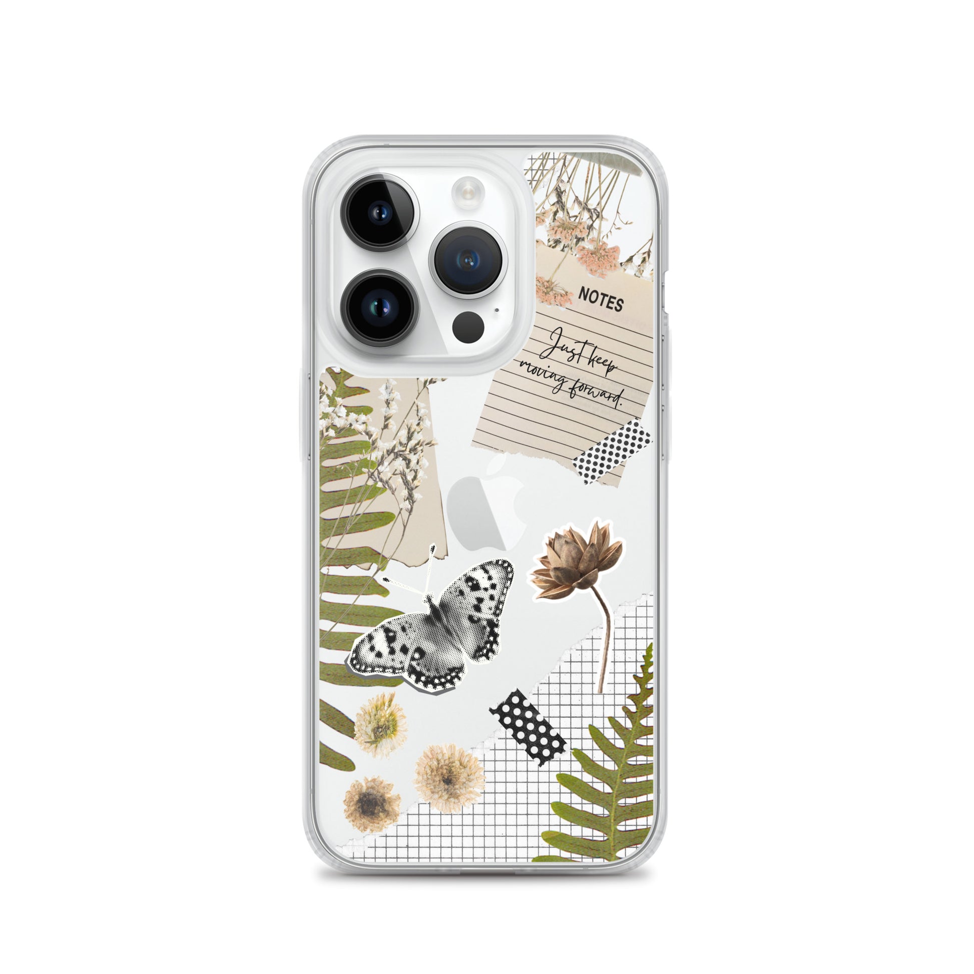 Elevate your phone with this unique case! This clear case features a nature-inspired collage design.