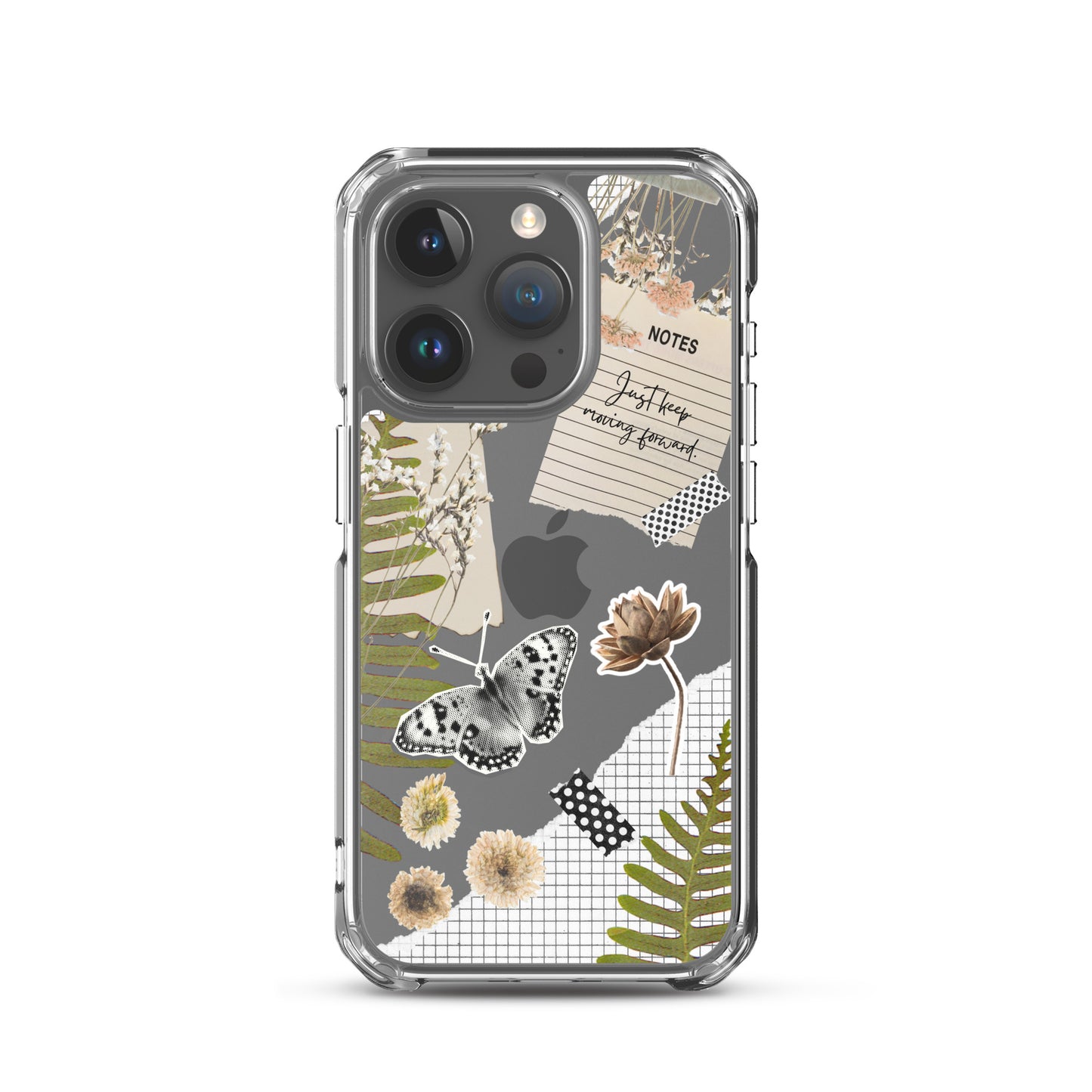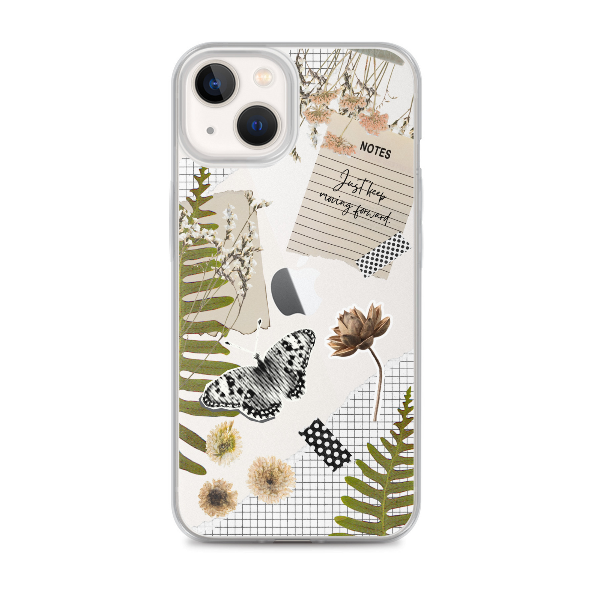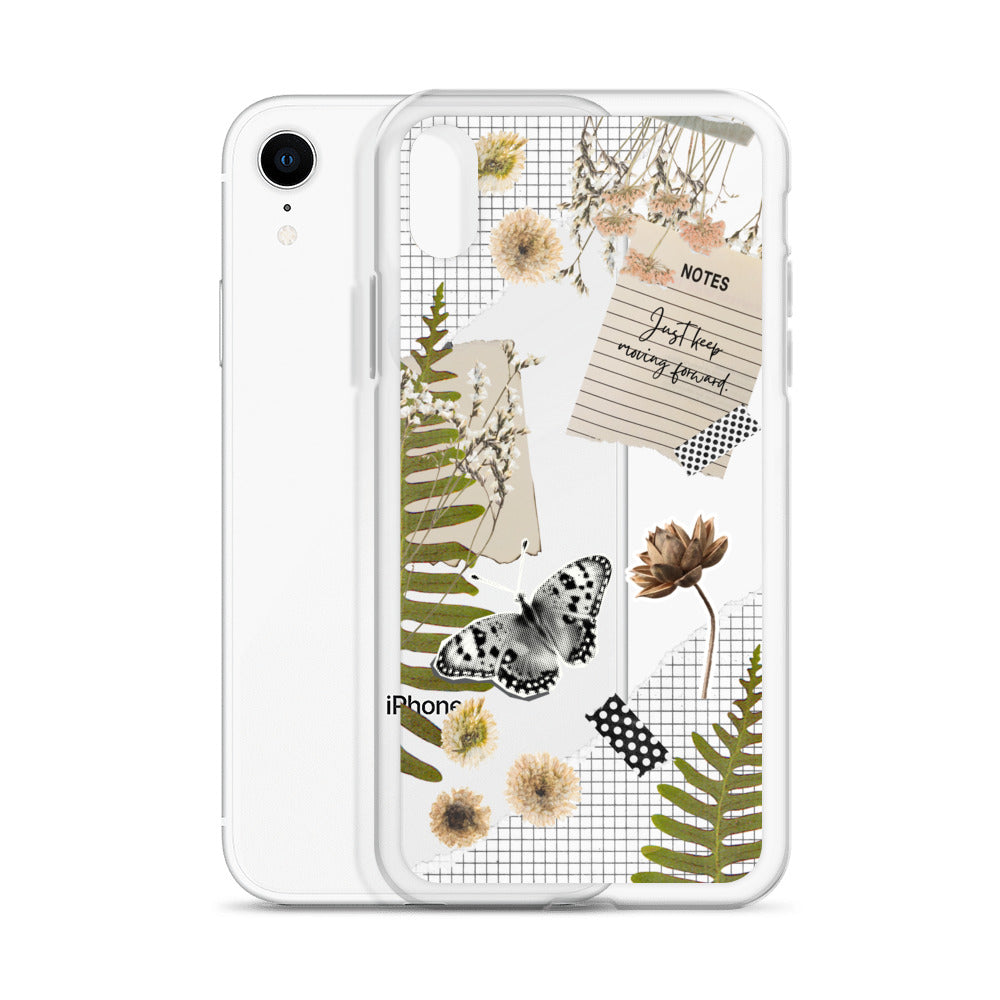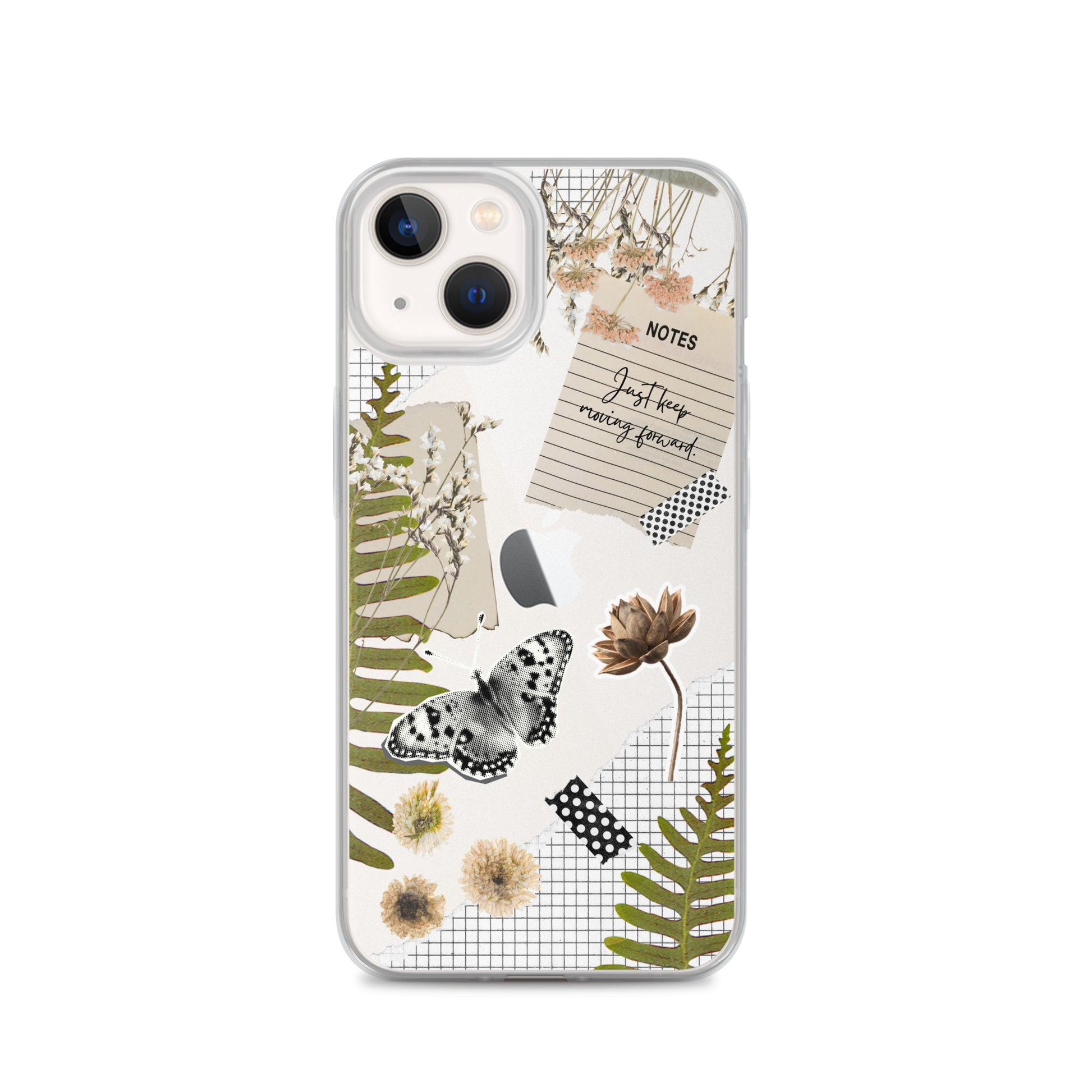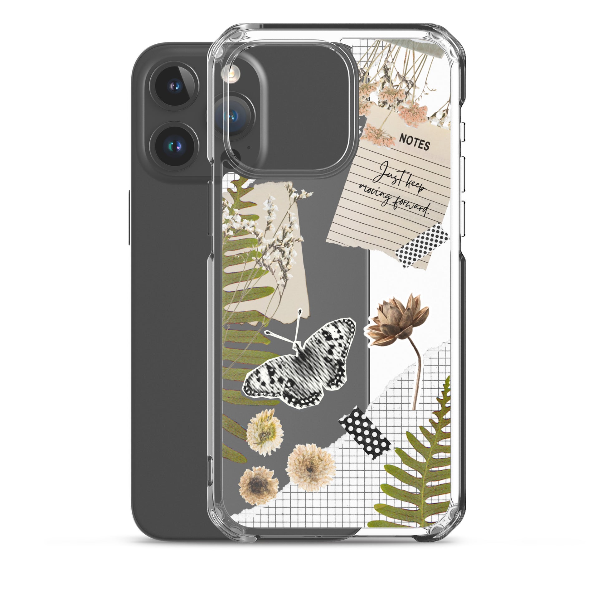 Elevate your phone with this unique case! This clear case features a nature-inspired collage design.