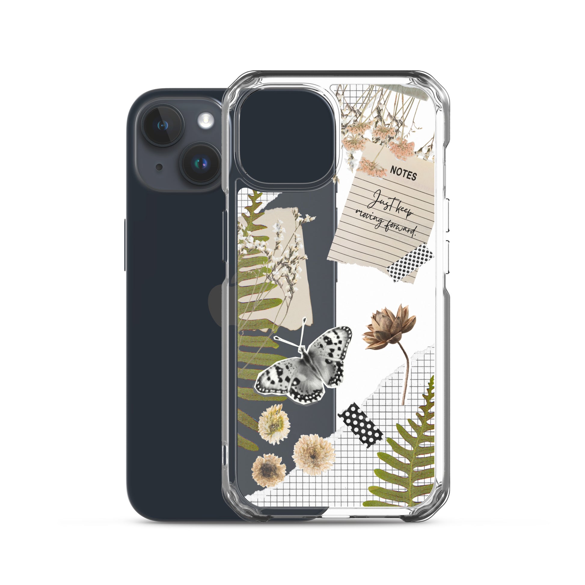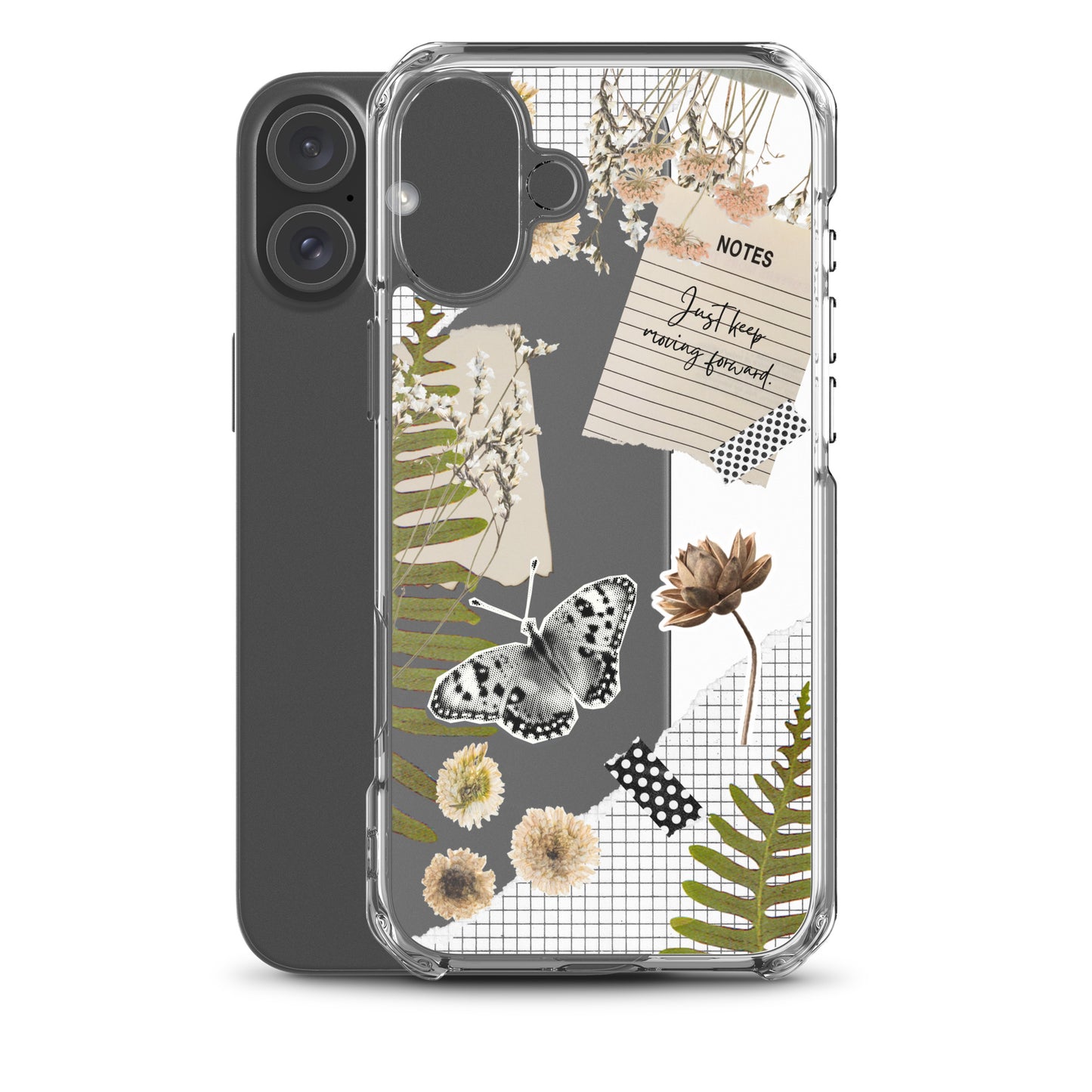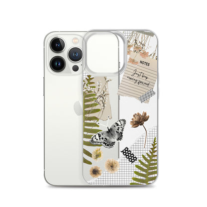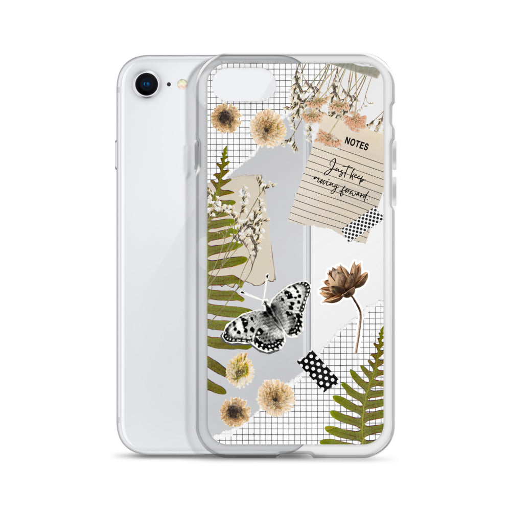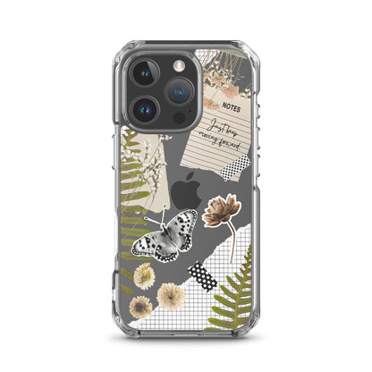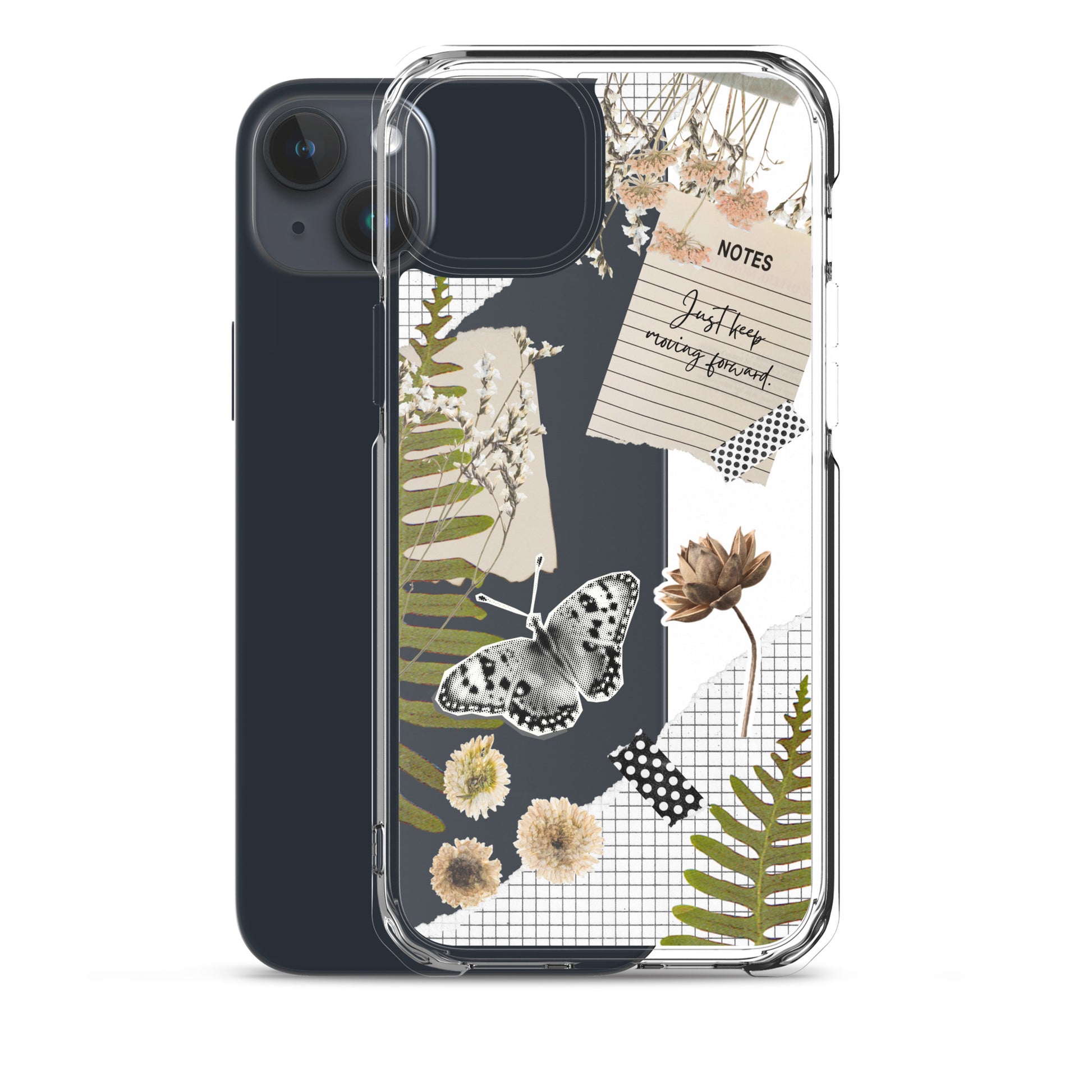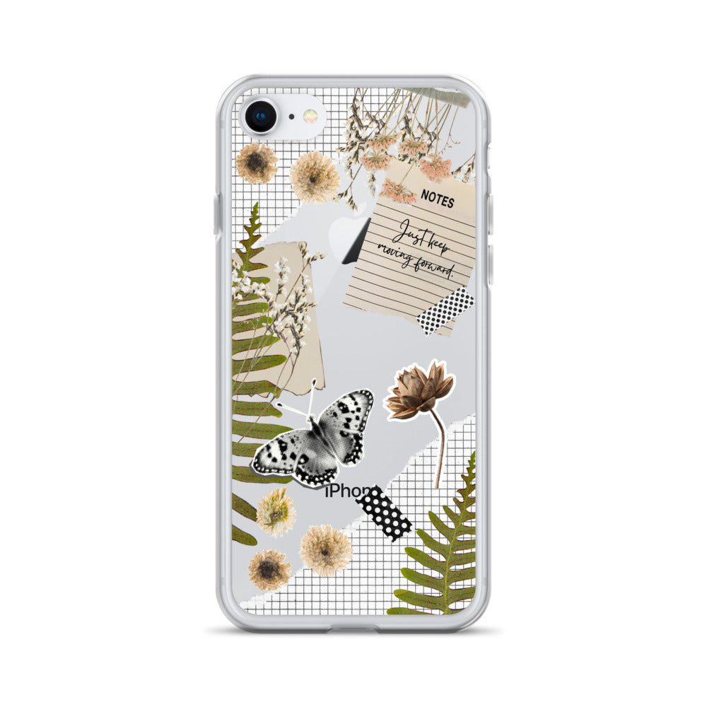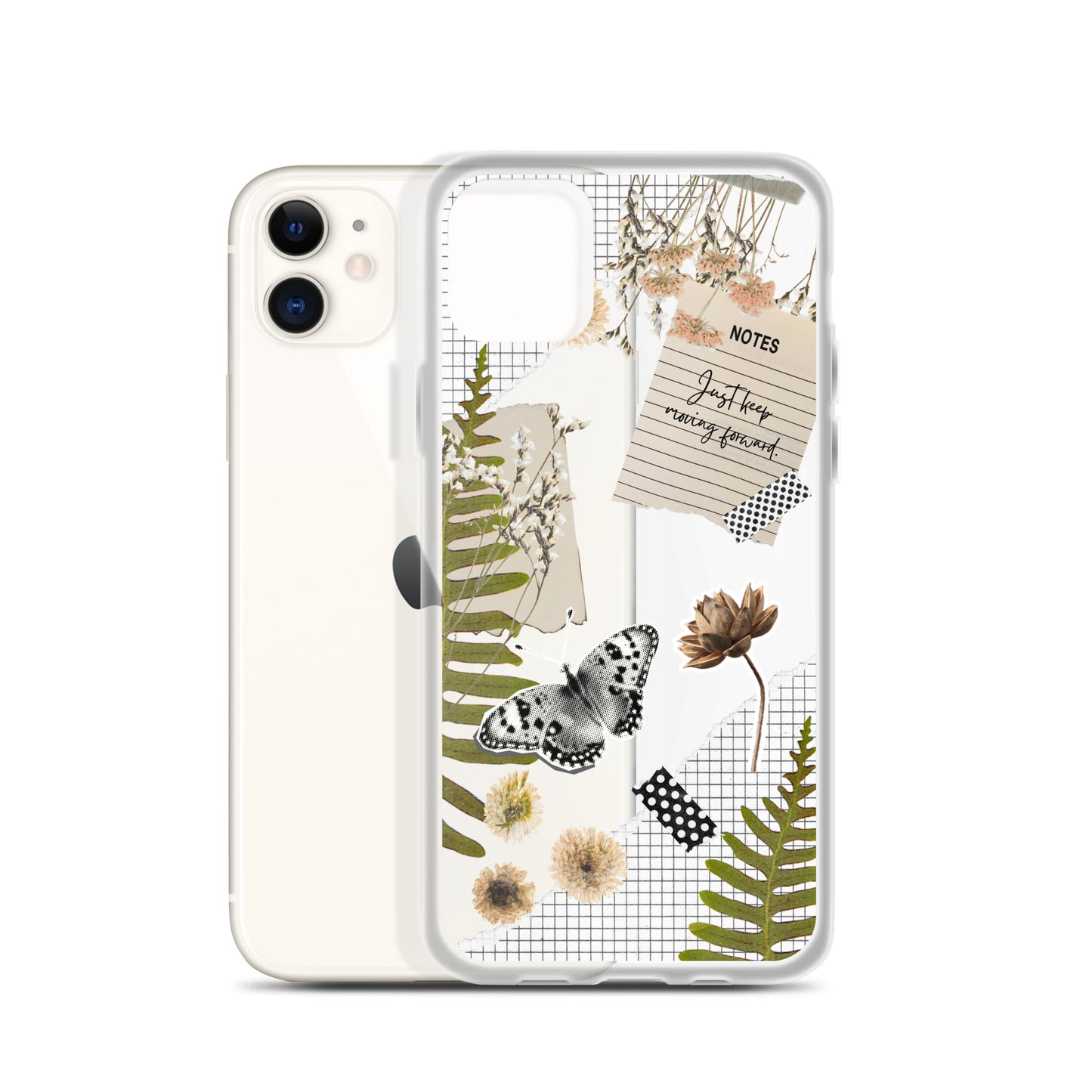 Elevate your phone with this unique case! This clear case features a nature-inspired collage design.