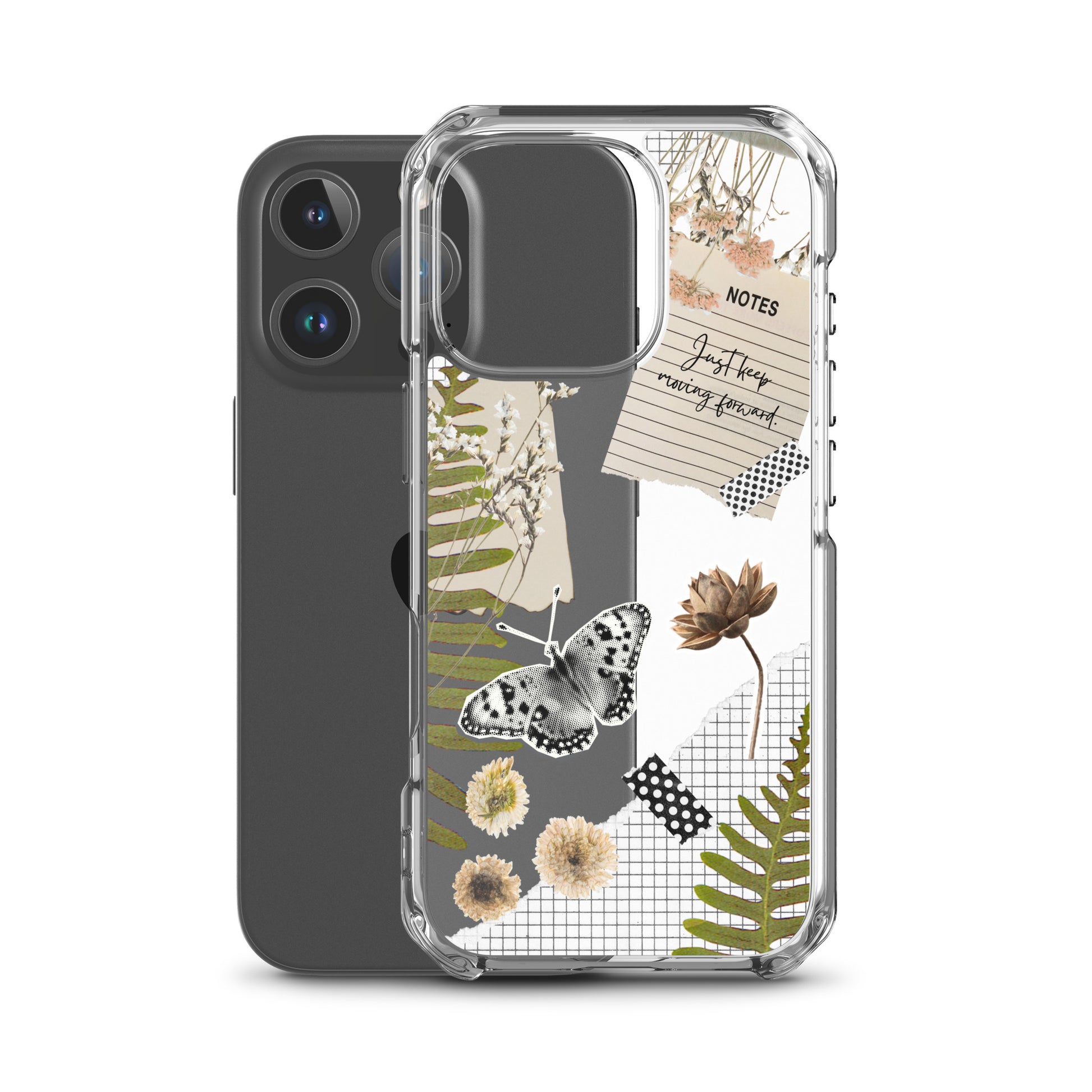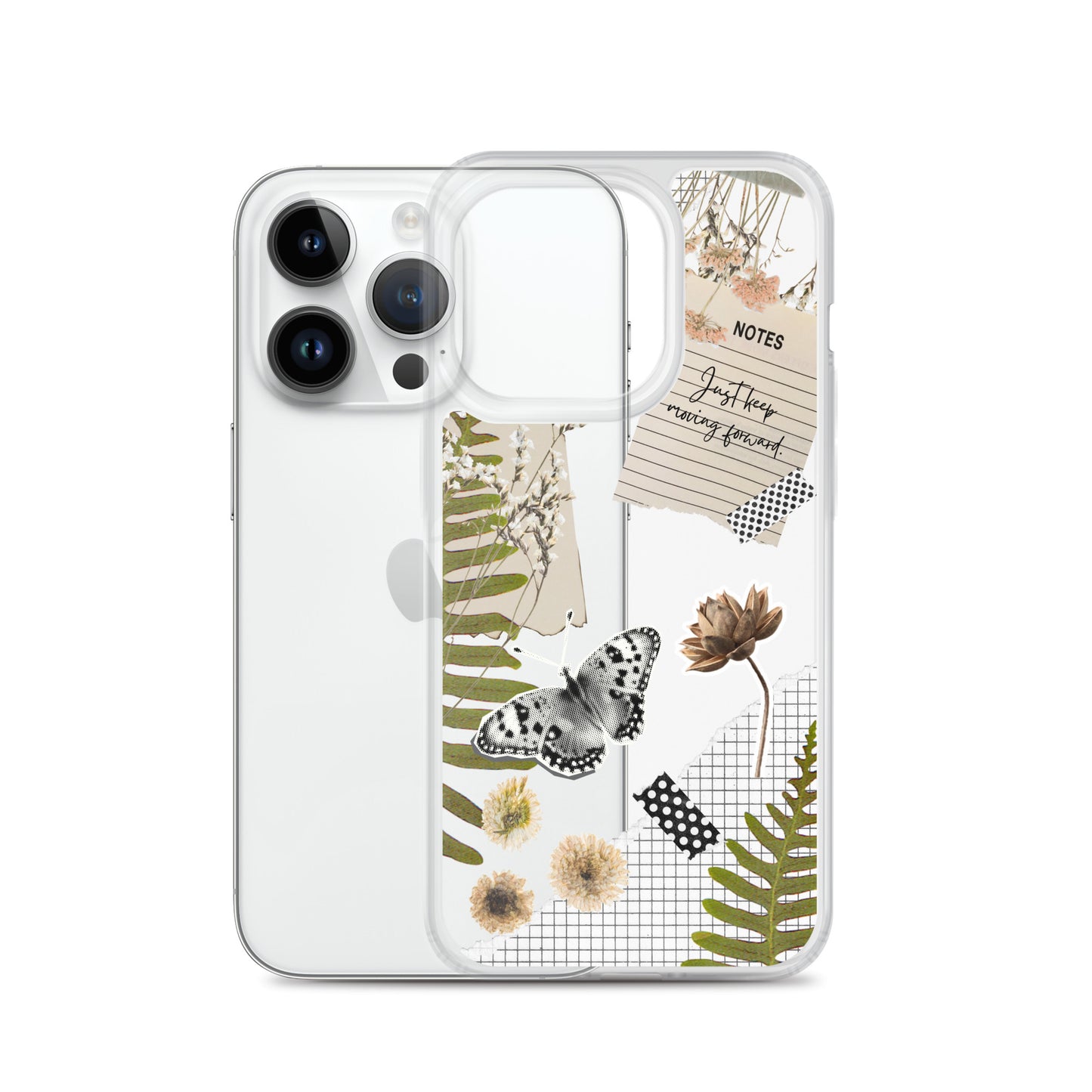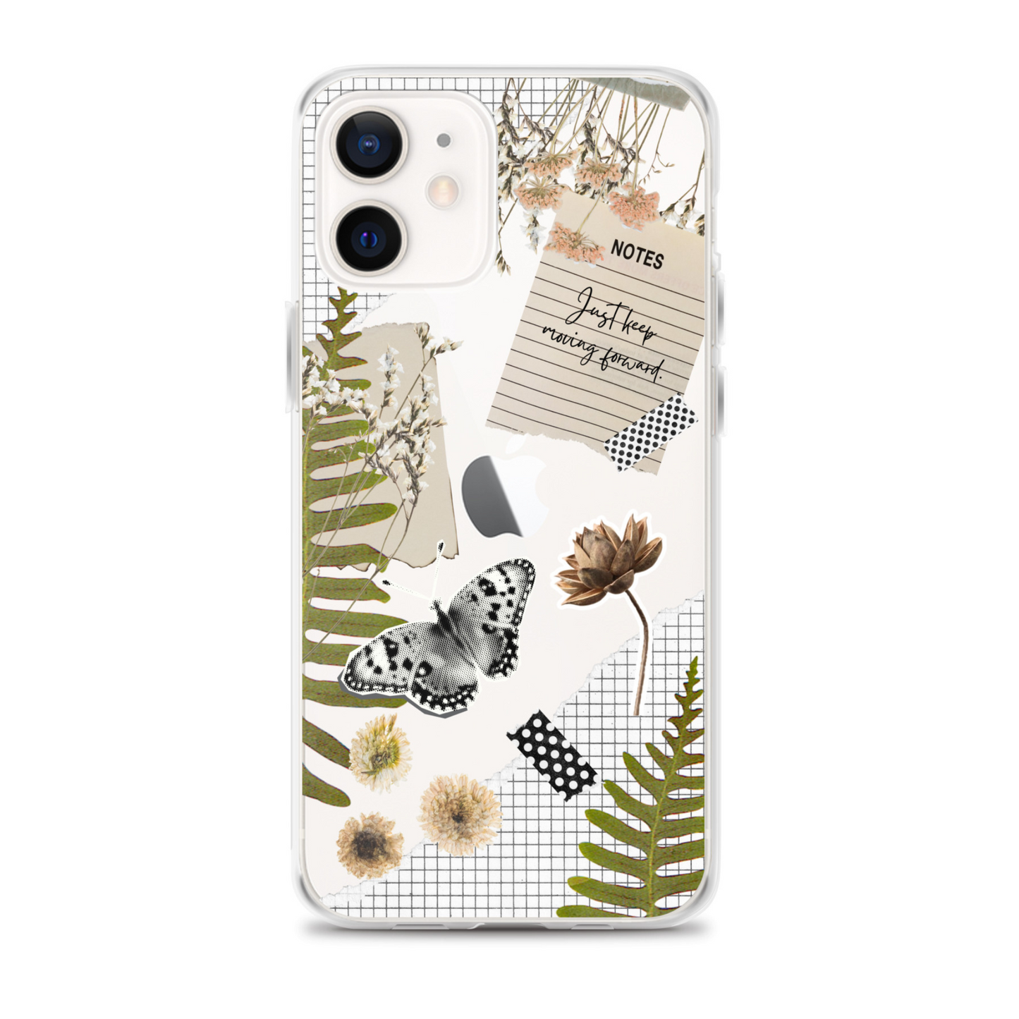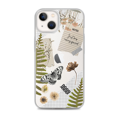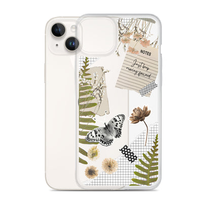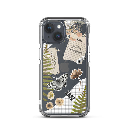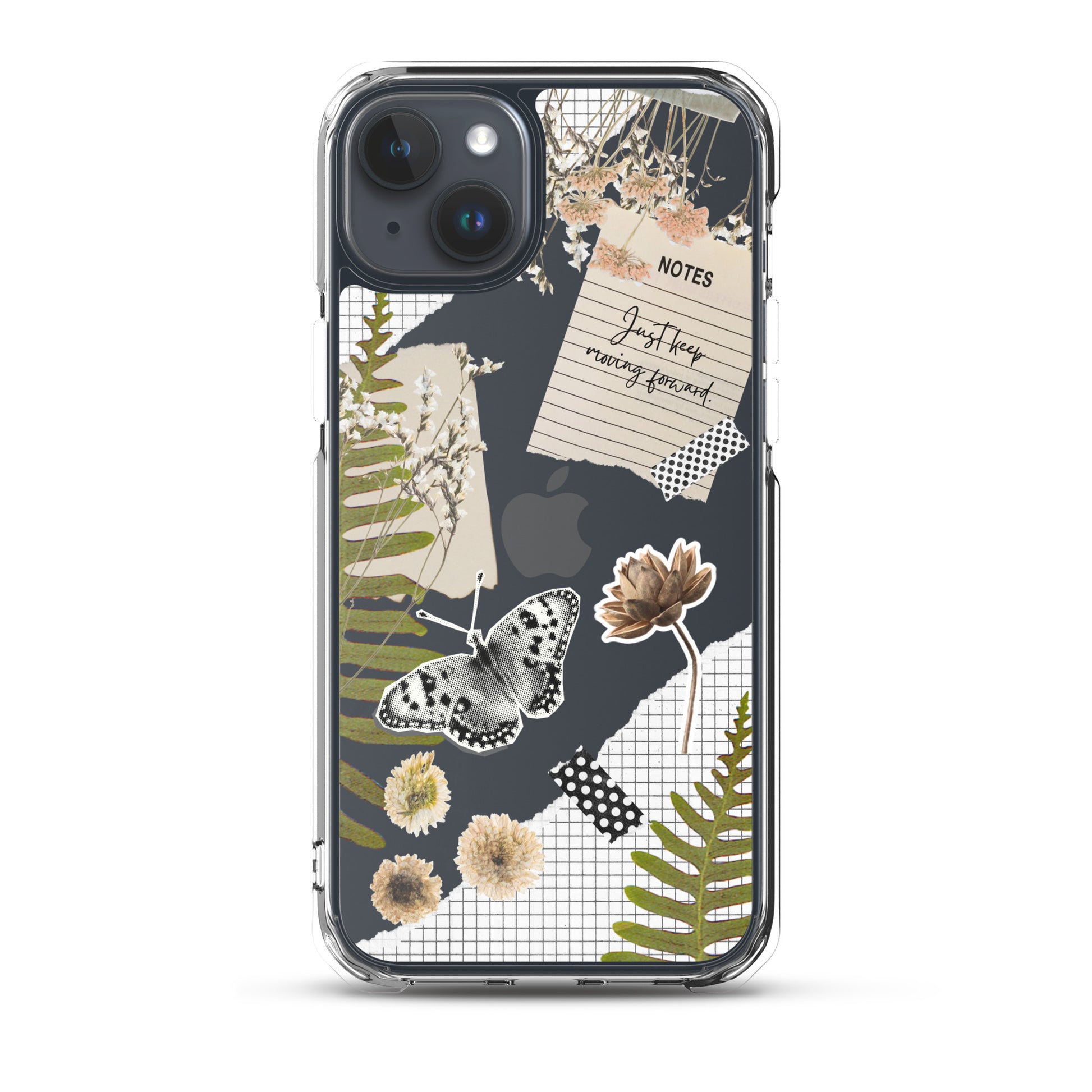 Elevate your phone with this unique case! This clear case features a nature-inspired collage design.
