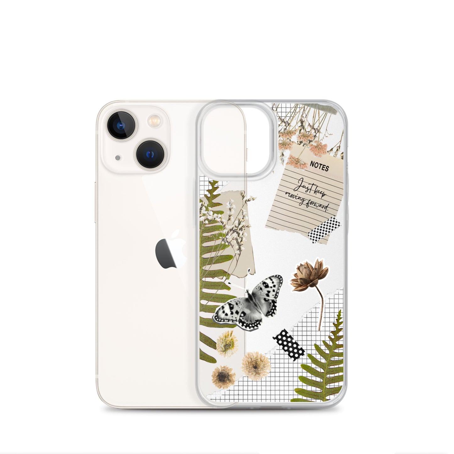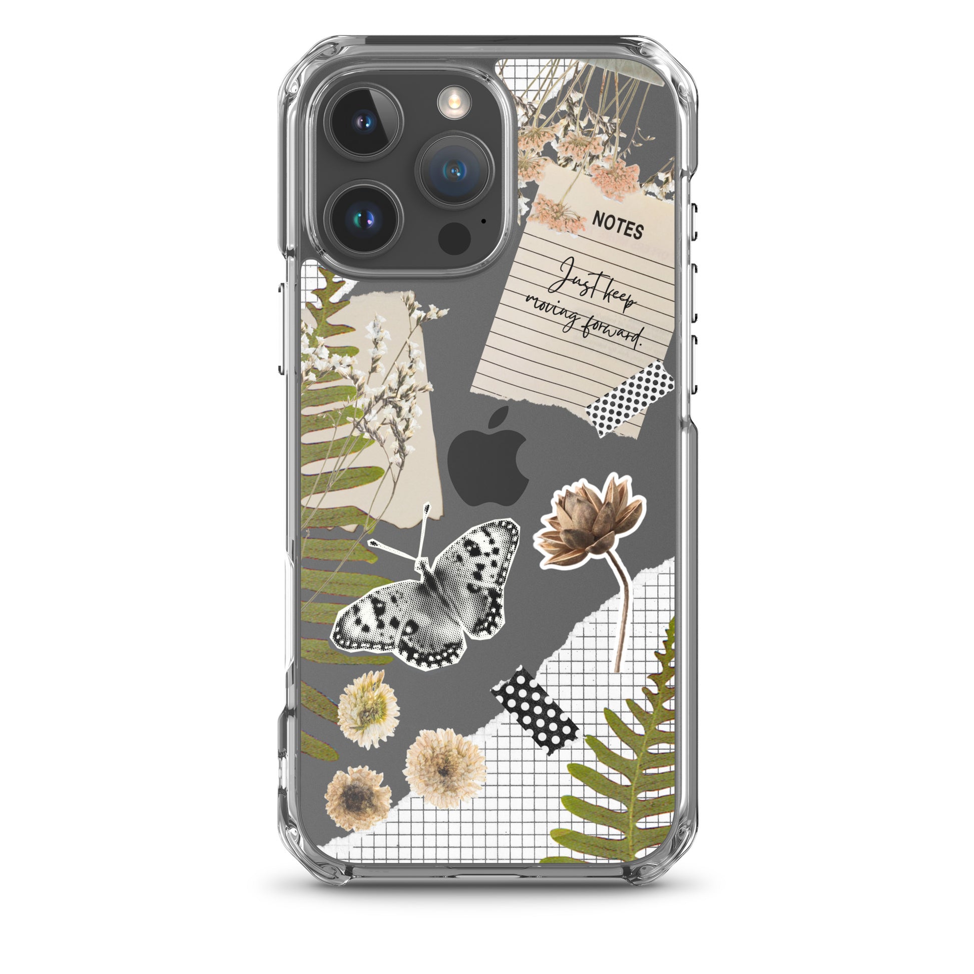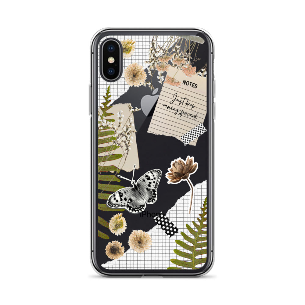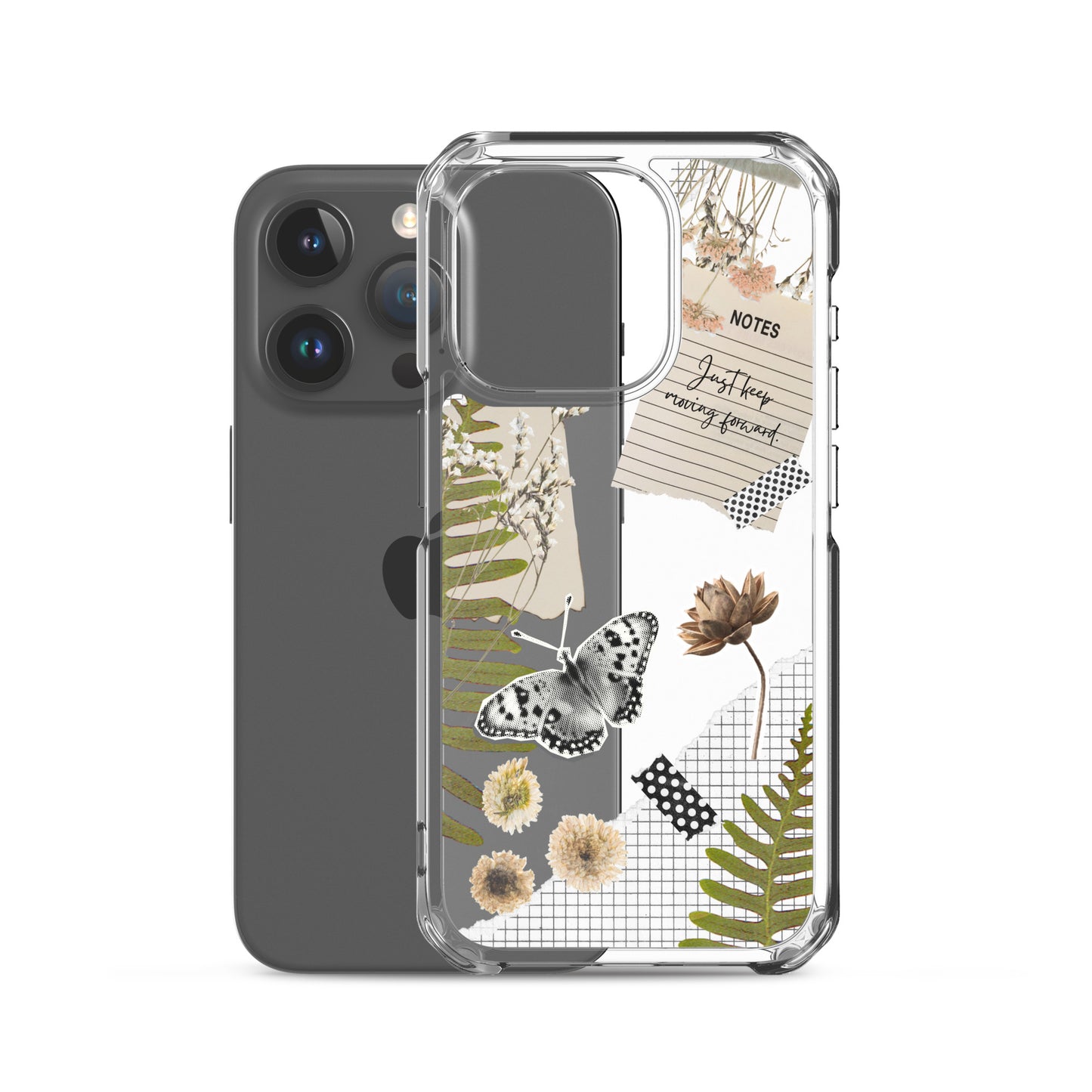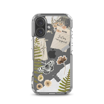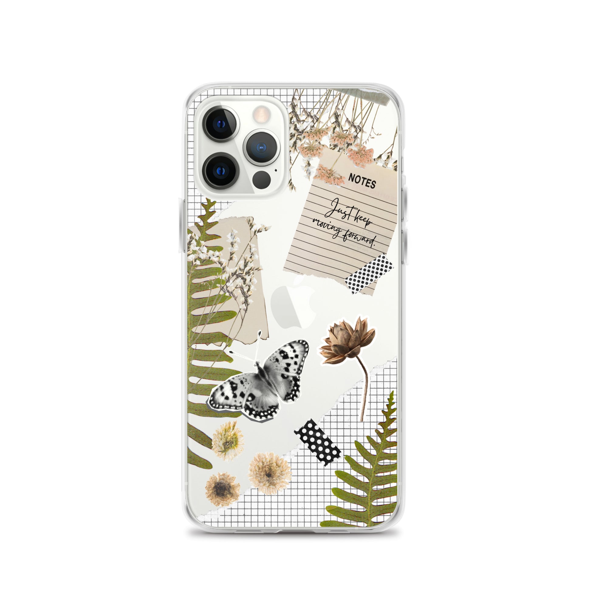 Elevate your phone with this unique case! This clear case features a nature-inspired collage design.