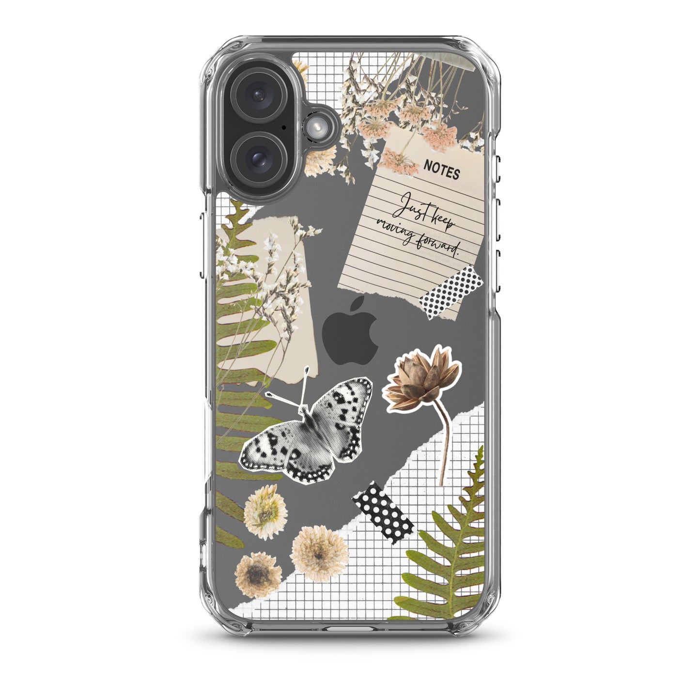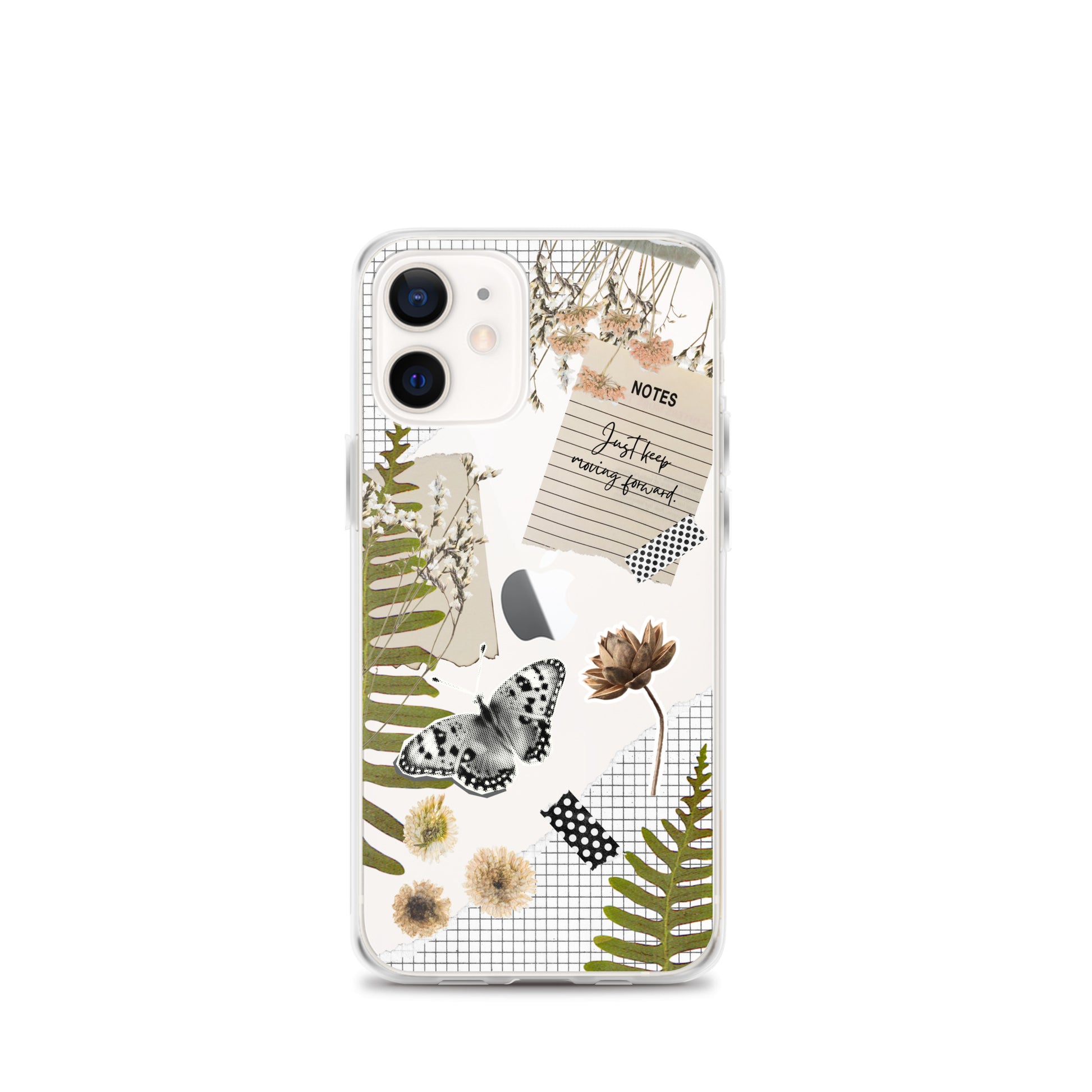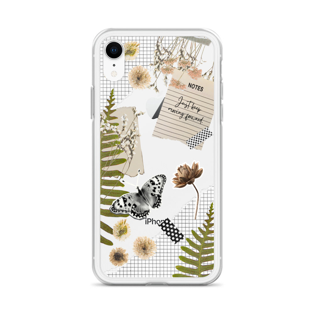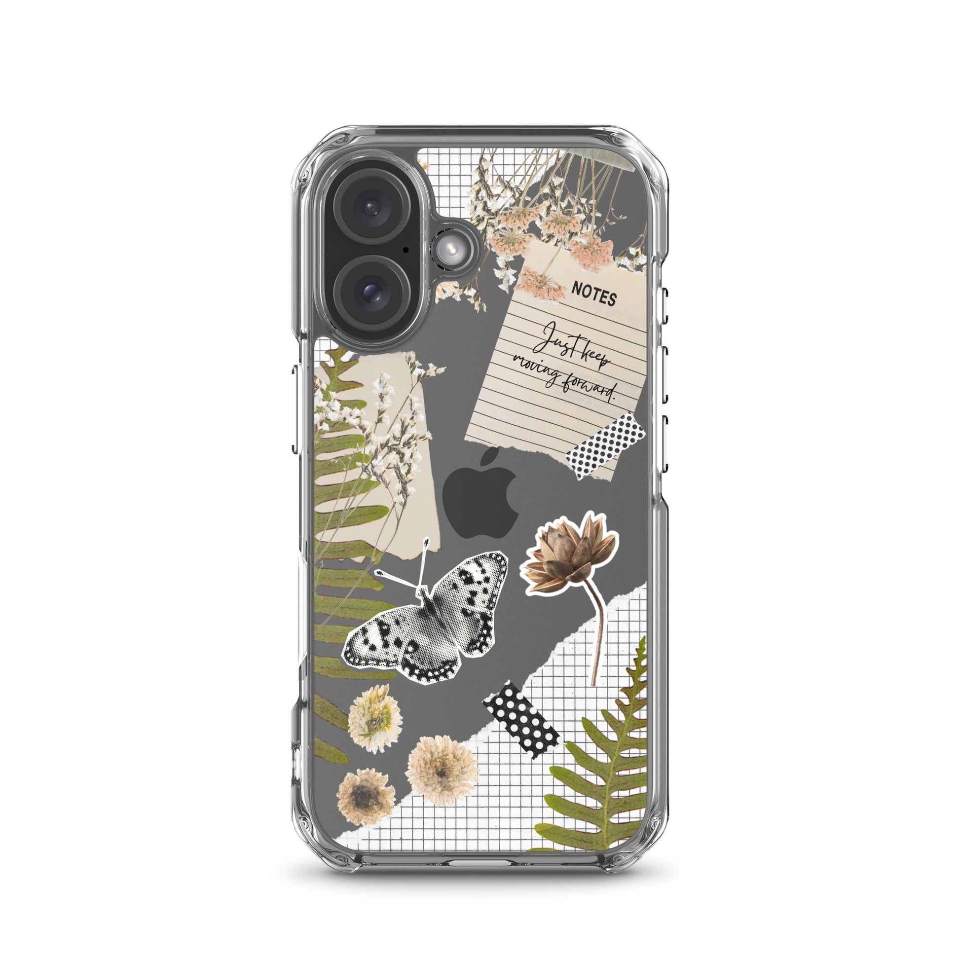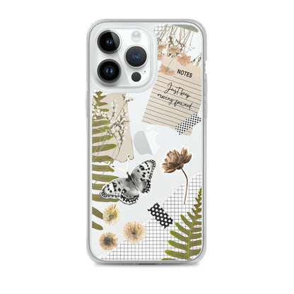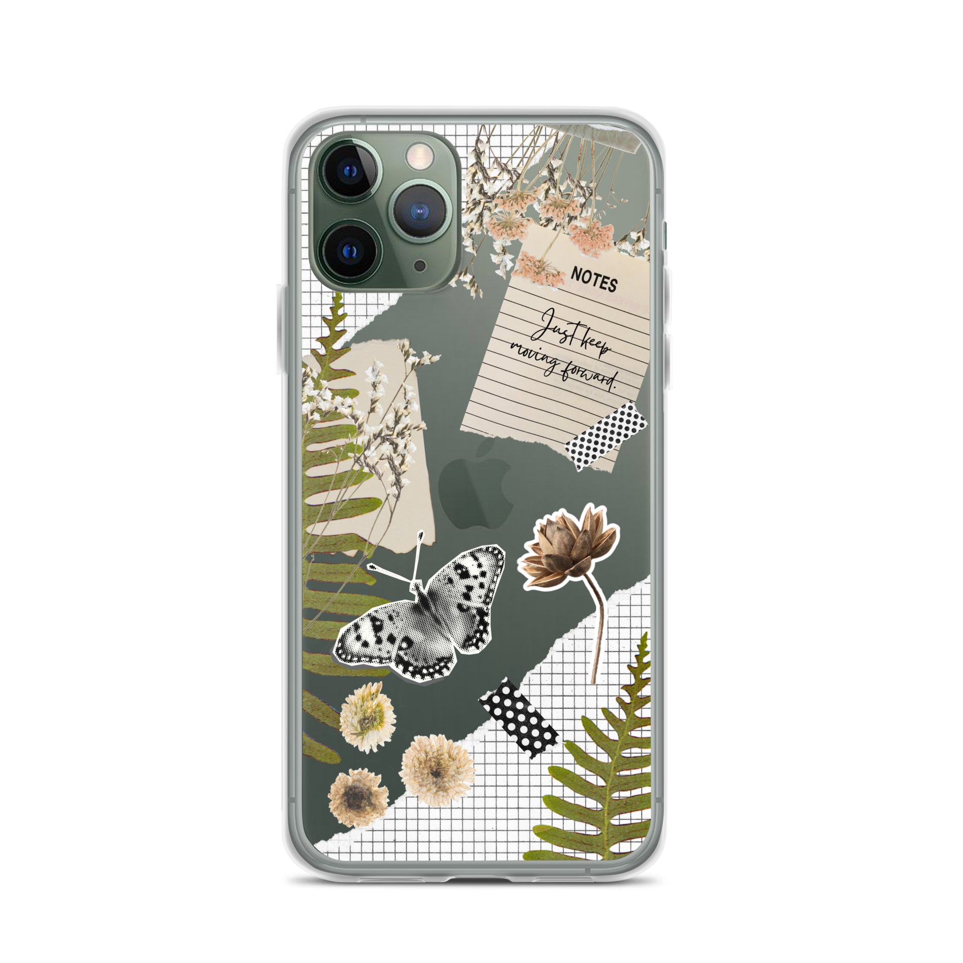 Elevate your phone with this unique case! This clear case features a nature-inspired collage design.