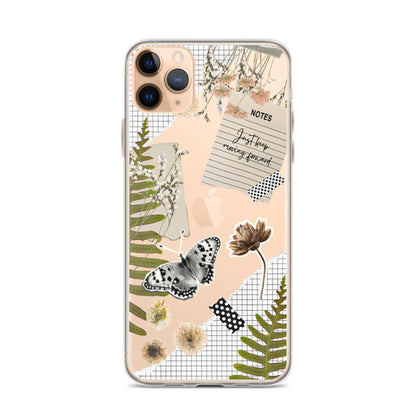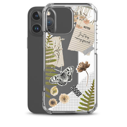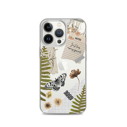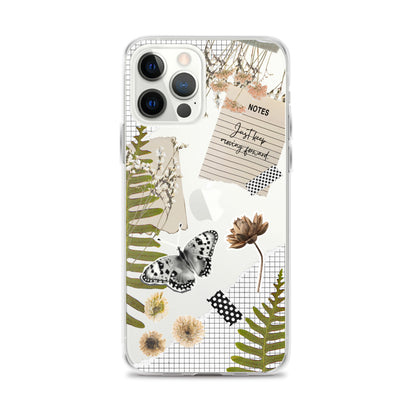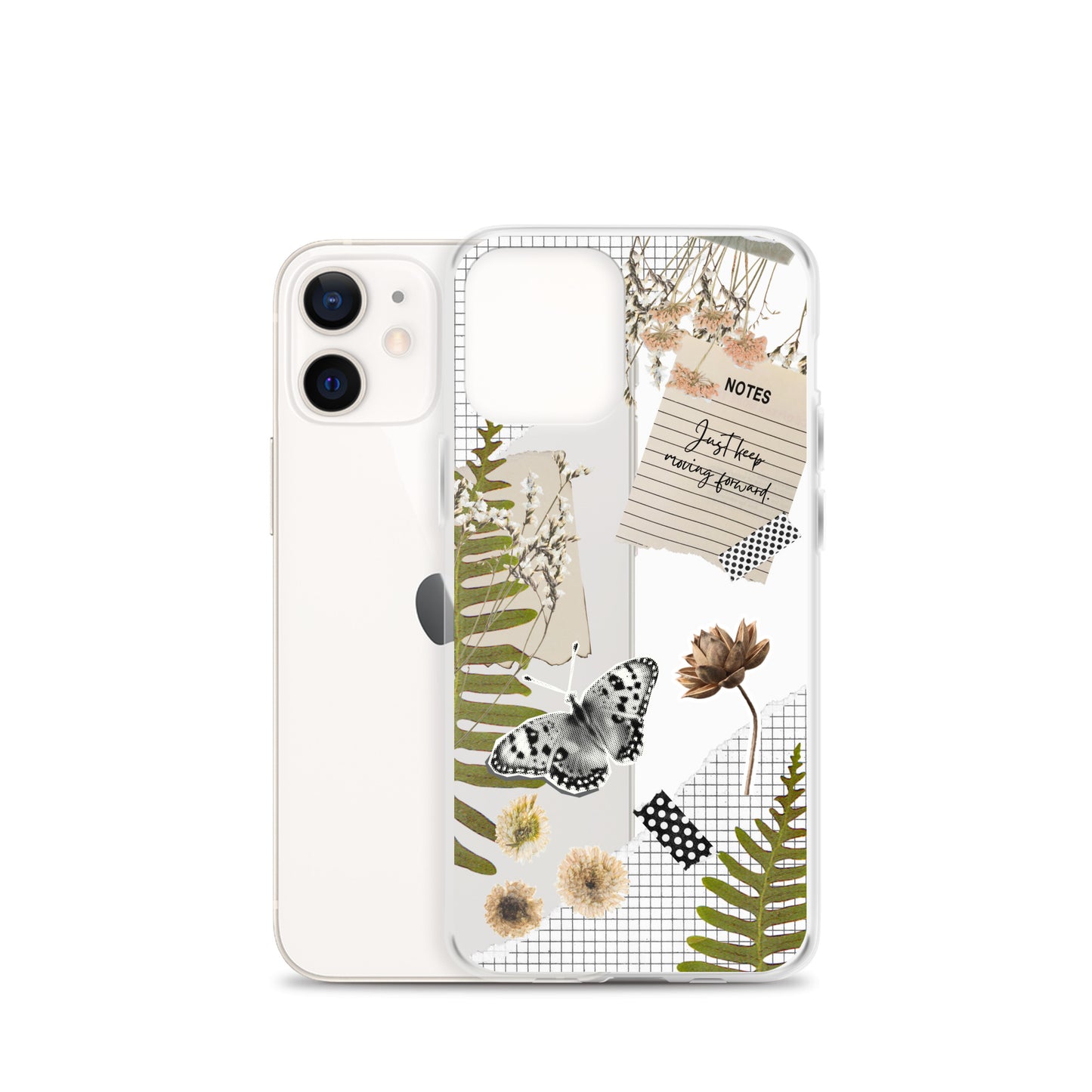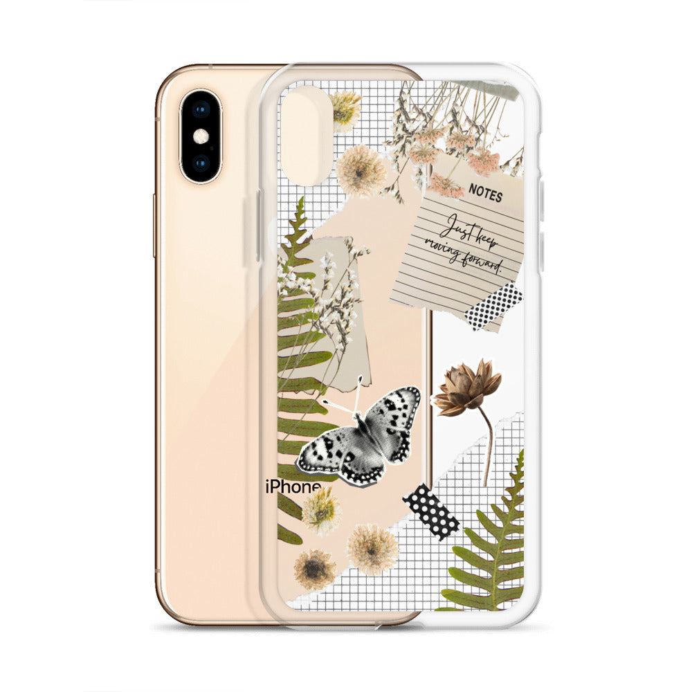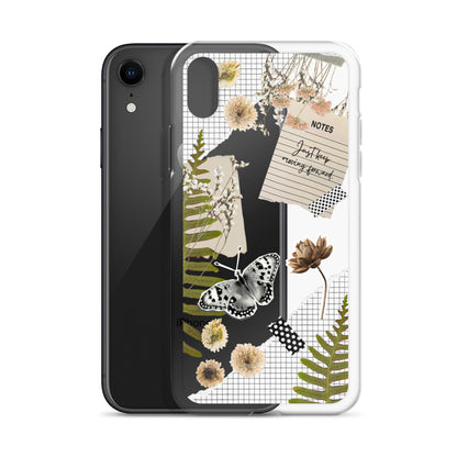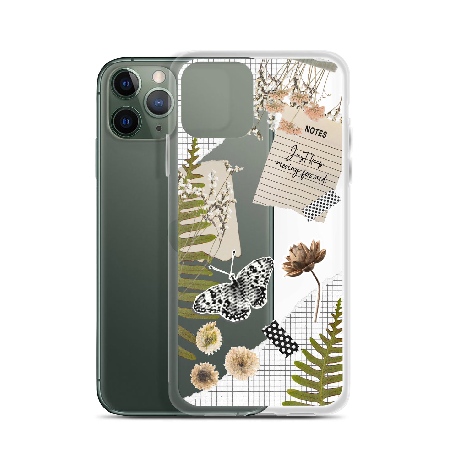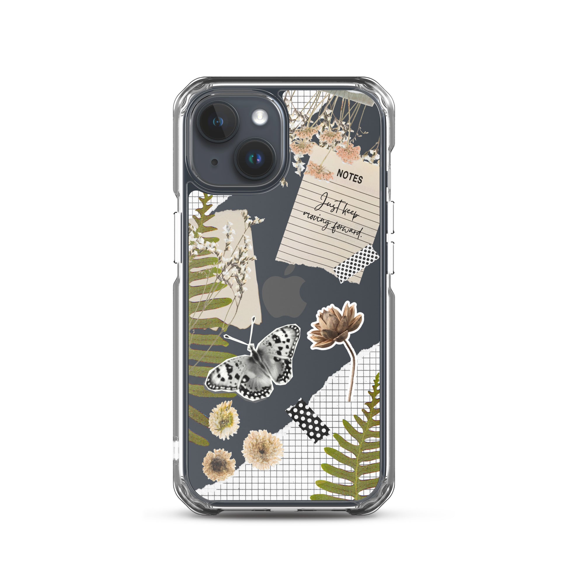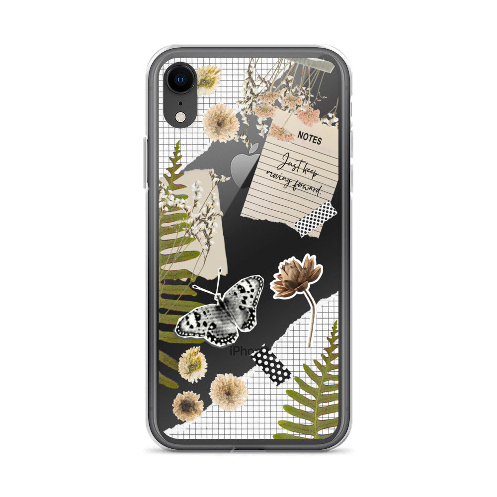 Elevate your phone with this unique case! This clear case features a nature-inspired collage design.