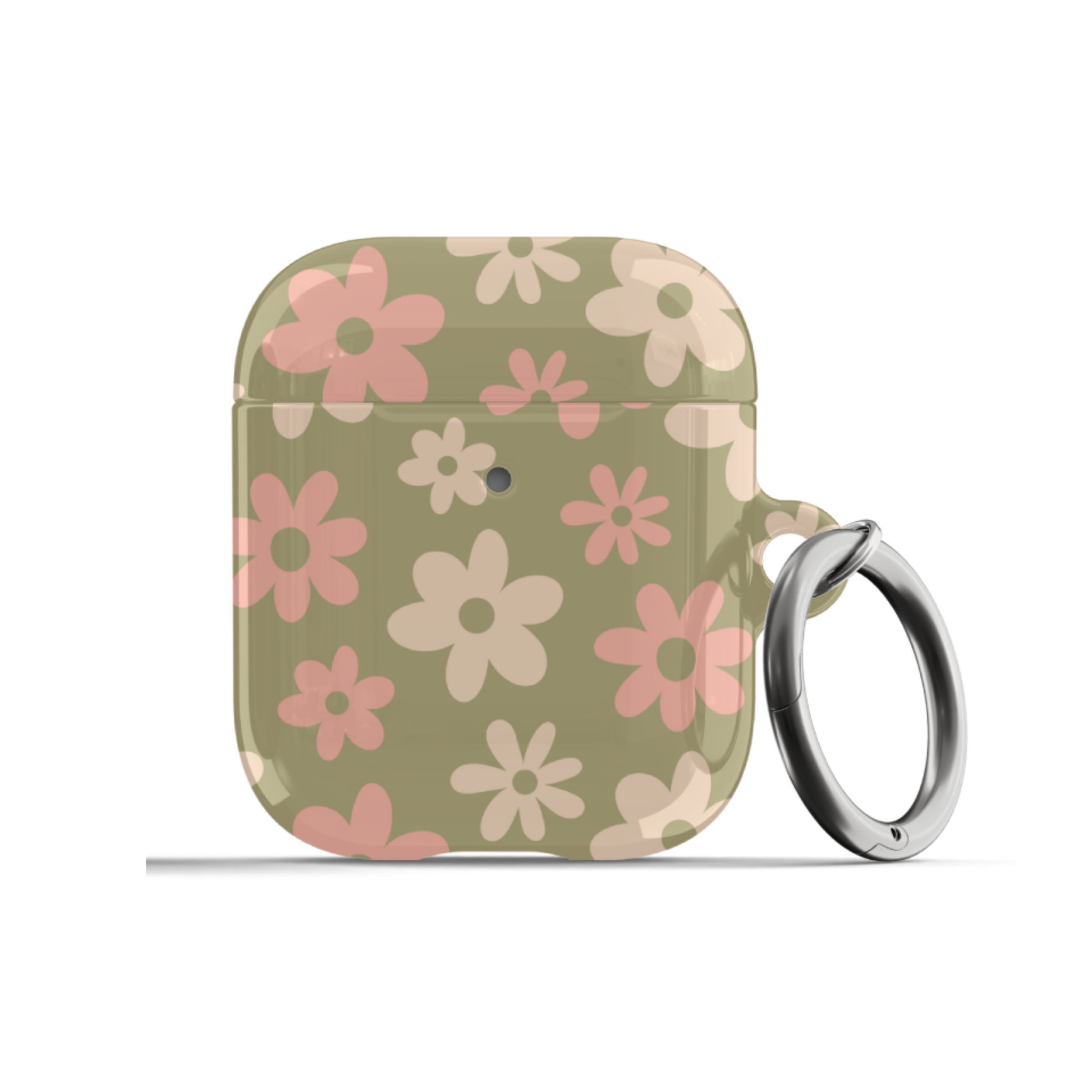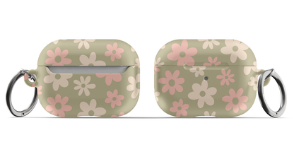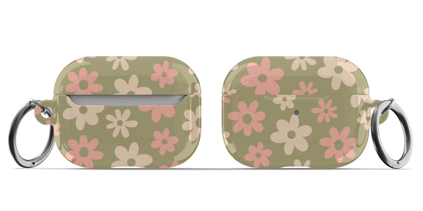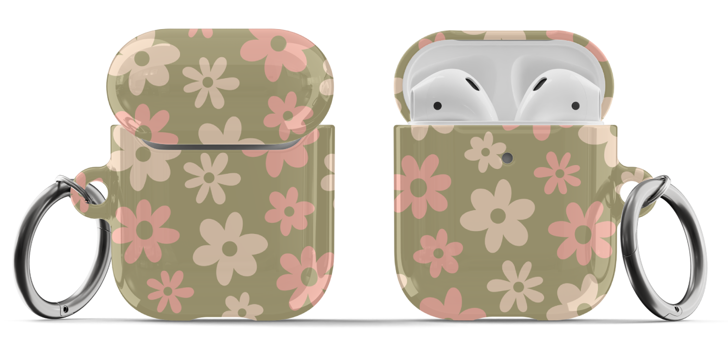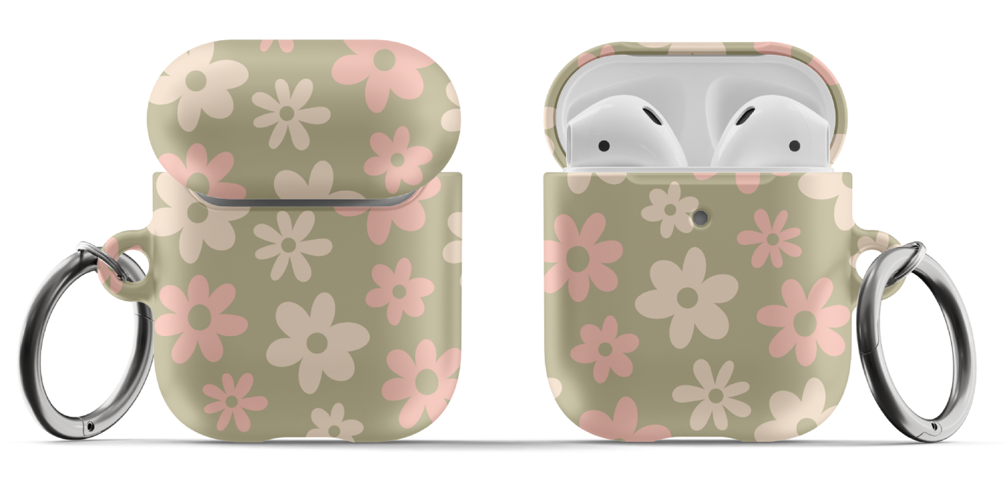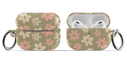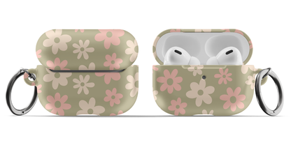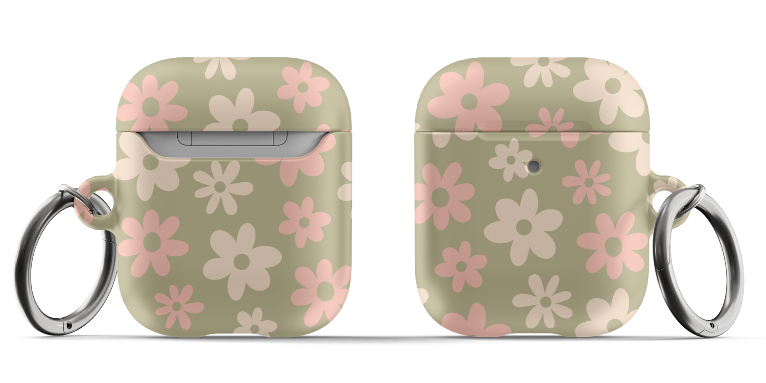 Protect your AirPods with our cute Green Flower Power AirPods Case! This cute AirPods case features pink and beige flowers on a green background.