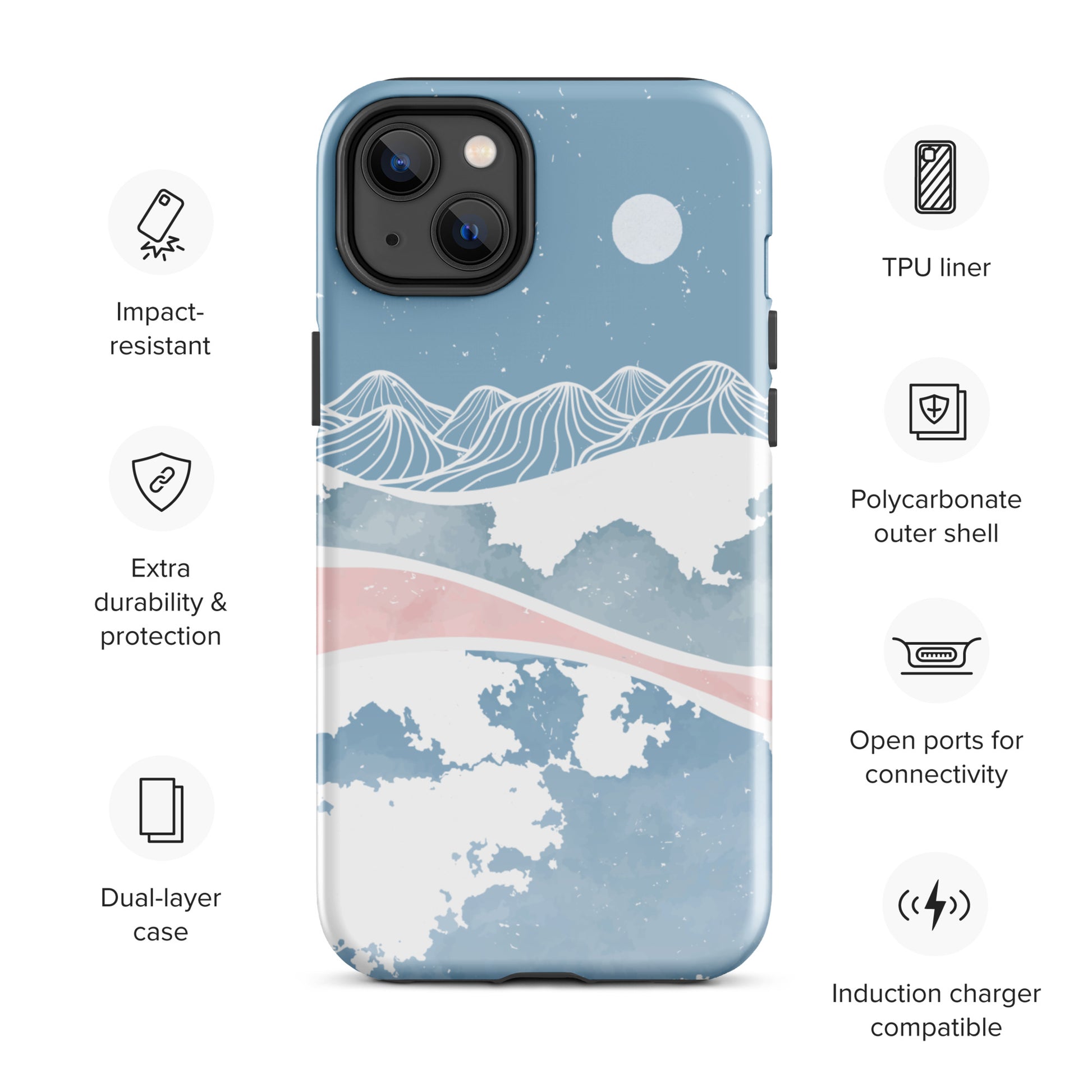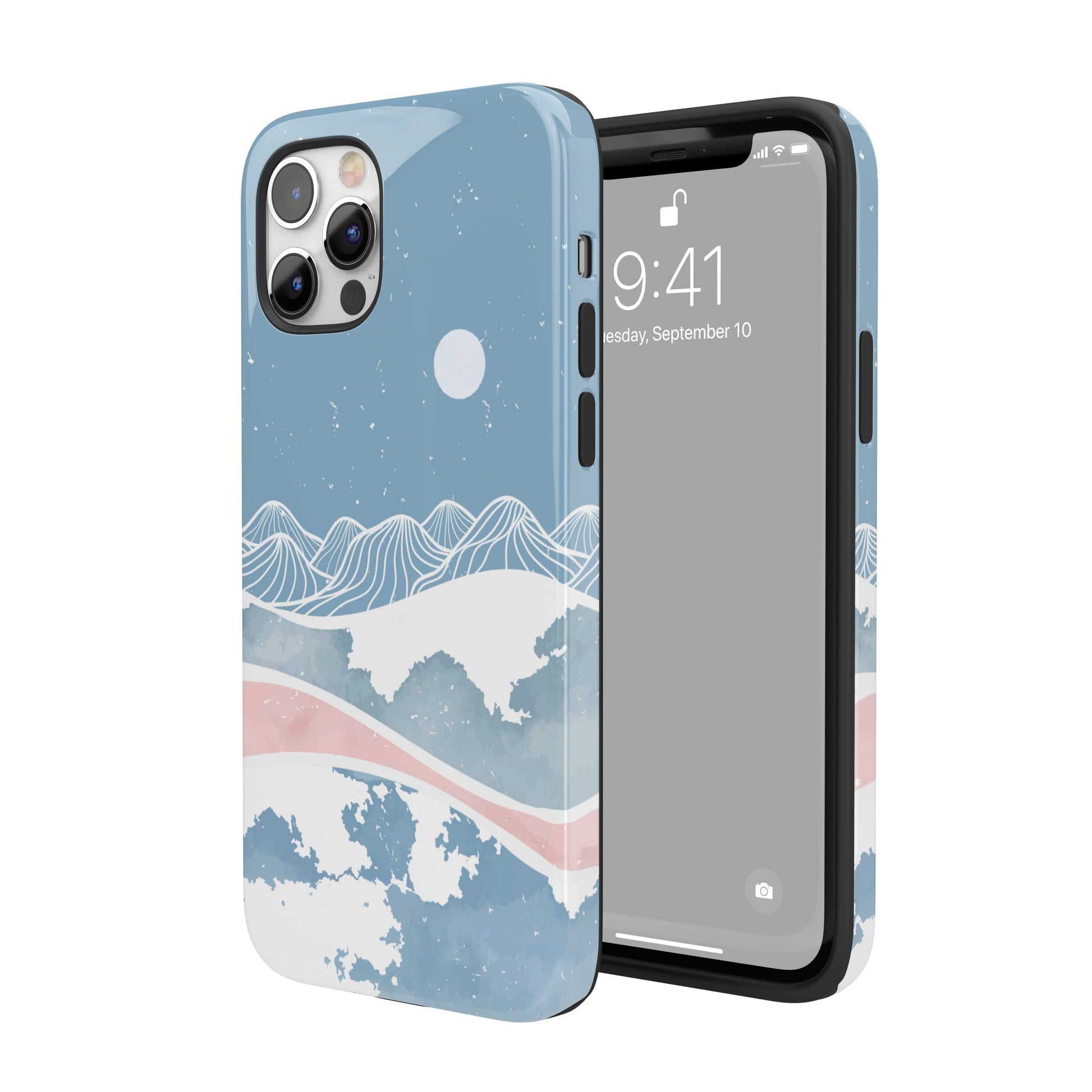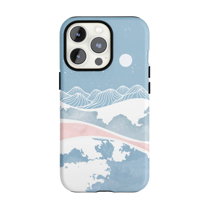 Enjoy a dreamy winter night year-round with this one-of-a-kind case! This case features a light blue illustration of snow-covered mountains.