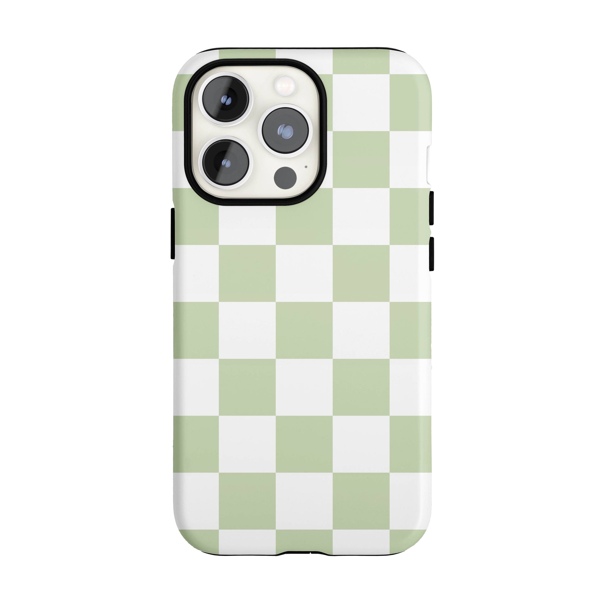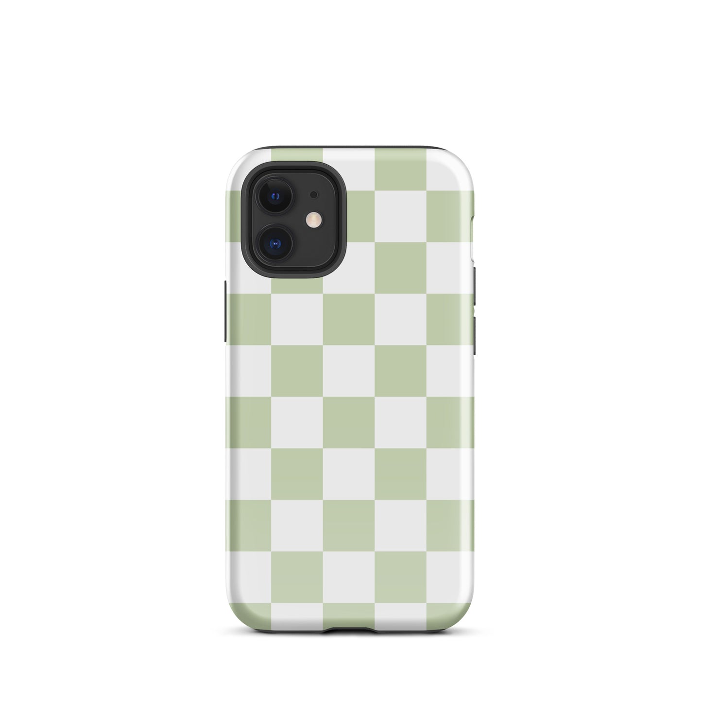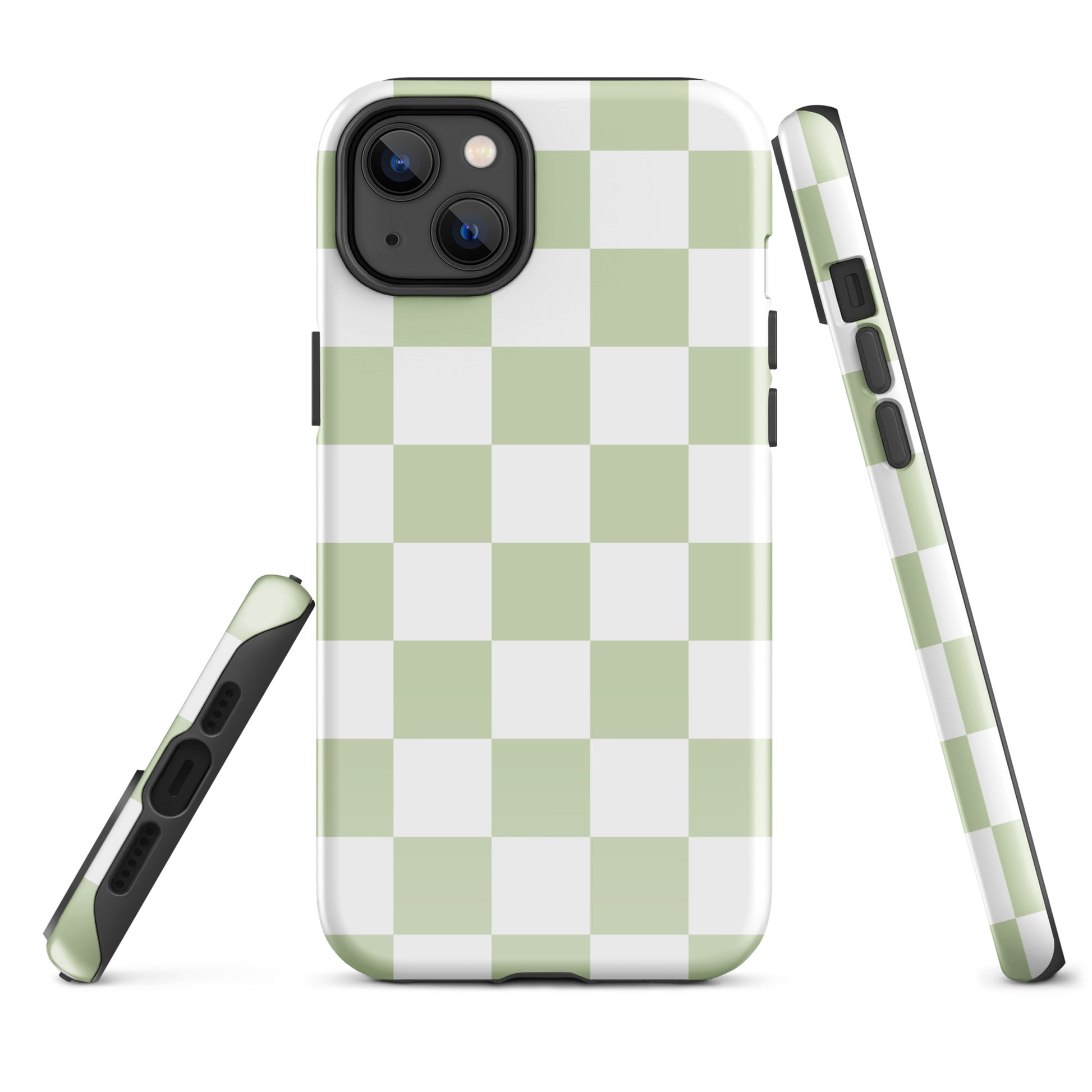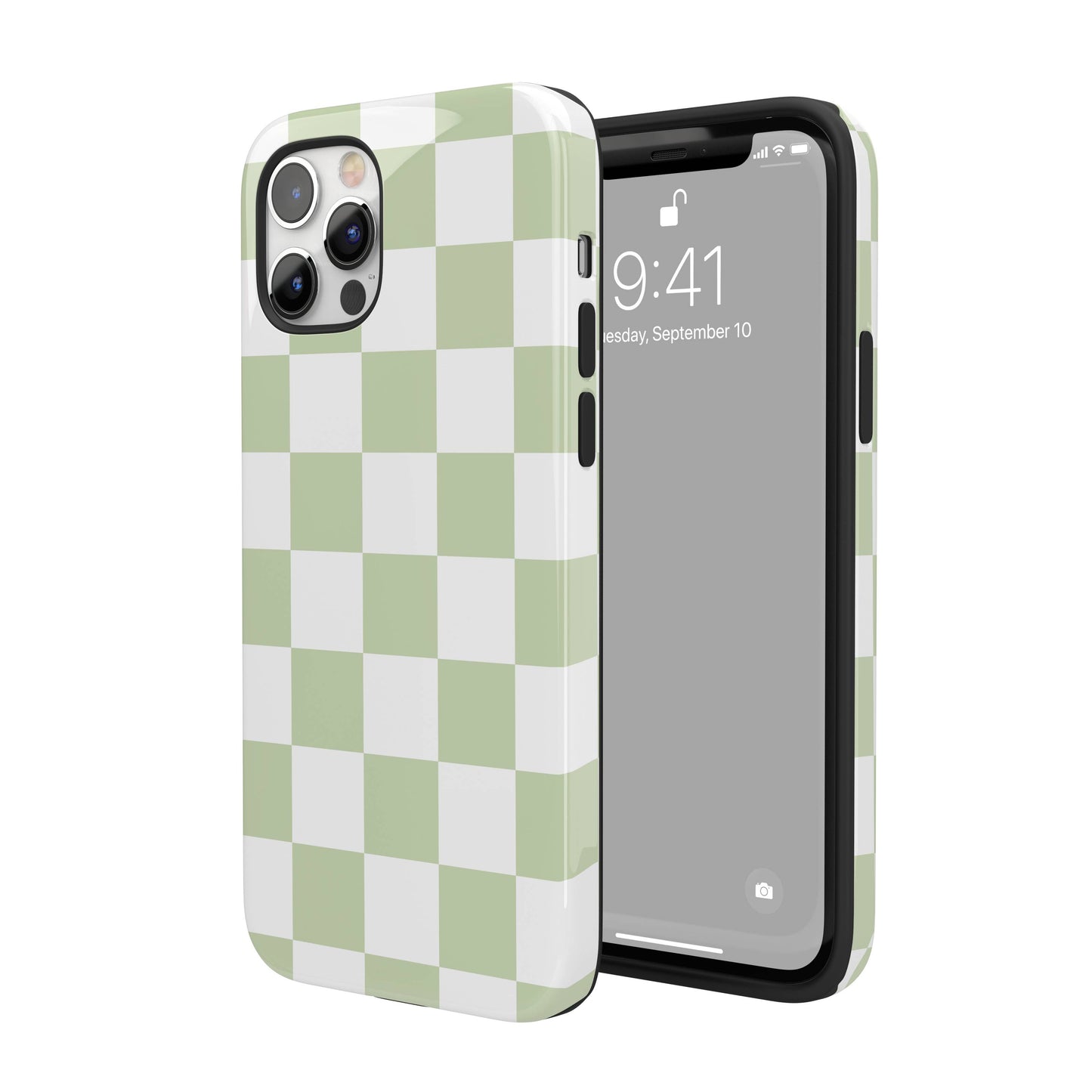 Say hello to our Pastel Green Checkered iPhone Case! This cute case features a pastel green and white checkered design.