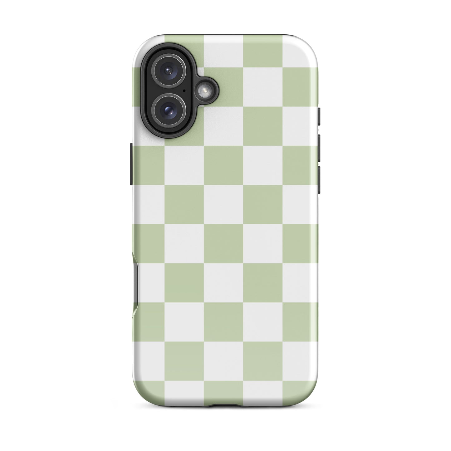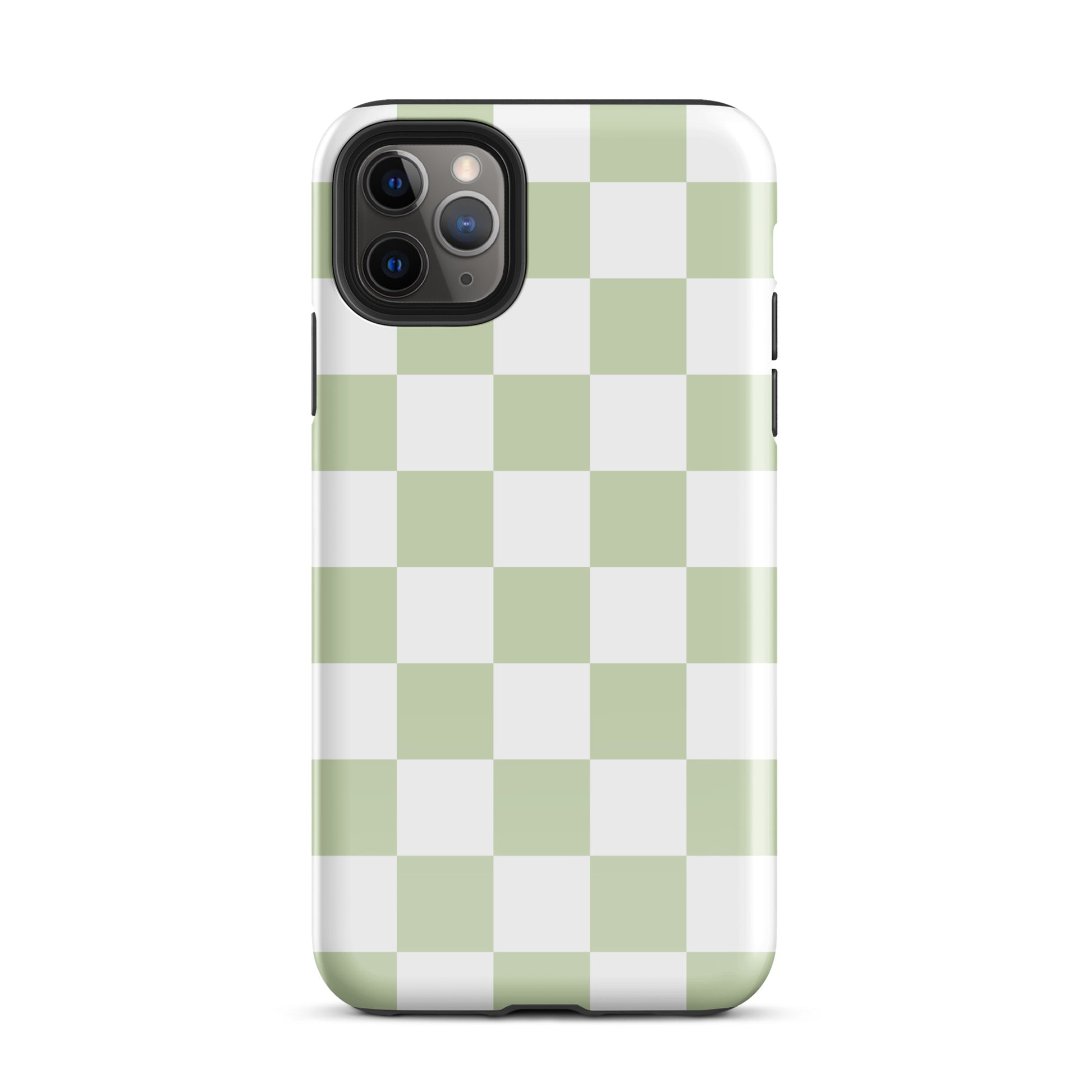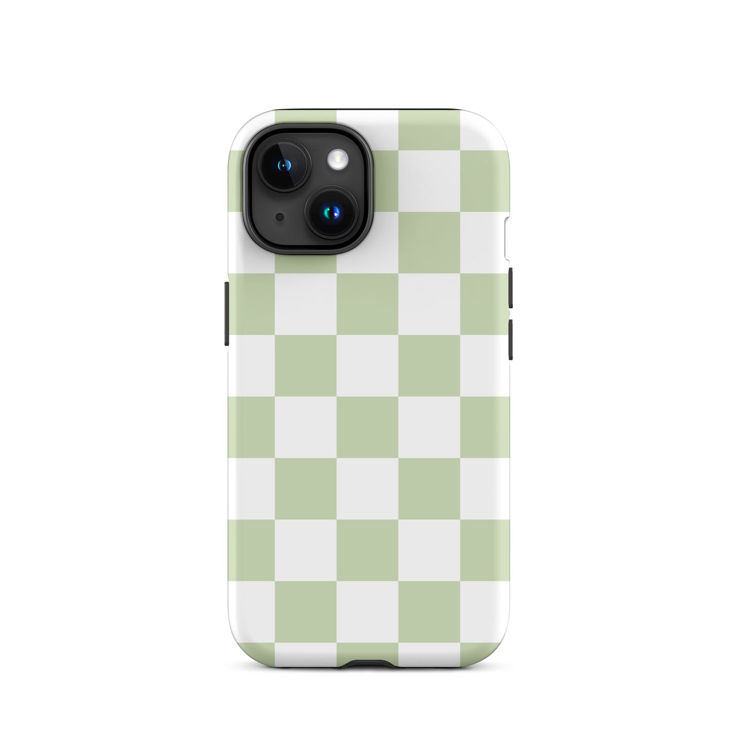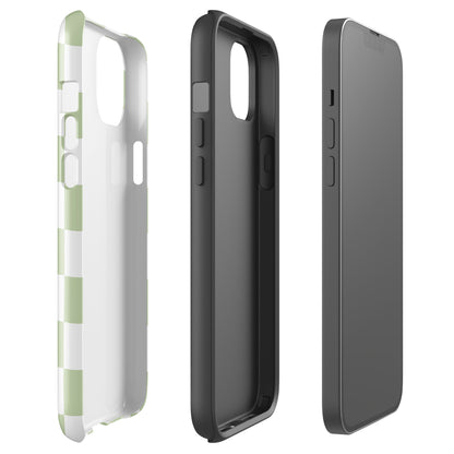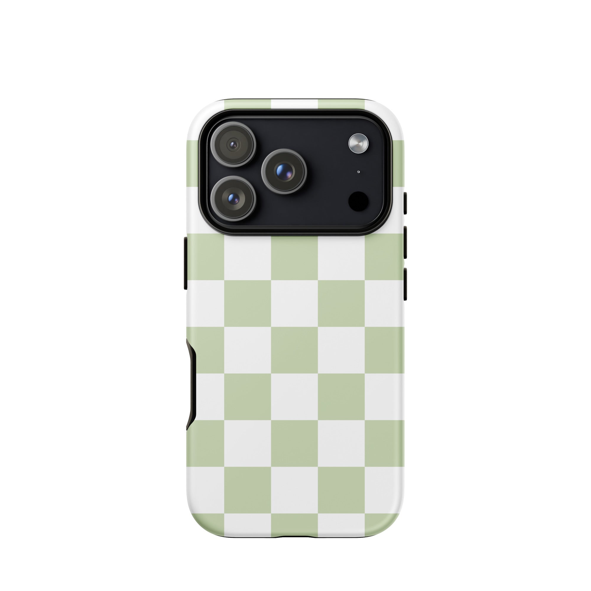 Say hello to our Pastel Green Checkered iPhone Case! This cute case features a pastel green and white checkered design.