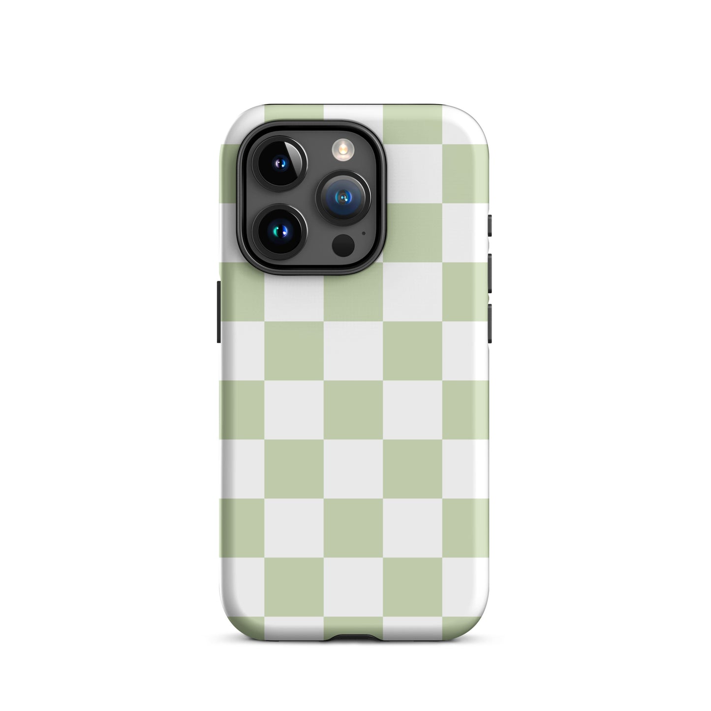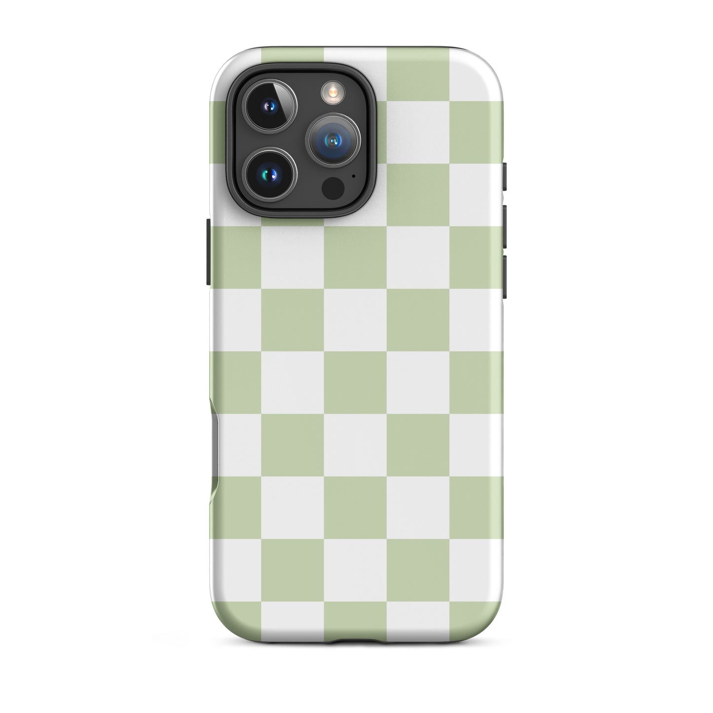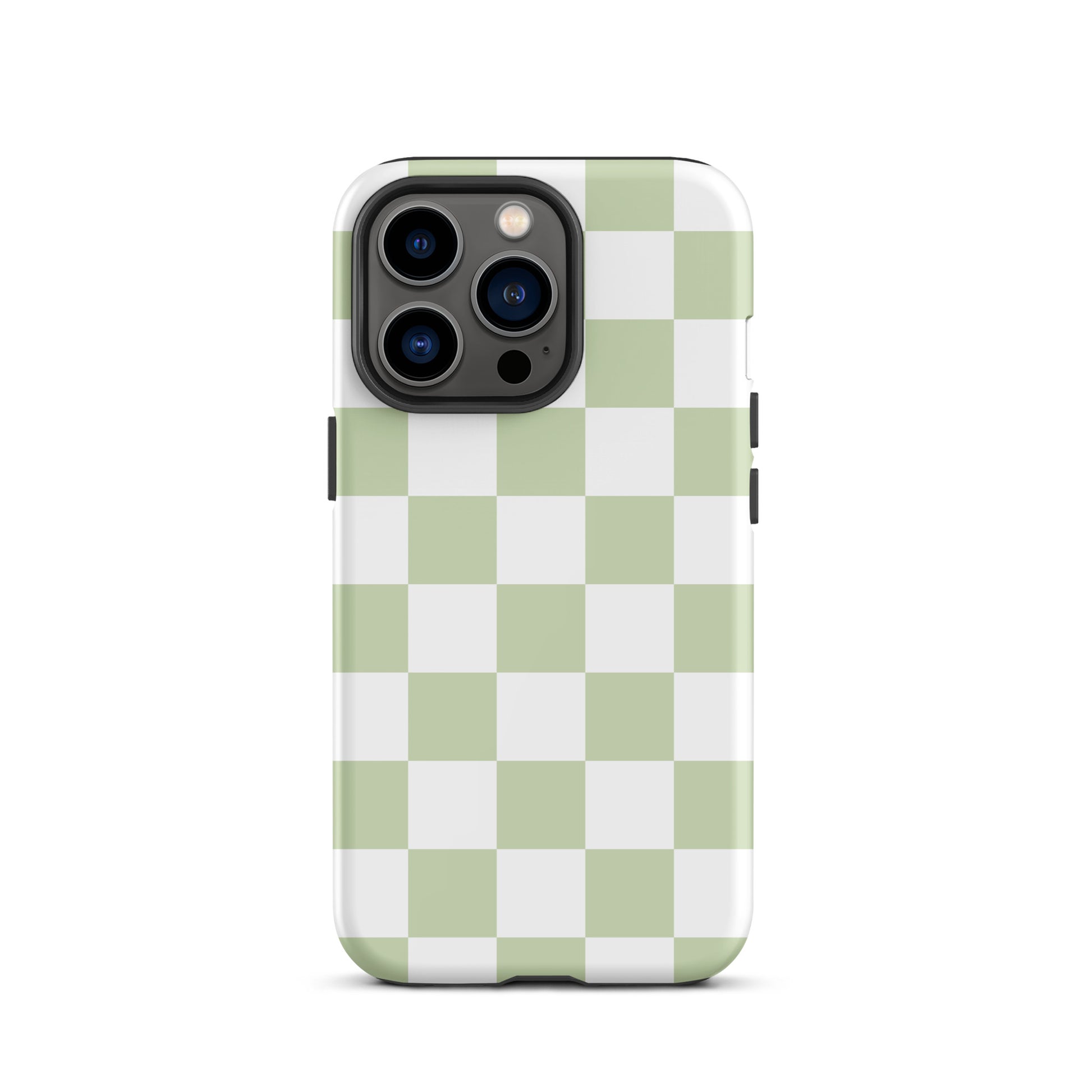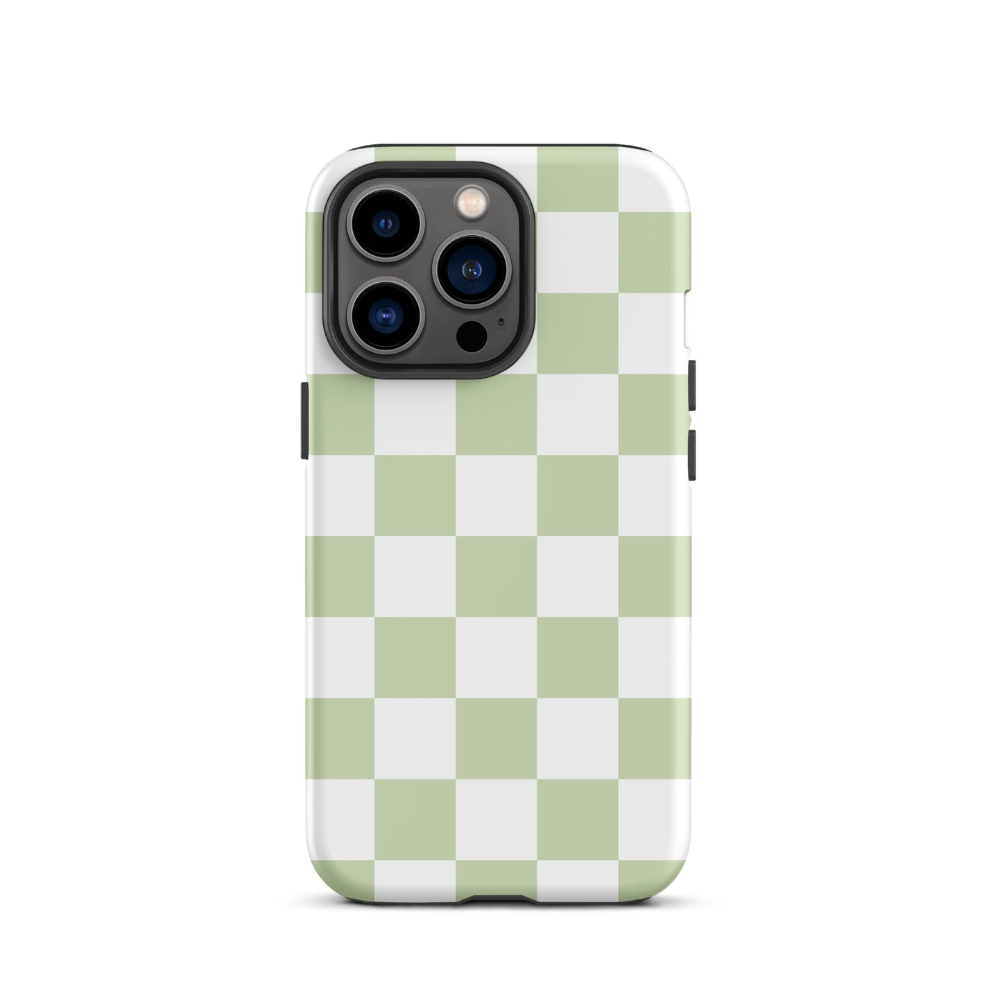 Say hello to our Pastel Green Checkered iPhone Case! This cute case features a pastel green and white checkered design.
