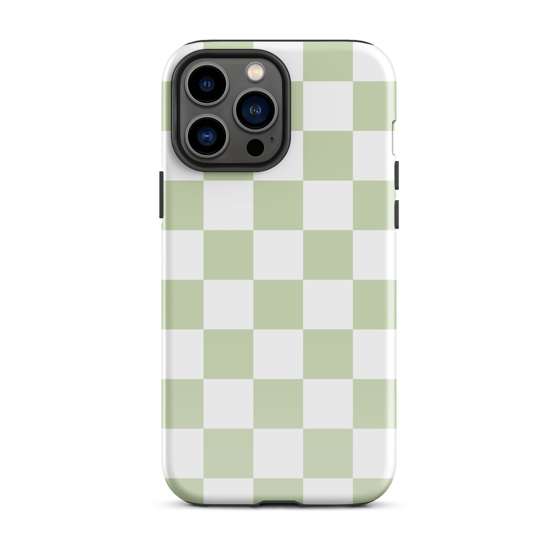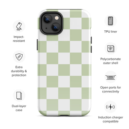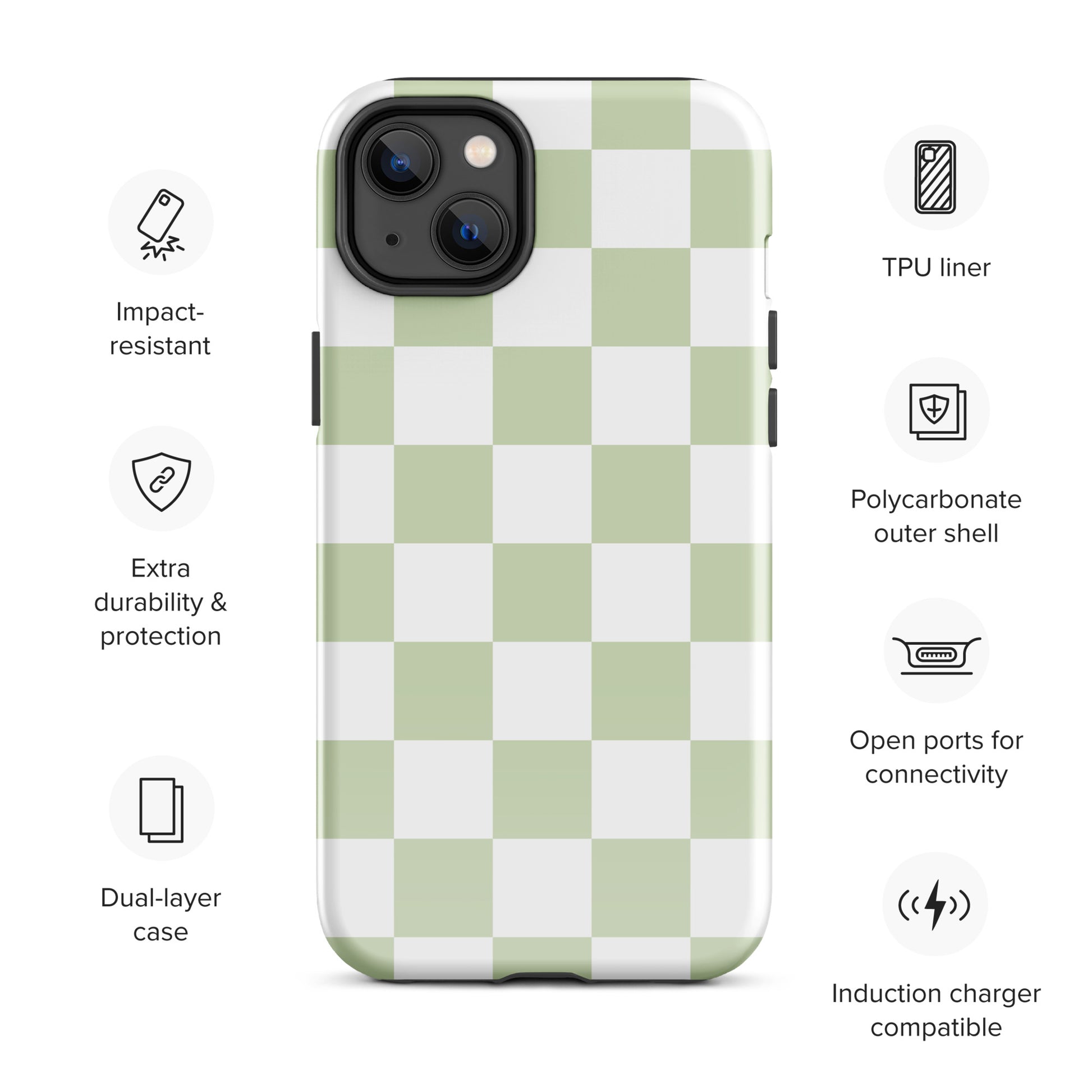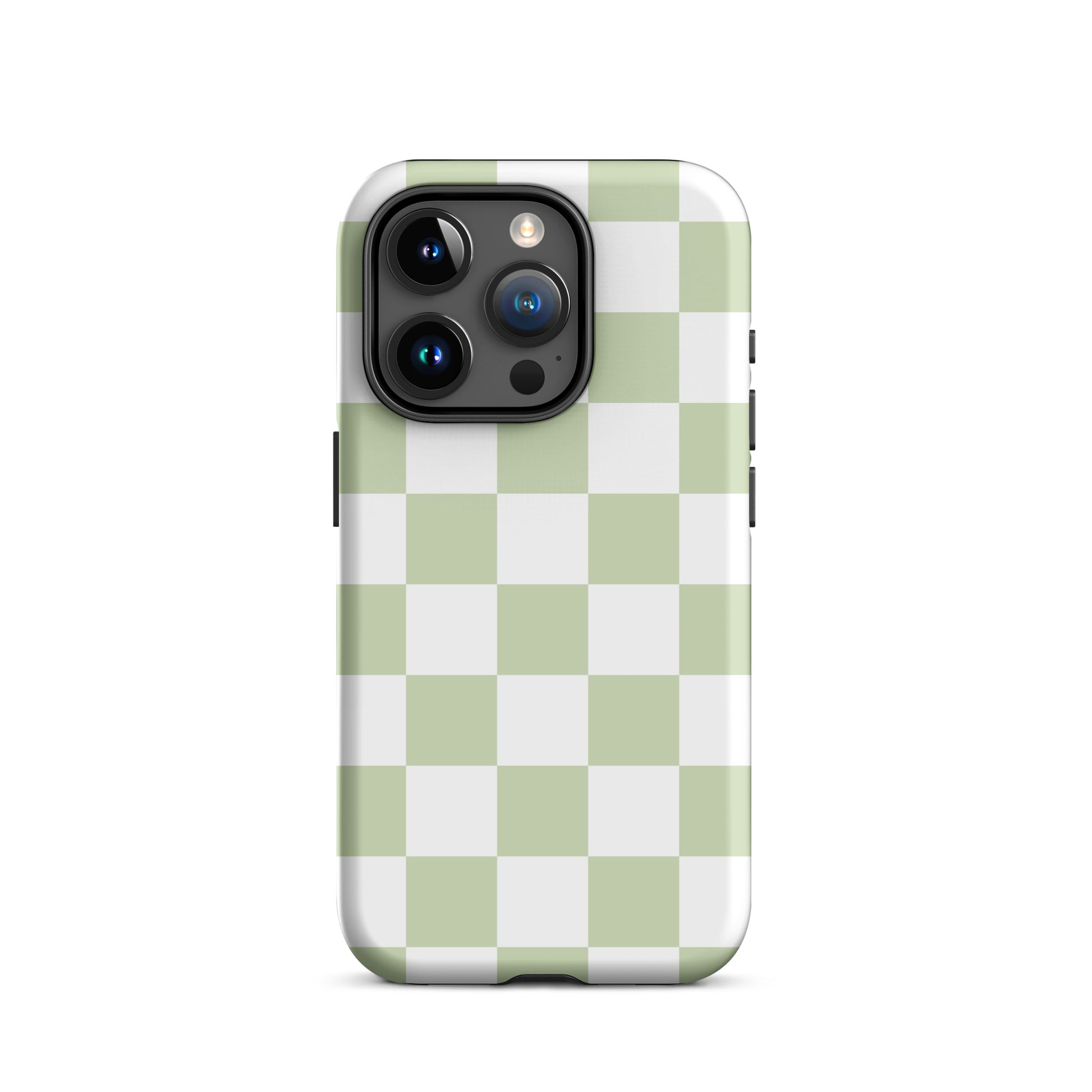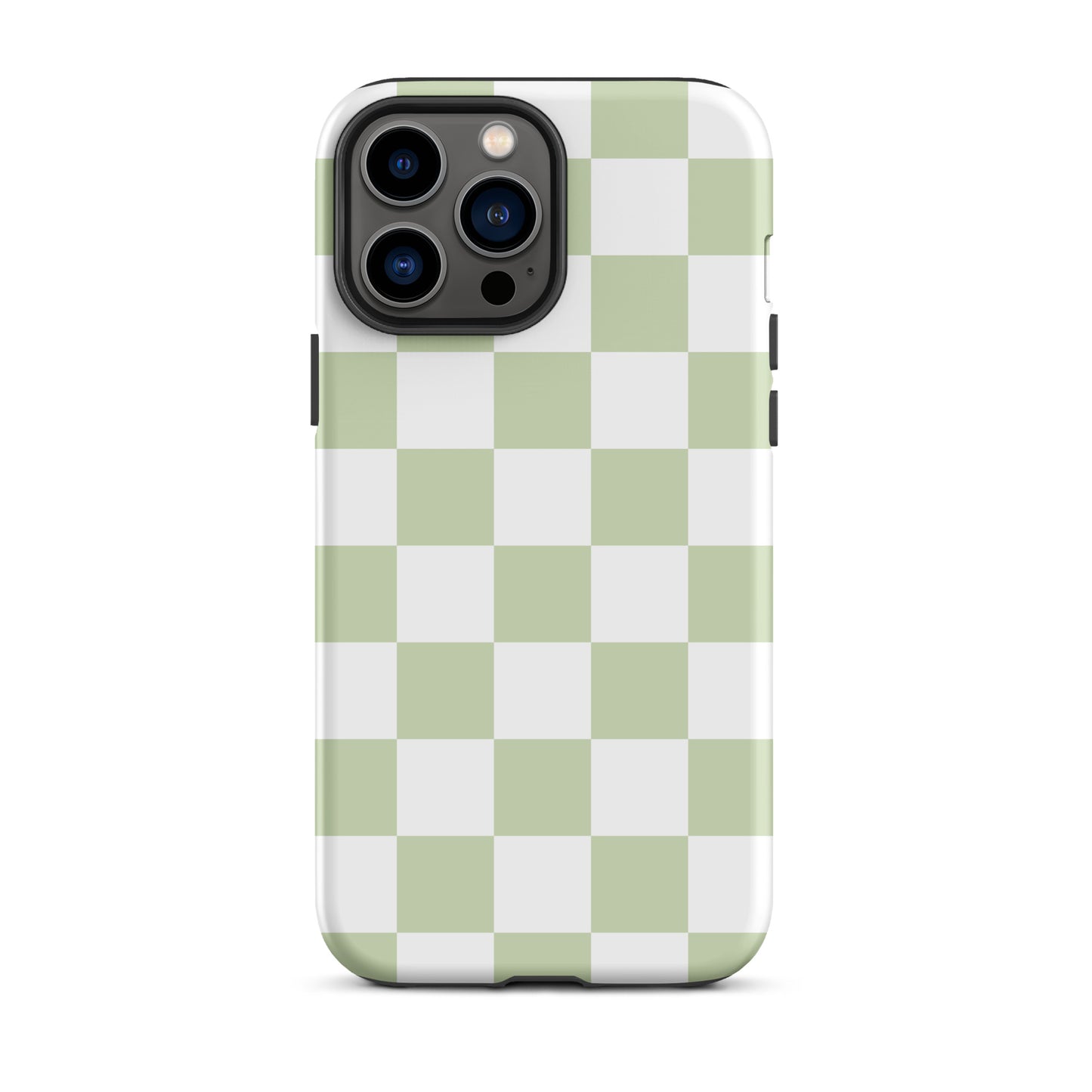 Say hello to our Pastel Green Checkered iPhone Case! This cute case features a pastel green and white checkered design.
