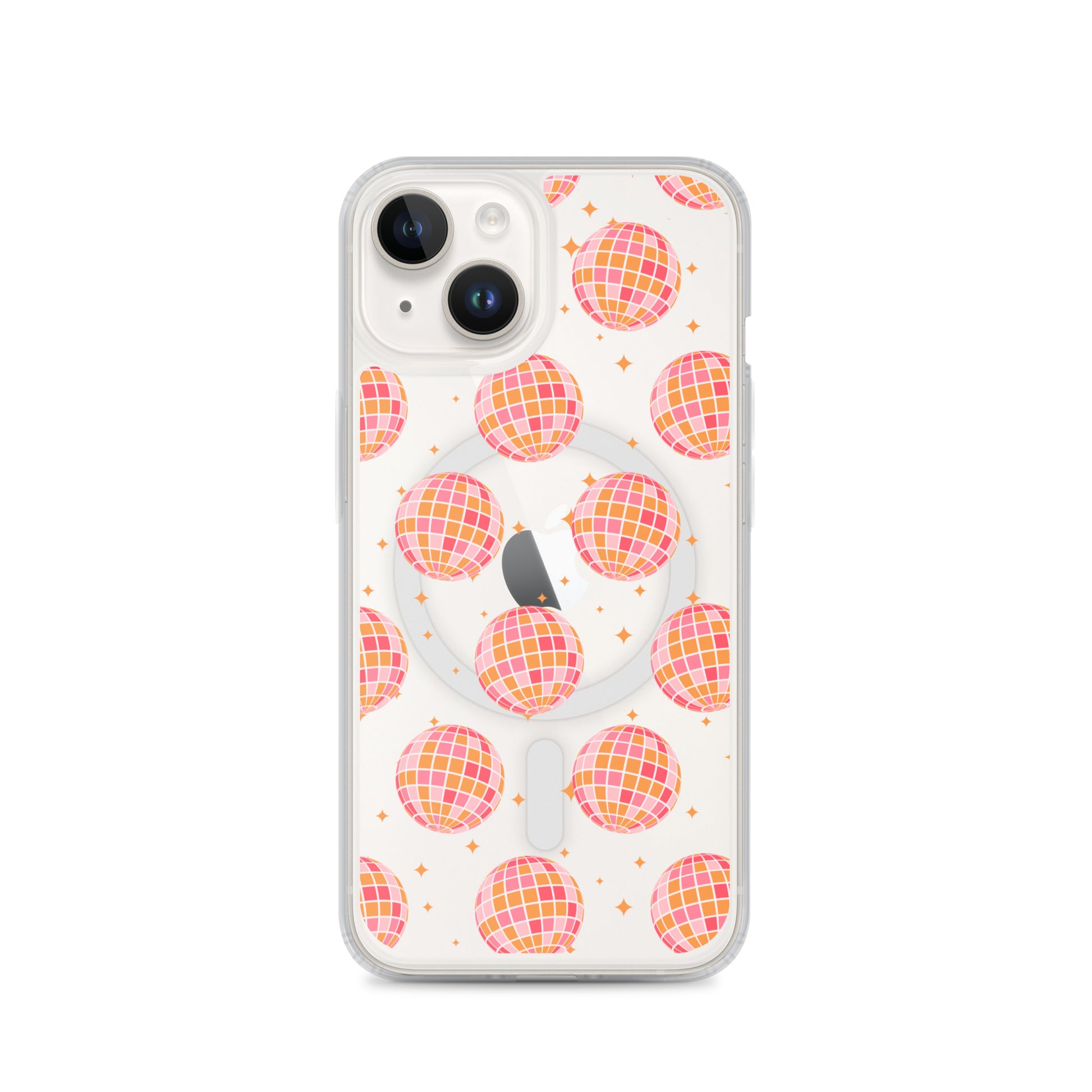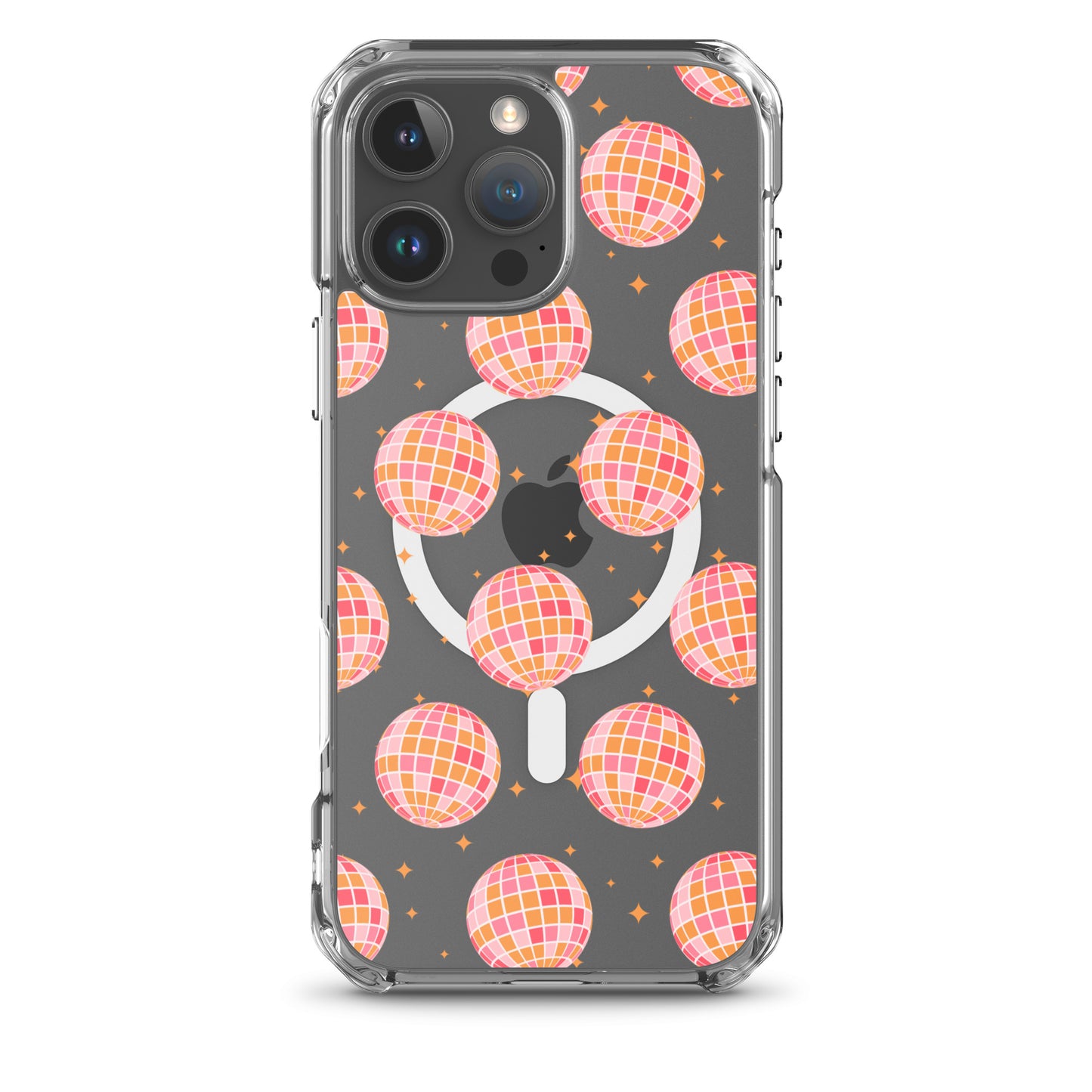 Pink & Orange Disco Balls MagSafe Clear iPhone Case