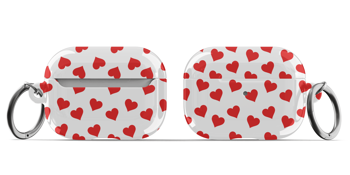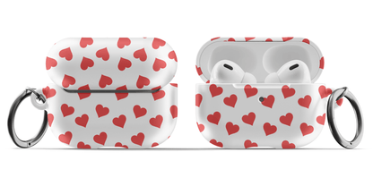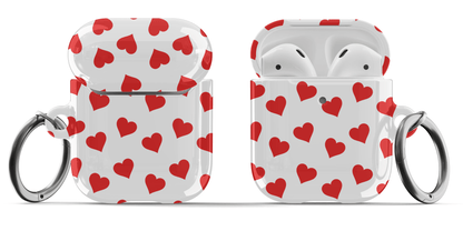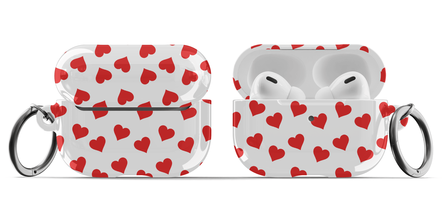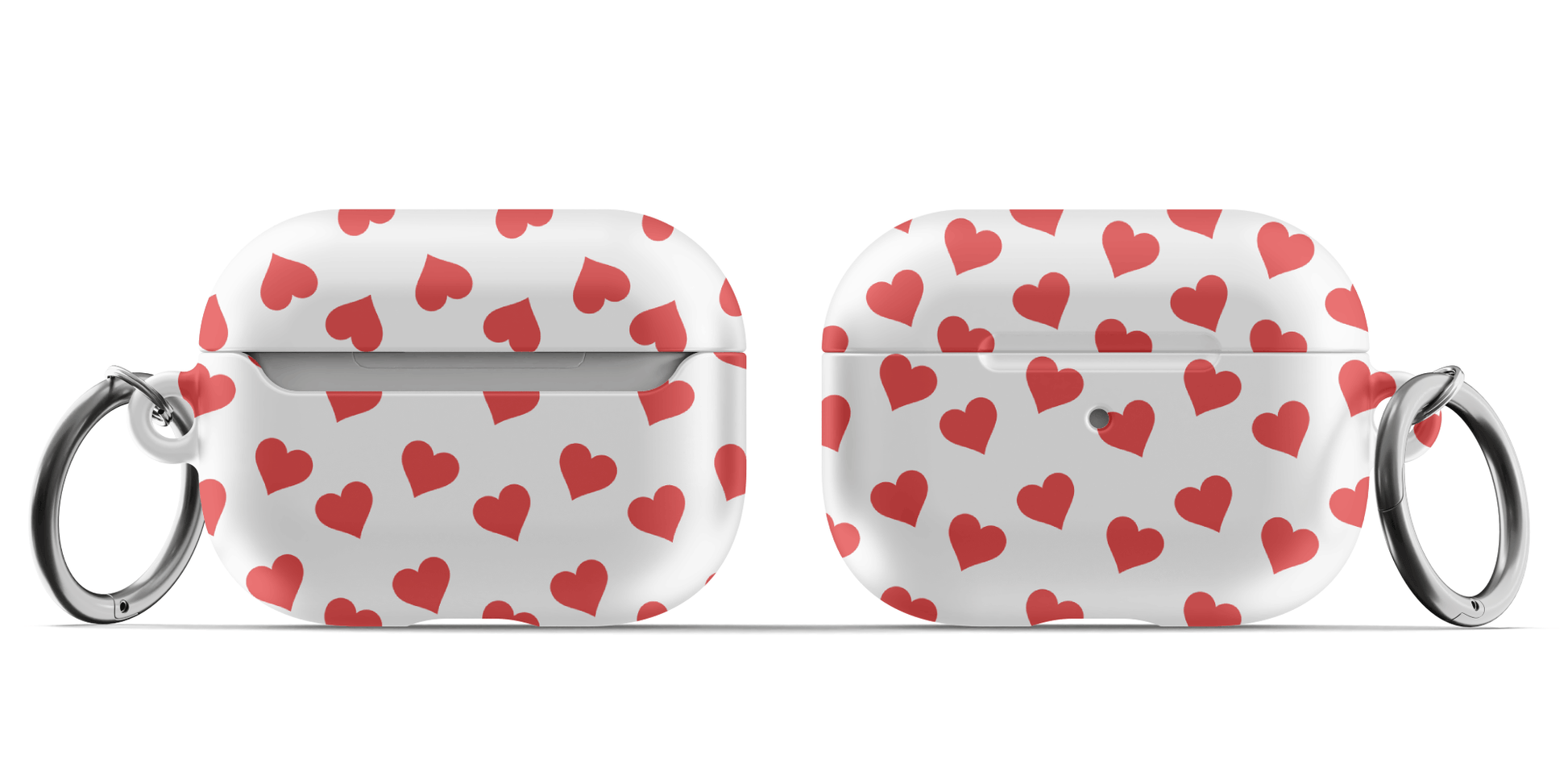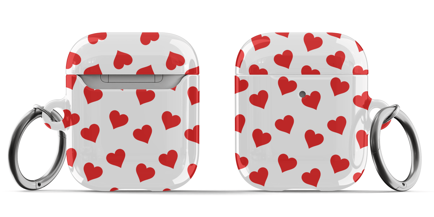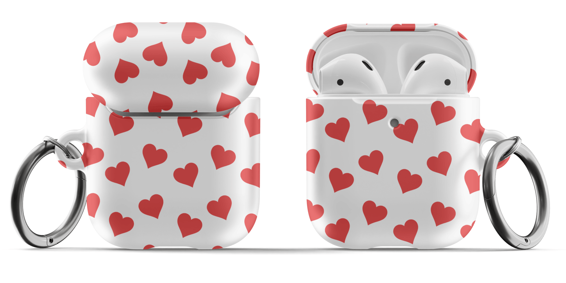 Protect your AirPods with our Red Heart Mania AirPods Case! This cute AirPods case features red hearts on a white background.