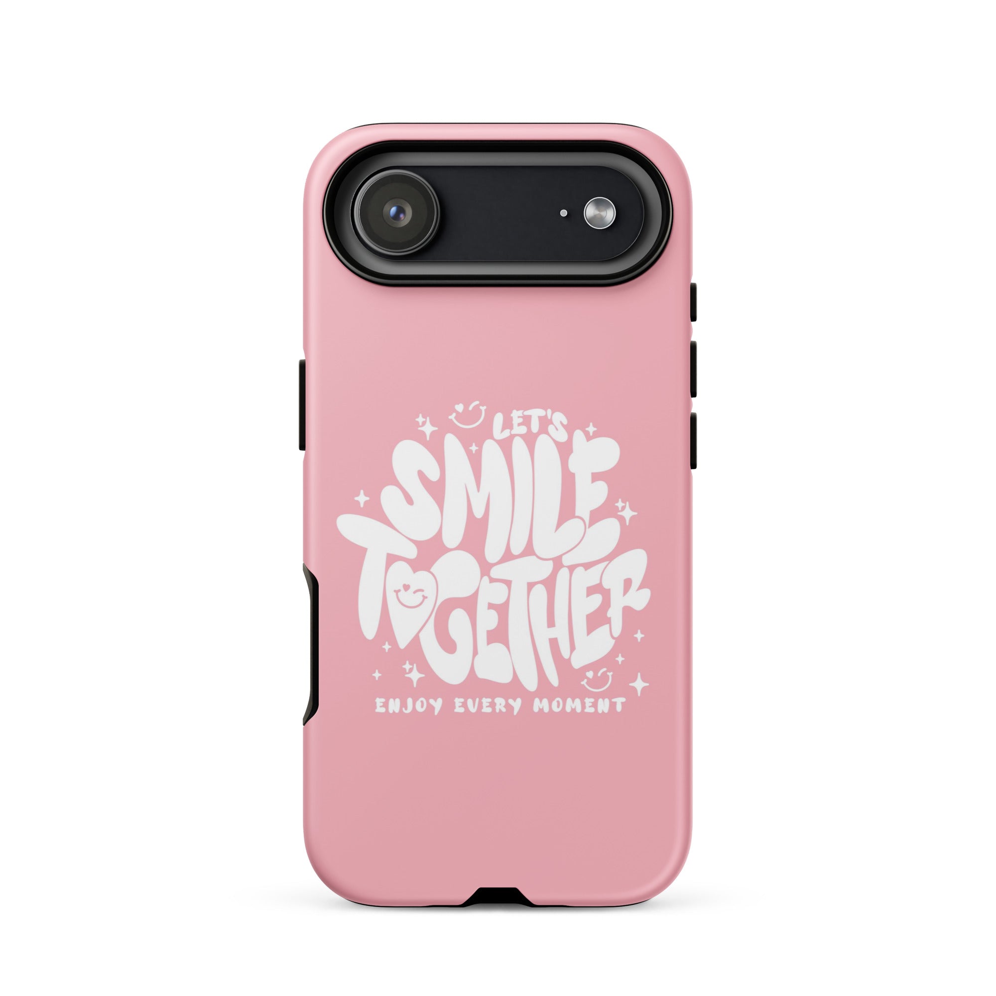 Make it a smile-off with the Smile Together iPhone Case! This cute case features a white retro positivity slogan on a light pink background.