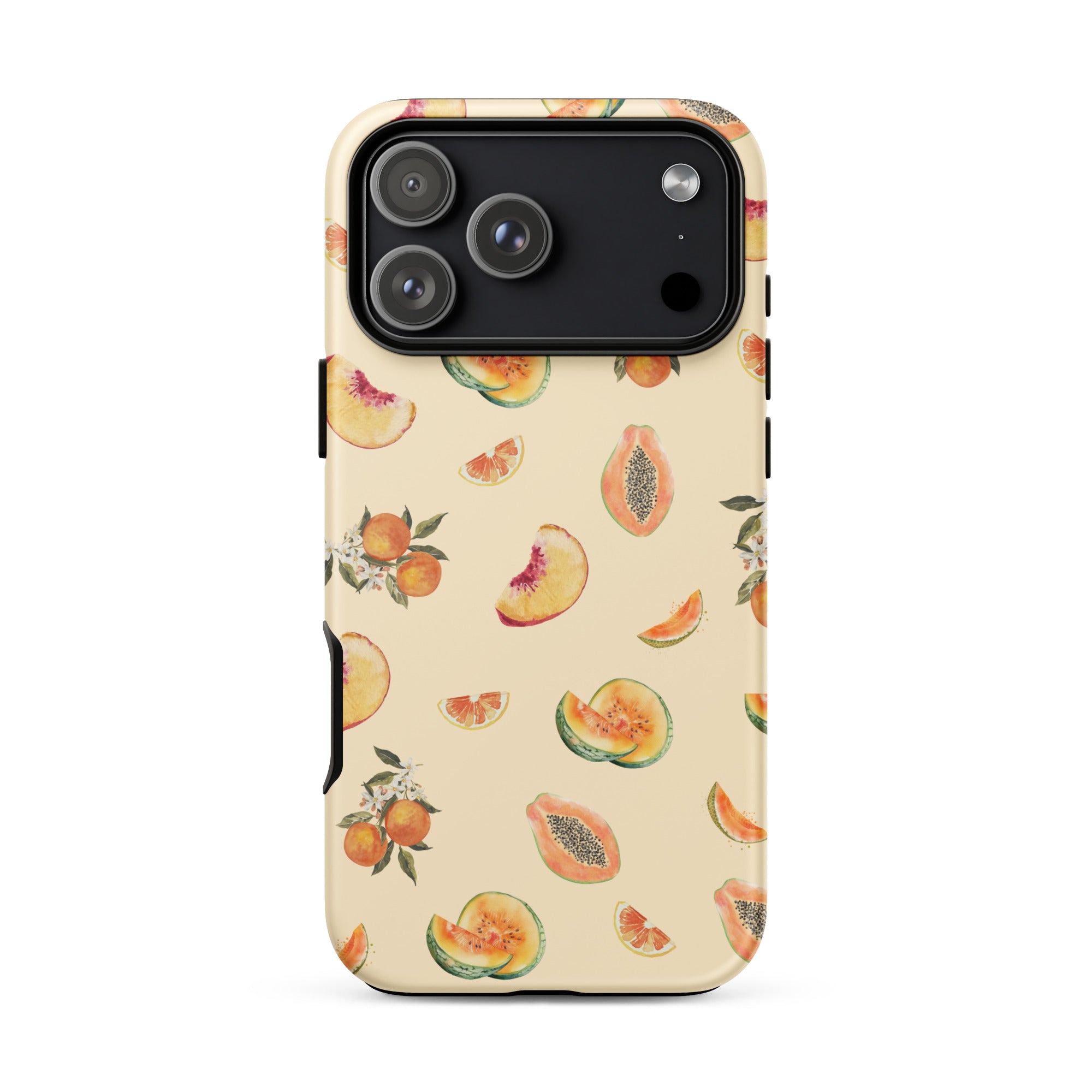 Bring a taste of the tropics to your phone with the Vintage Peaches iPhone Case! Featuring a mix of peaches, apricots, oranges, and melons on a light orange background, this case is perfect for the girl who loves to travel and embrace sunny vibes. Add a fruity, fresh touch to your style and get ready for your next adventure!