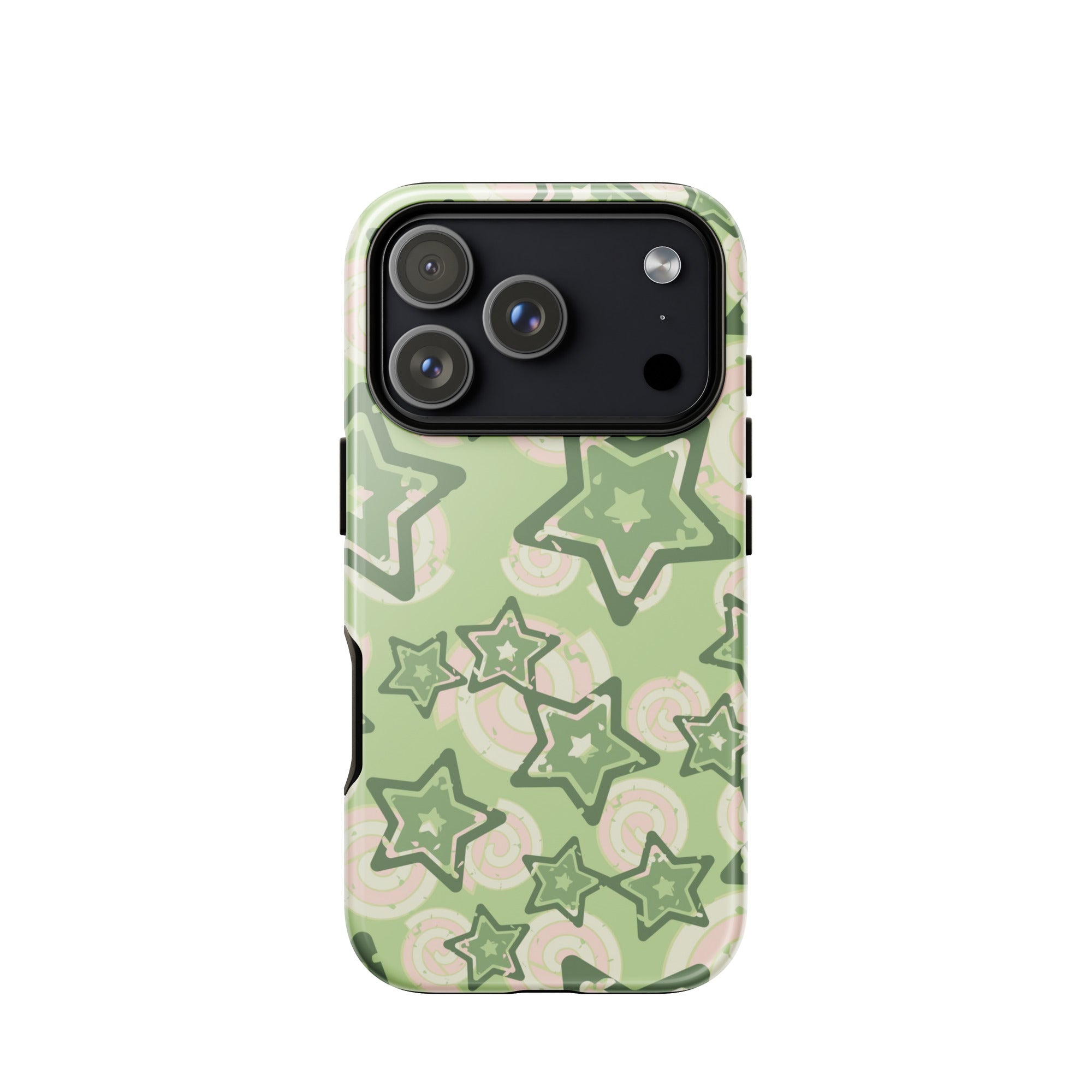 Make sure your iPhone is always star-struck with the Lime Star iPhone Case! This case features green retro stars with light pink and beige swirls on a light green background.