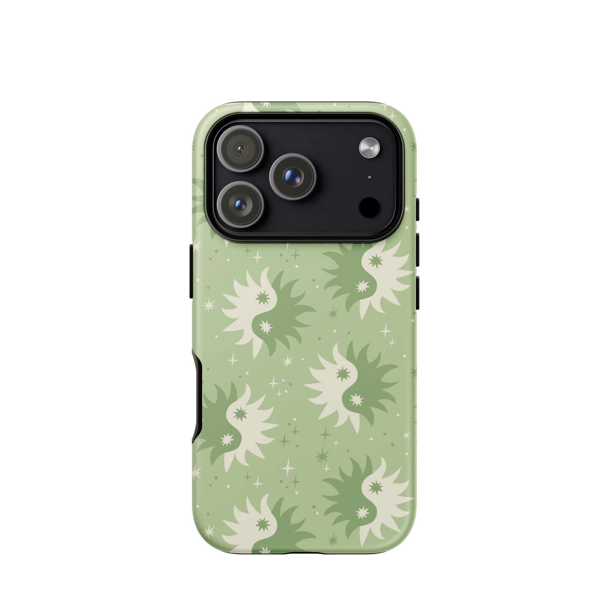 Keep your phone in harmony by getting this Yin & Yang Star Case! This cute case features green yin & yang symbols on a light green star-filled background.